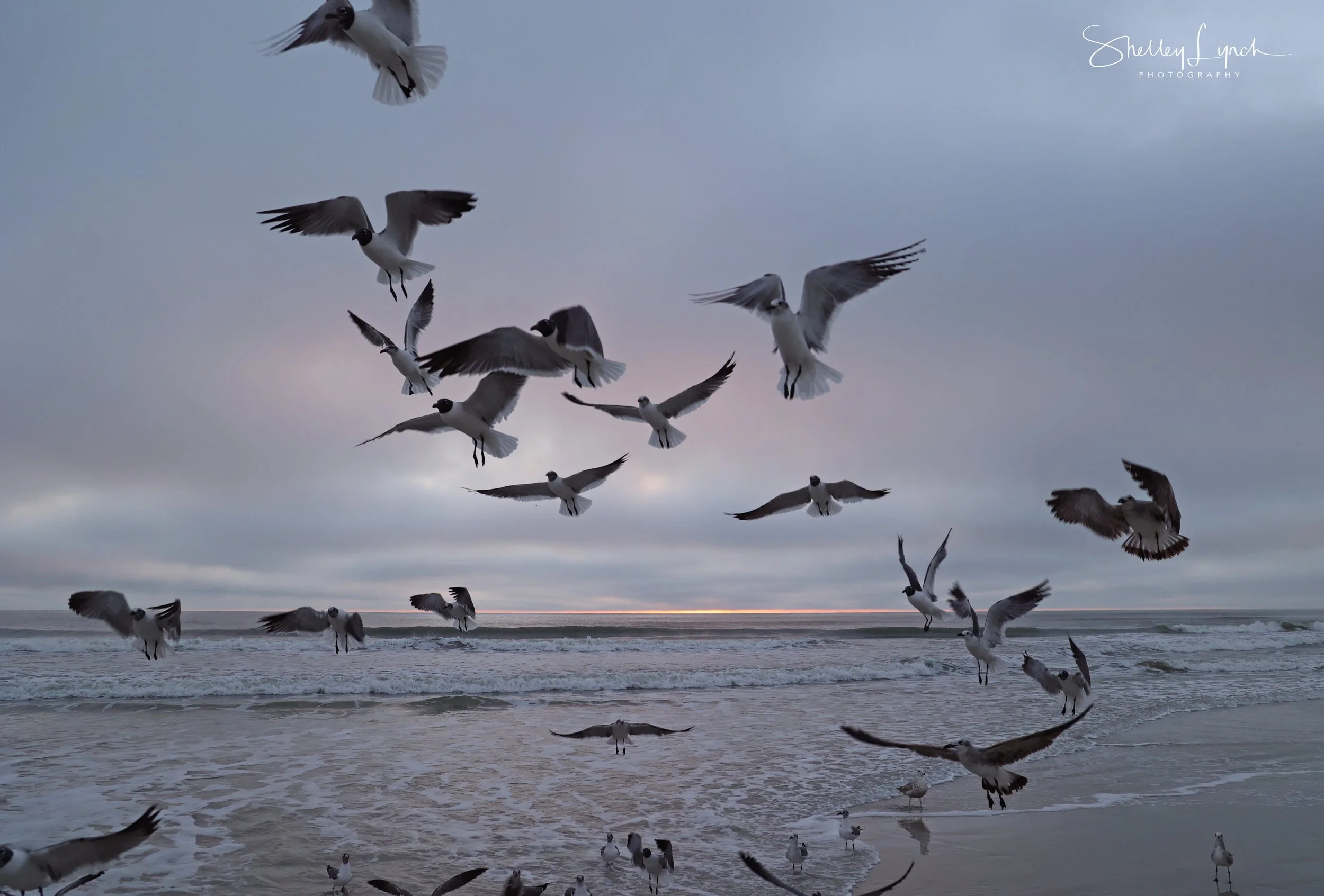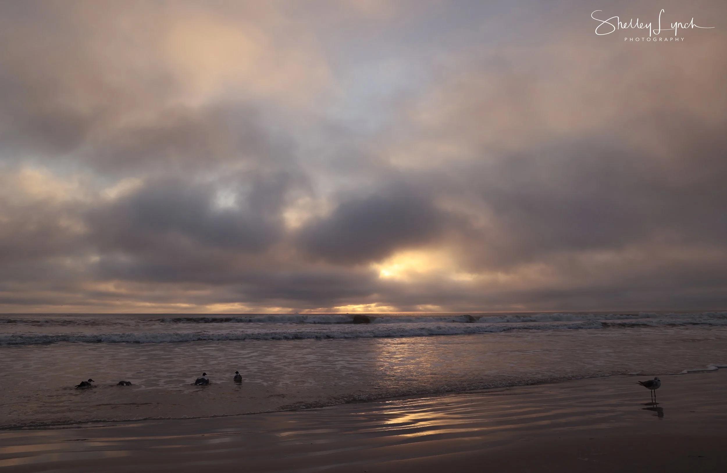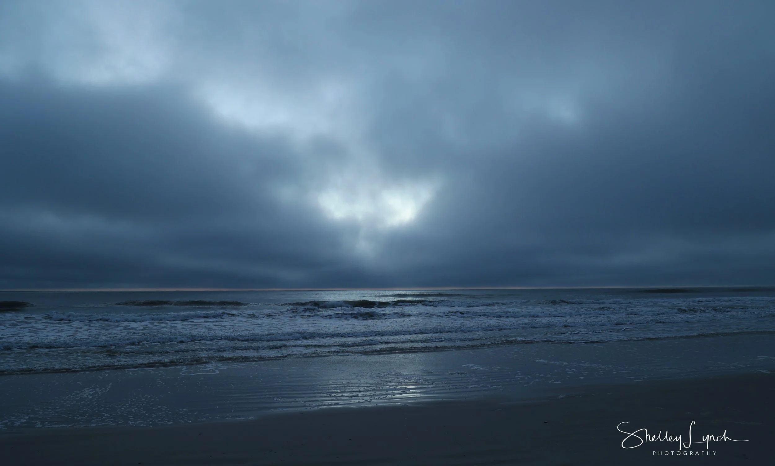 The clouds remained dark and mysterious with a sliver or pink just above the ocean and a slight silver shimmer on the ocean when a white dove, angel looking shape appeared. Once the sun started to come up more colors joined in adding to the beauty of the day.