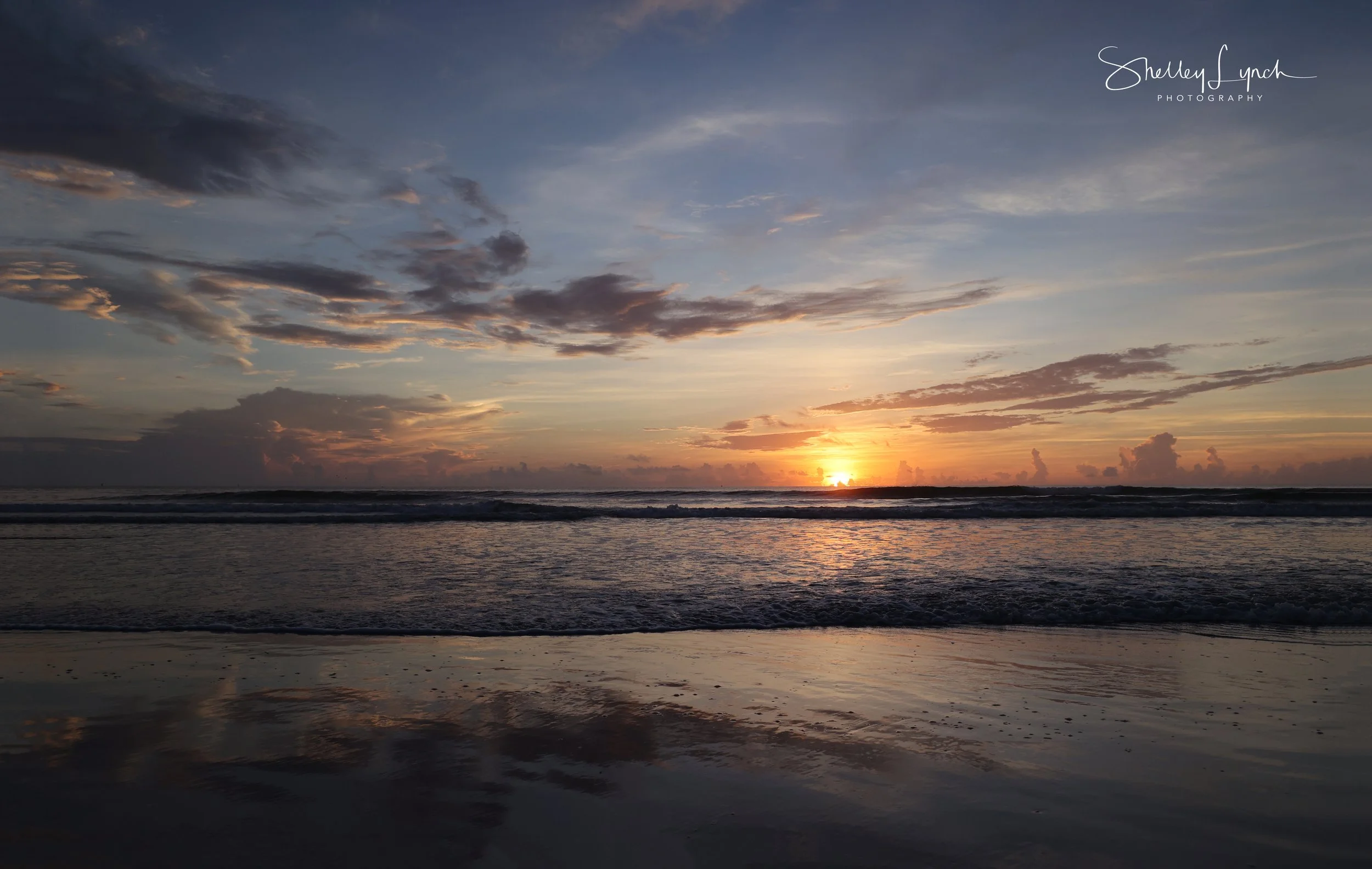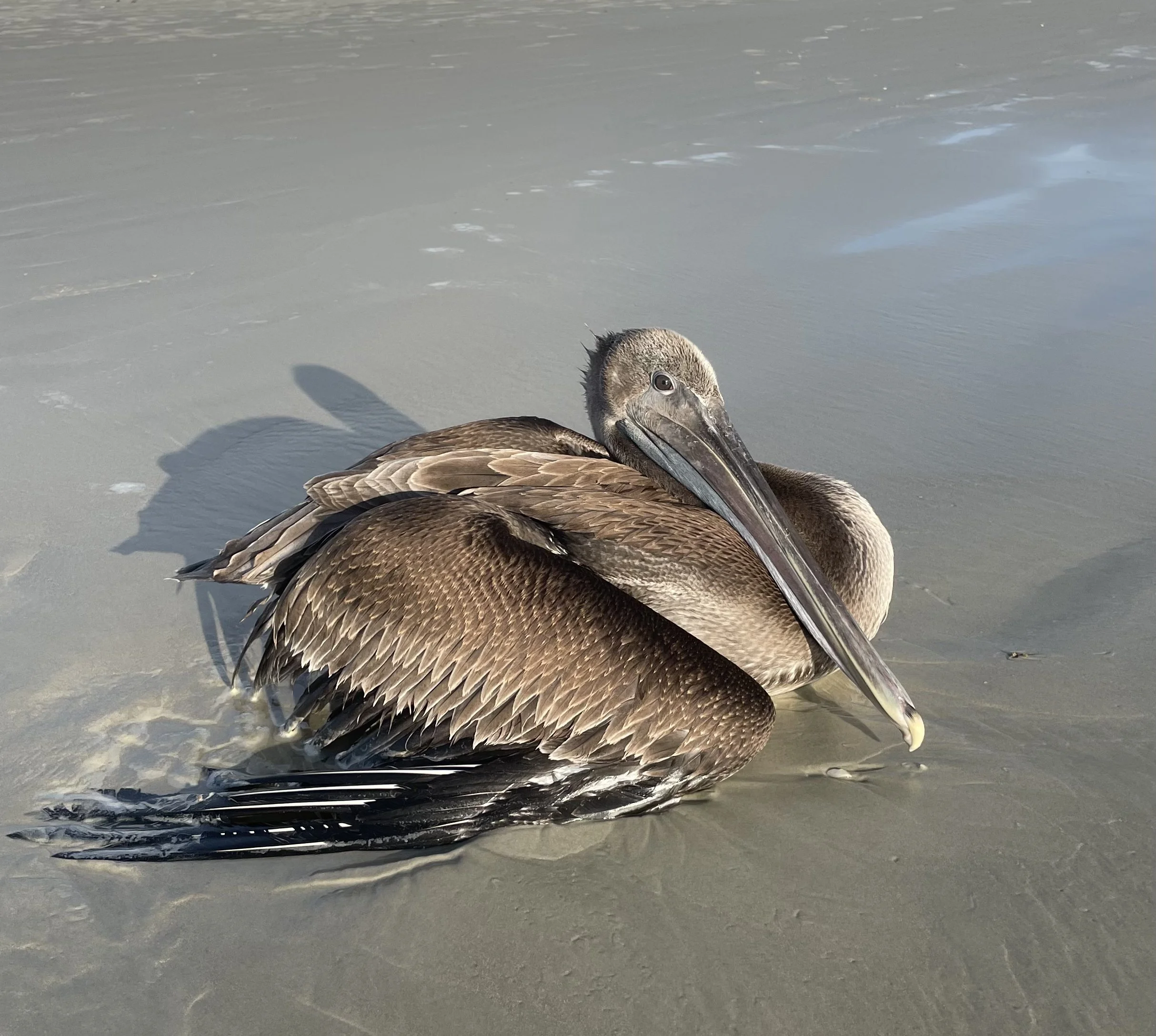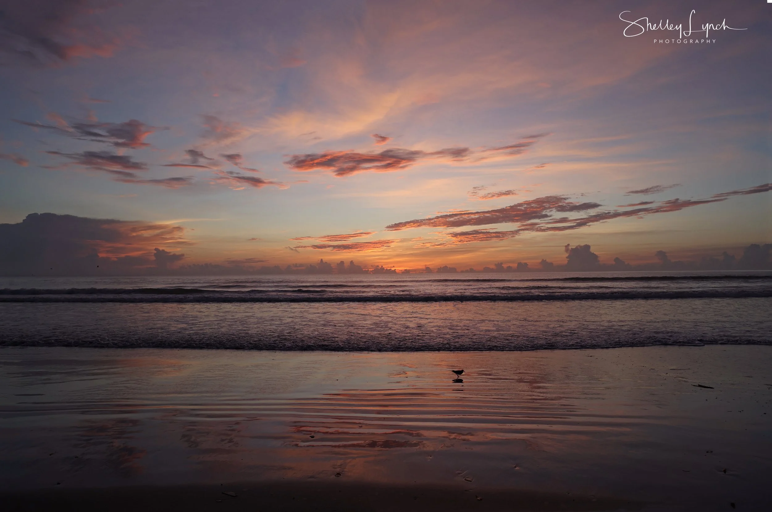 Ahhhh, A lovely and sweet morning with a light breeze and calm ocean. The morning started with a pretty in pink color show in the sky and reflecting on the wet sand. Pelican Highway traffic was heavy flying southbound.
