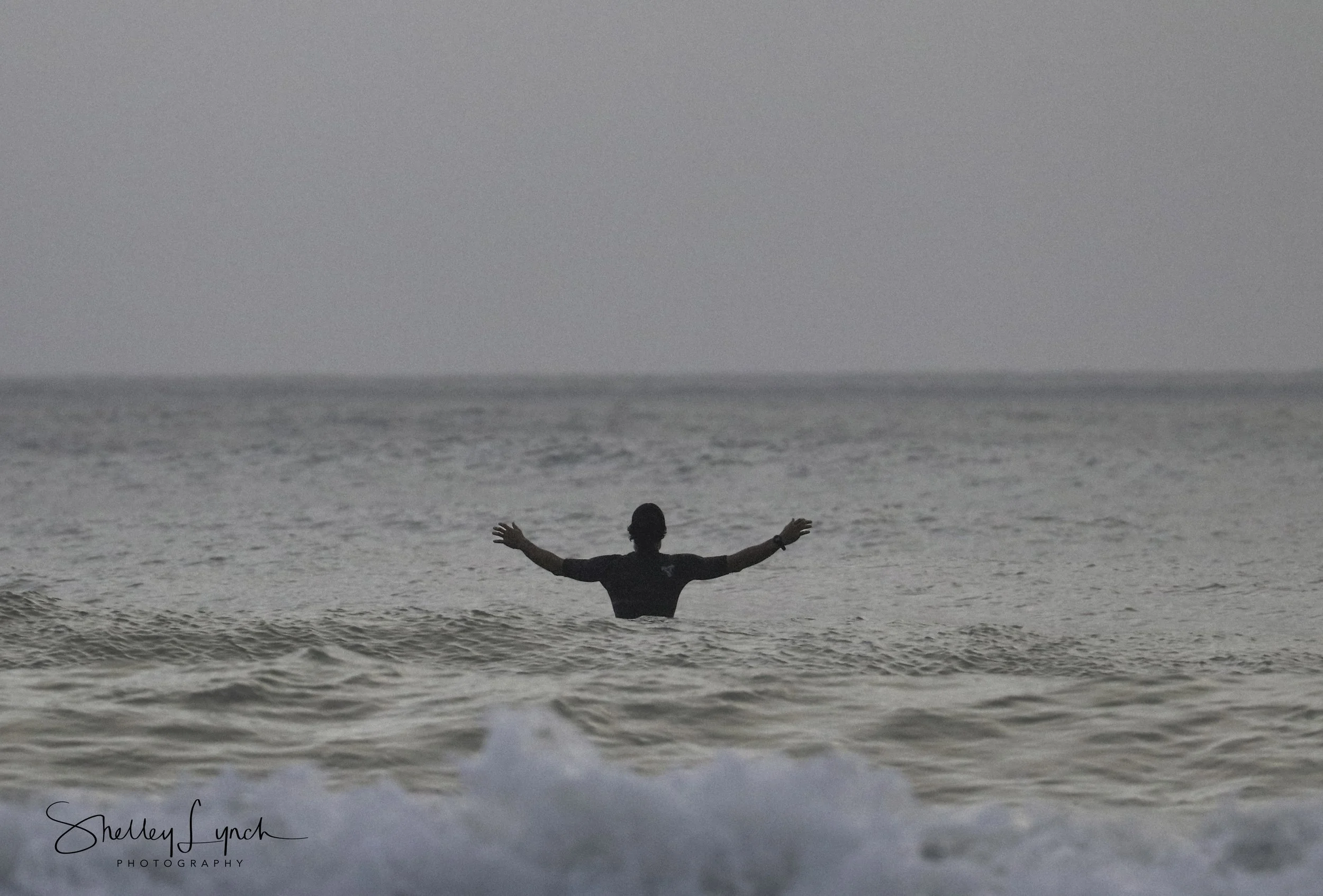 The morning started with a dark and sultry fifty shades of grey. The sun stayed hidden giving us a winter looking kind of sunrise. The waves were huge beckoning the surfers to come play….and they did. They were coming from every direction until the water was speckled with surfers.