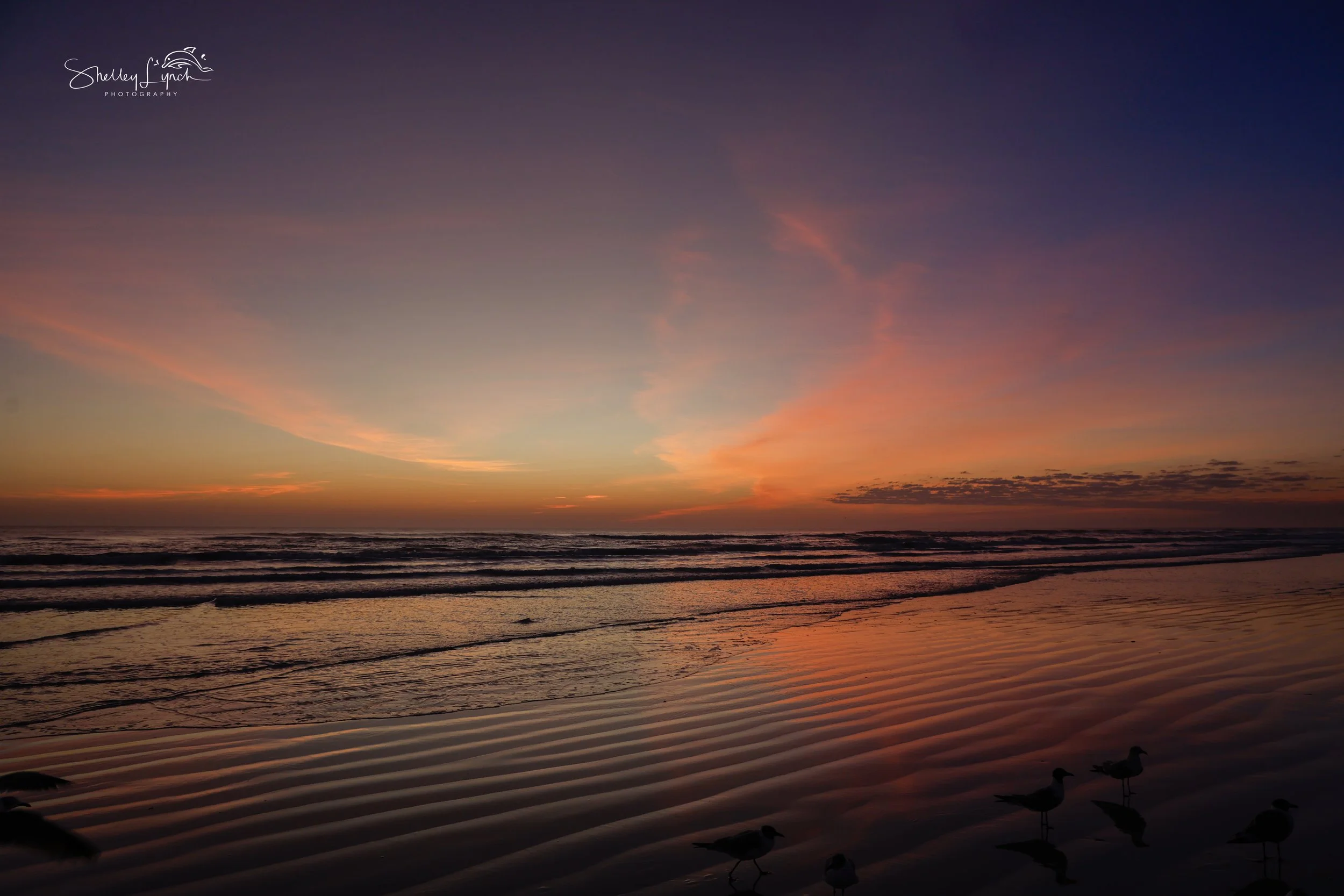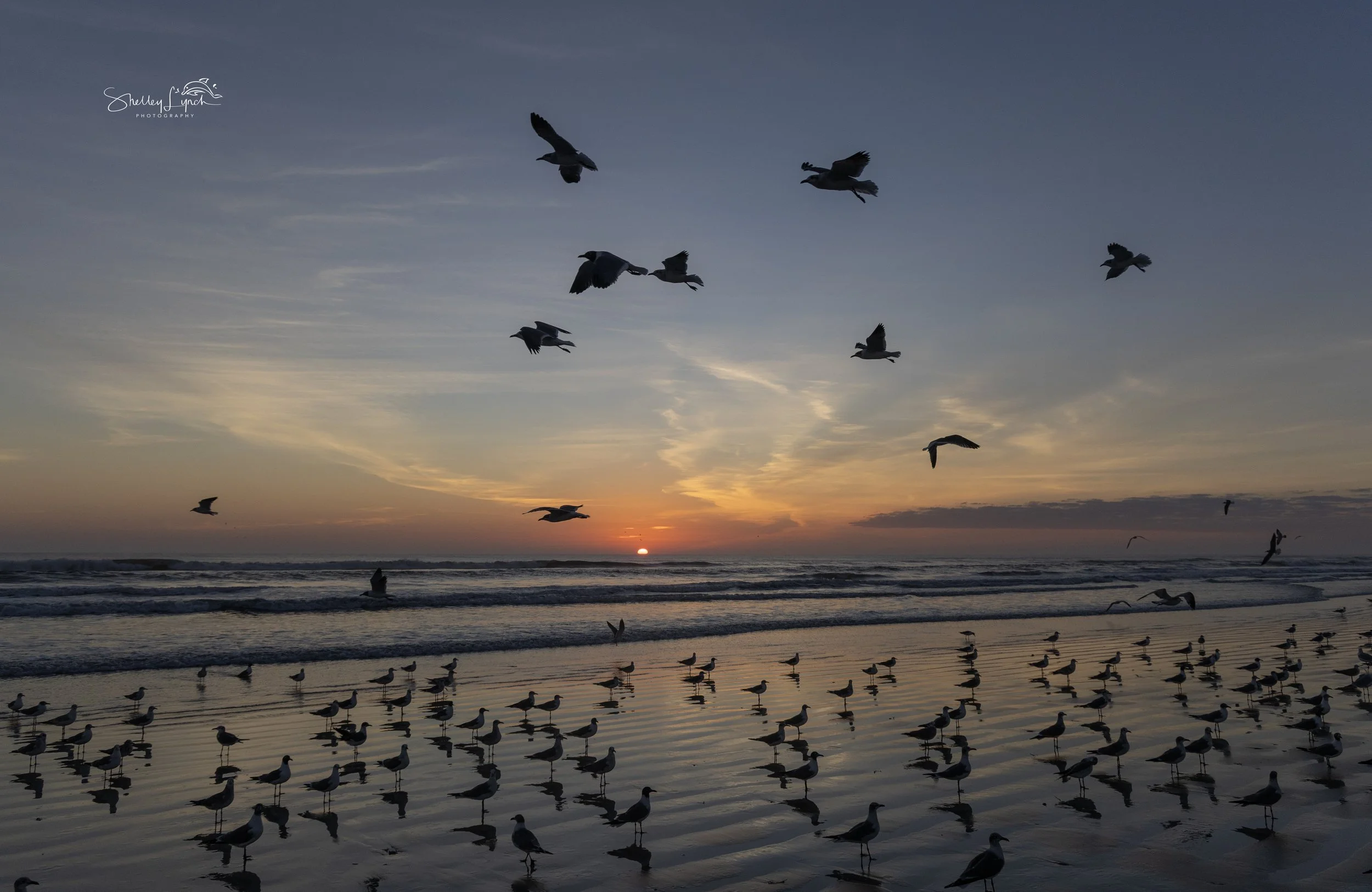 The flock was already at the edge of the ocean, ready for daily bath time, while Pelican Highway rolled on down the shoreline.