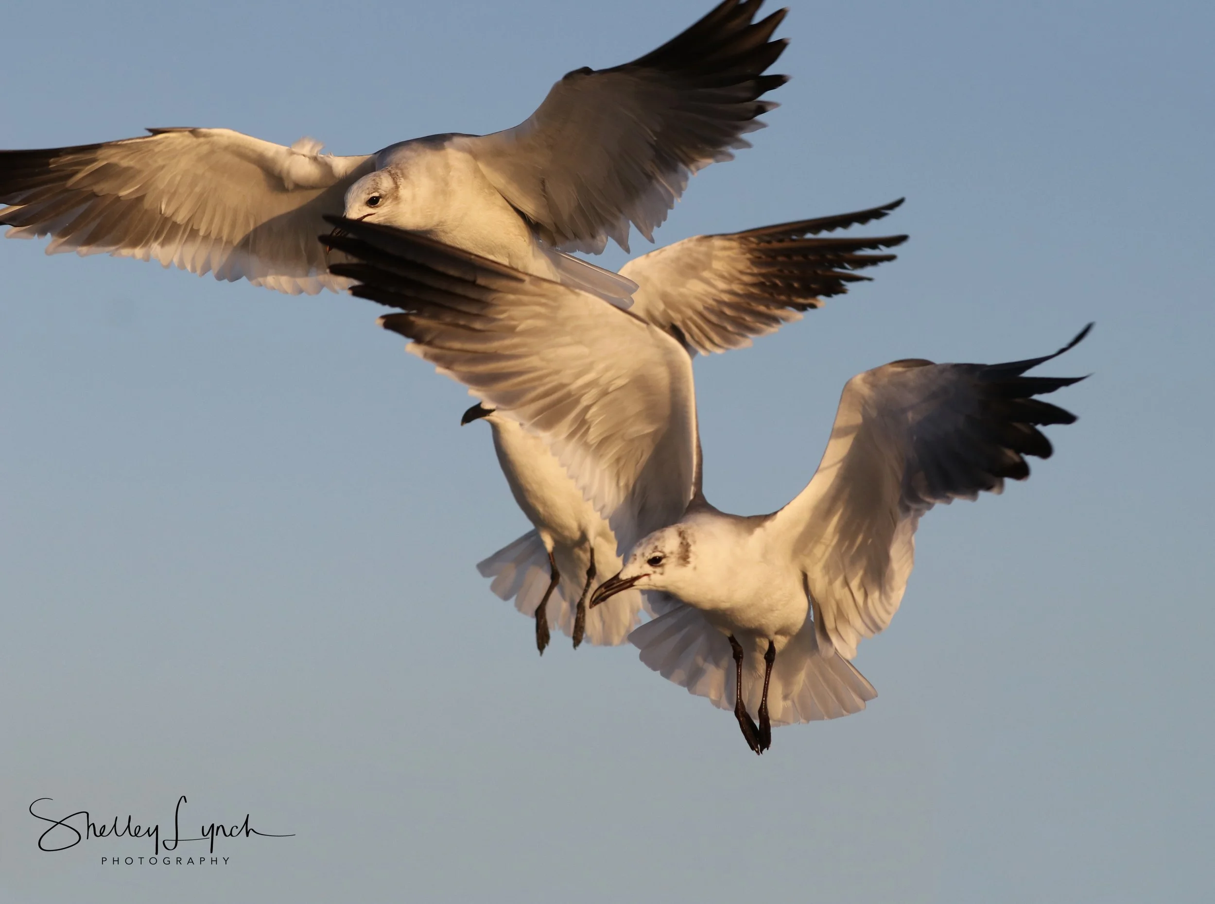 The flock of gulls was late this morning but when they arrived they were full of spunk. They flew in front the moon to bring us the message today.