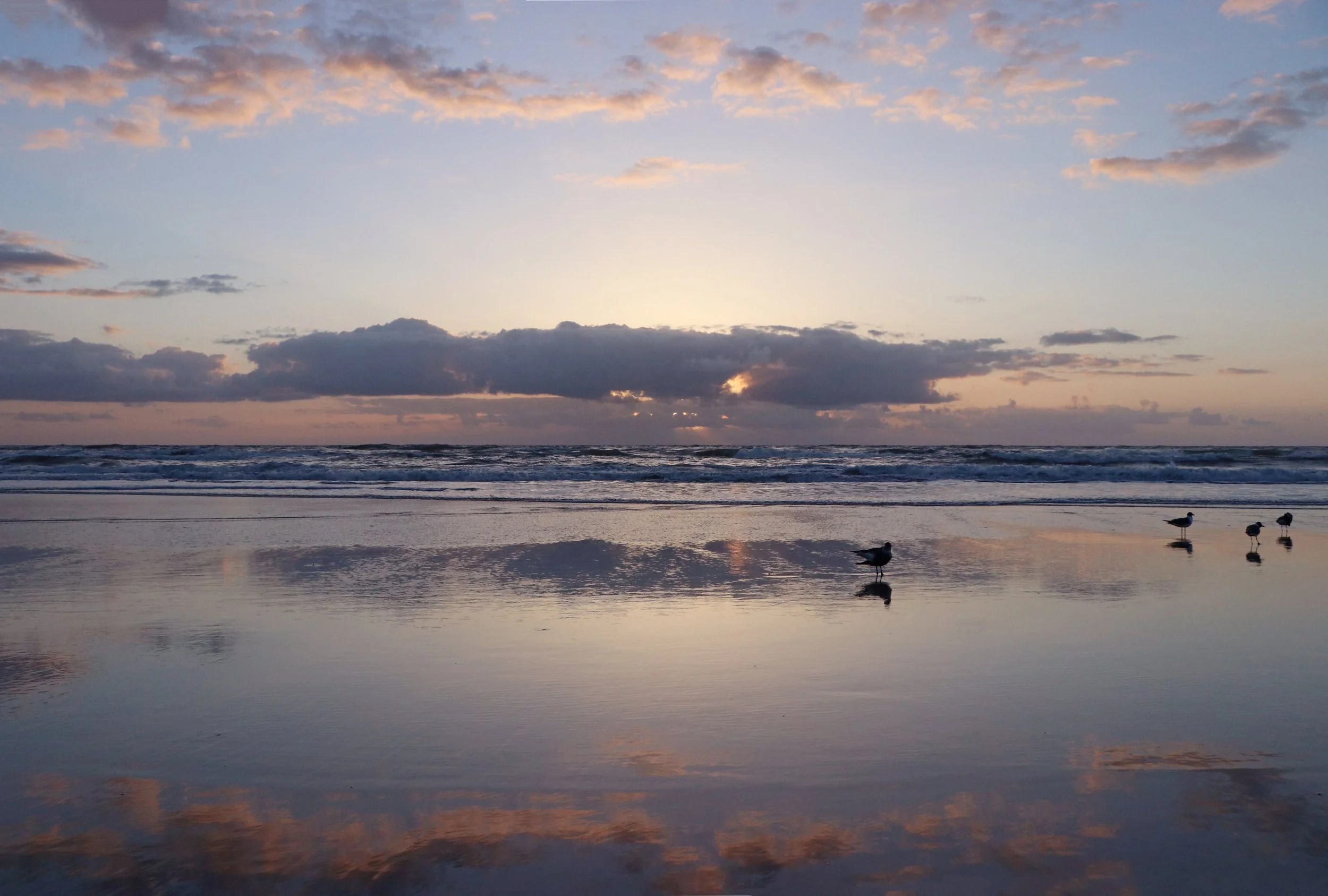 A small flock of seagulls flew in and slammed on the brakes to enjoy the sunrise. They said, “We bring the message of hanging out in place to get a new perspective. The view will help you know how to take action when the time feels right.