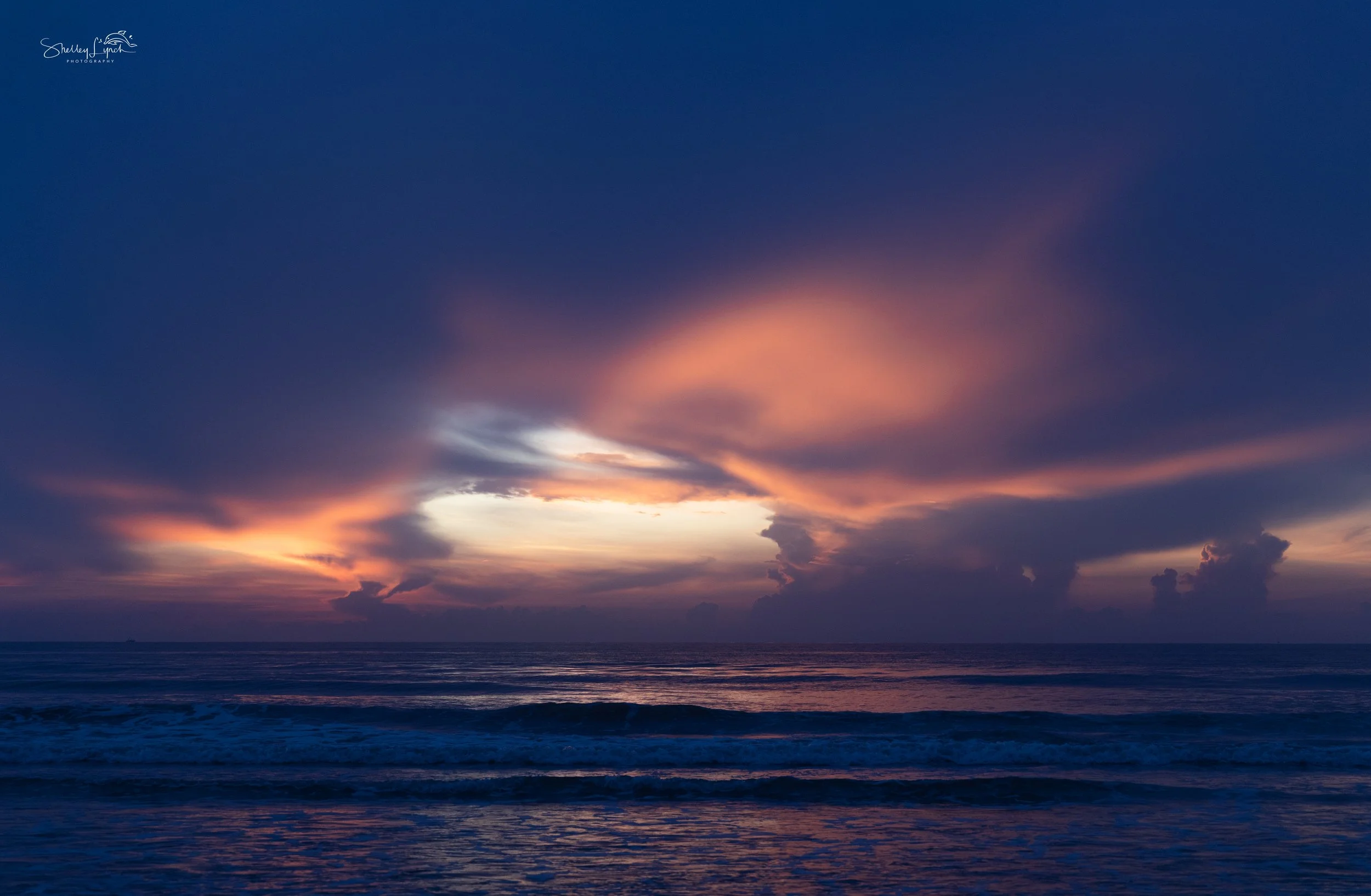 Mother Nature transported us to another realm this morning with an otherworldly sunrise courtesy of a cloud portal. When I arrived at the beach, the flock was already gathered, framed by a sky painted in soft pink and lavender hues.