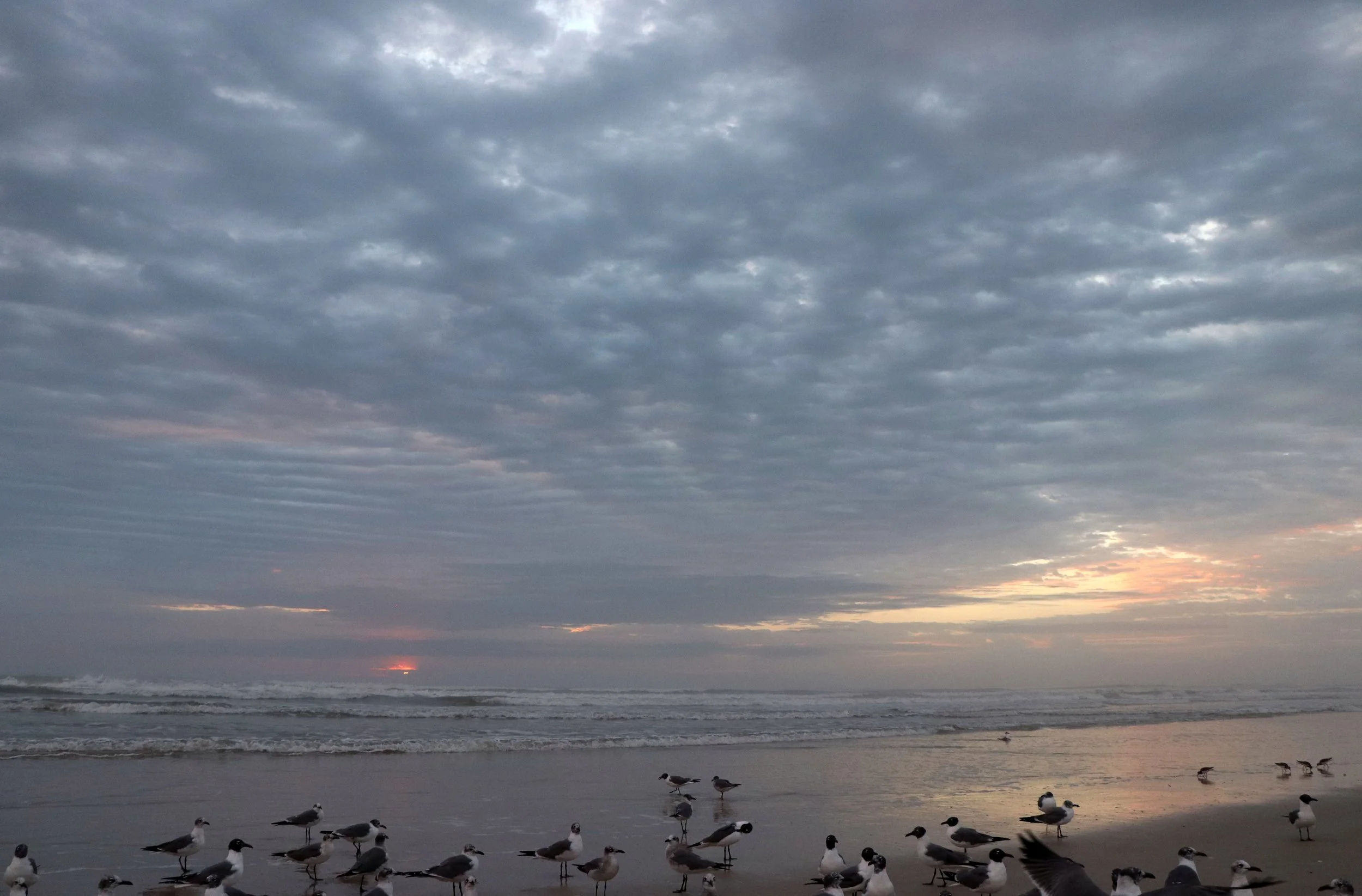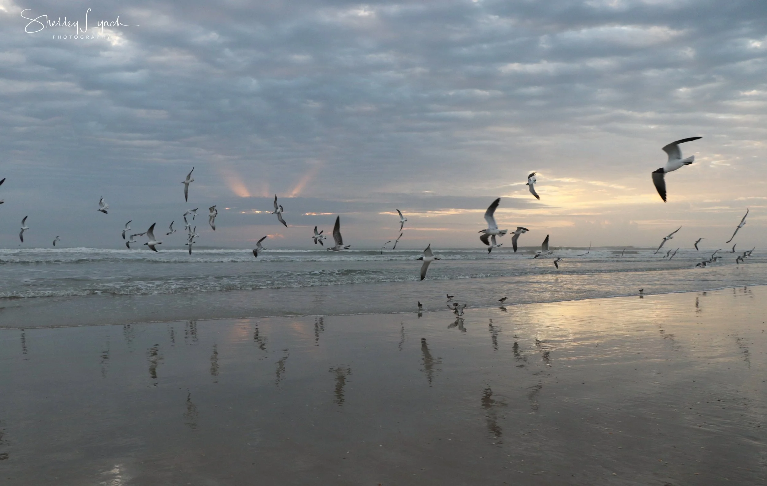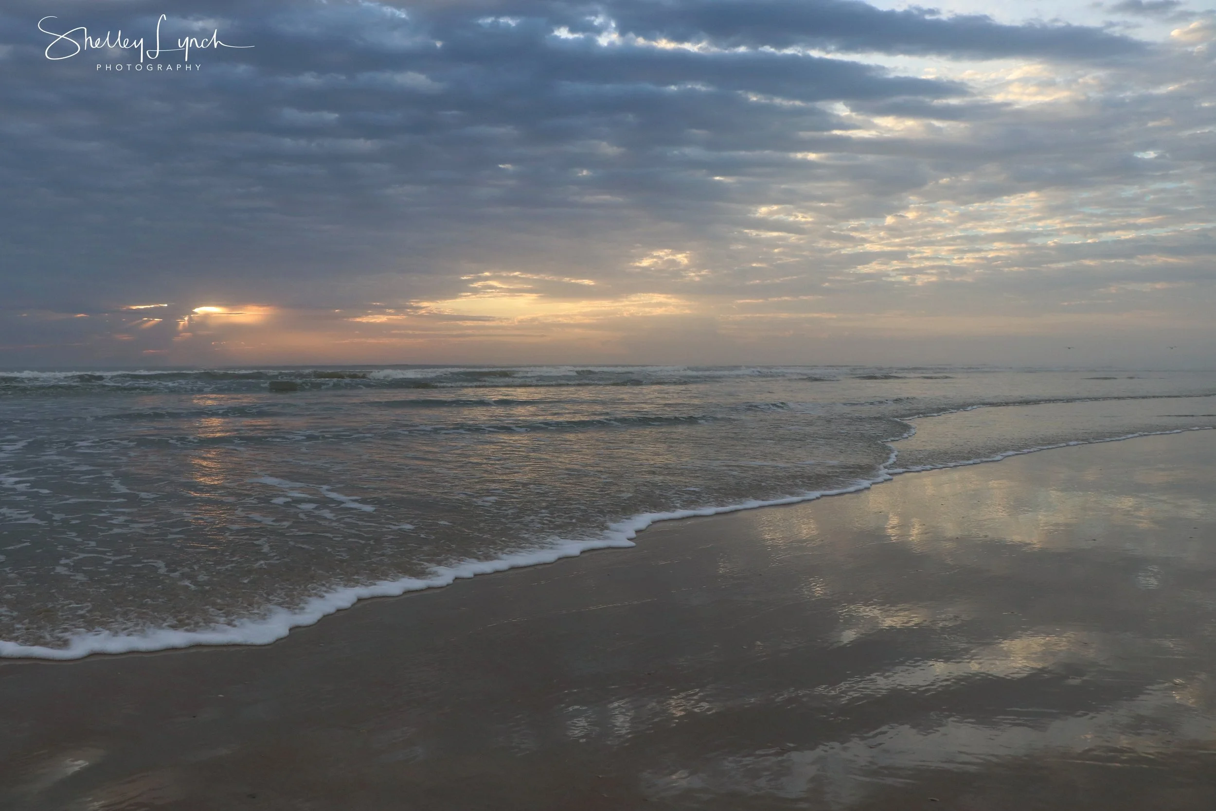 WOW! It was a stunner of a soft and sweet sunrise with pastel refections. Fluffy clouds feeling like a cozy blanket soaked up the wonderful colors. When the sun came up a funnel of golden light poured through the clouds reminding us to allow love and light to fill us up.