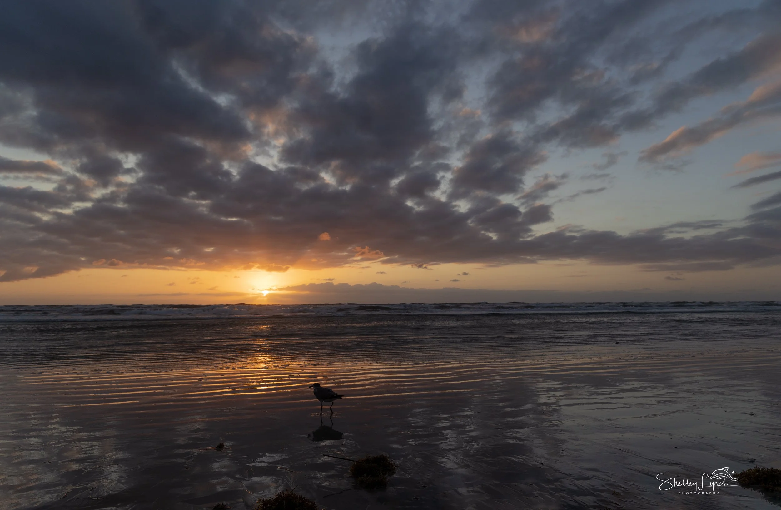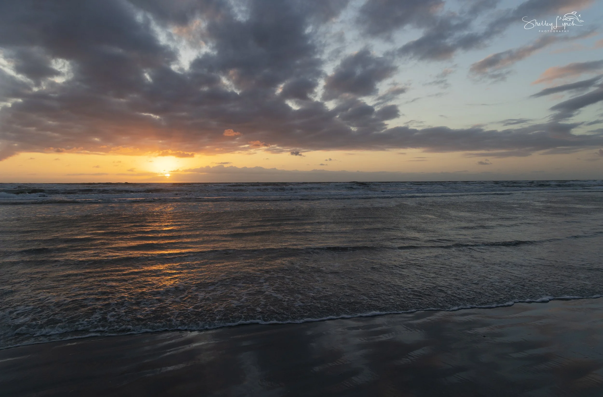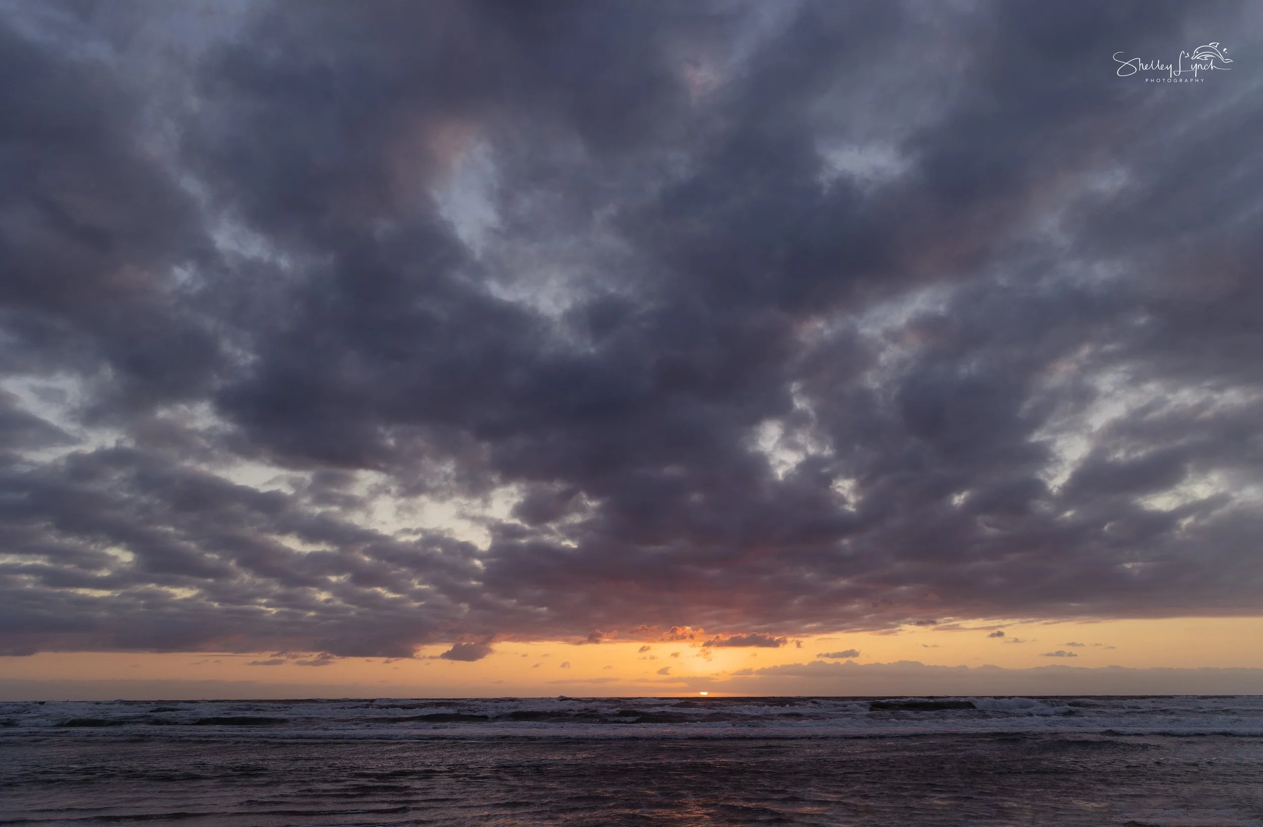 The wind was whipping as I walked to the beach. Huge, dramatic clouds filled the sky—starting out a dark grey, then shifting to pink, and finally glowing gold as the sun rose.