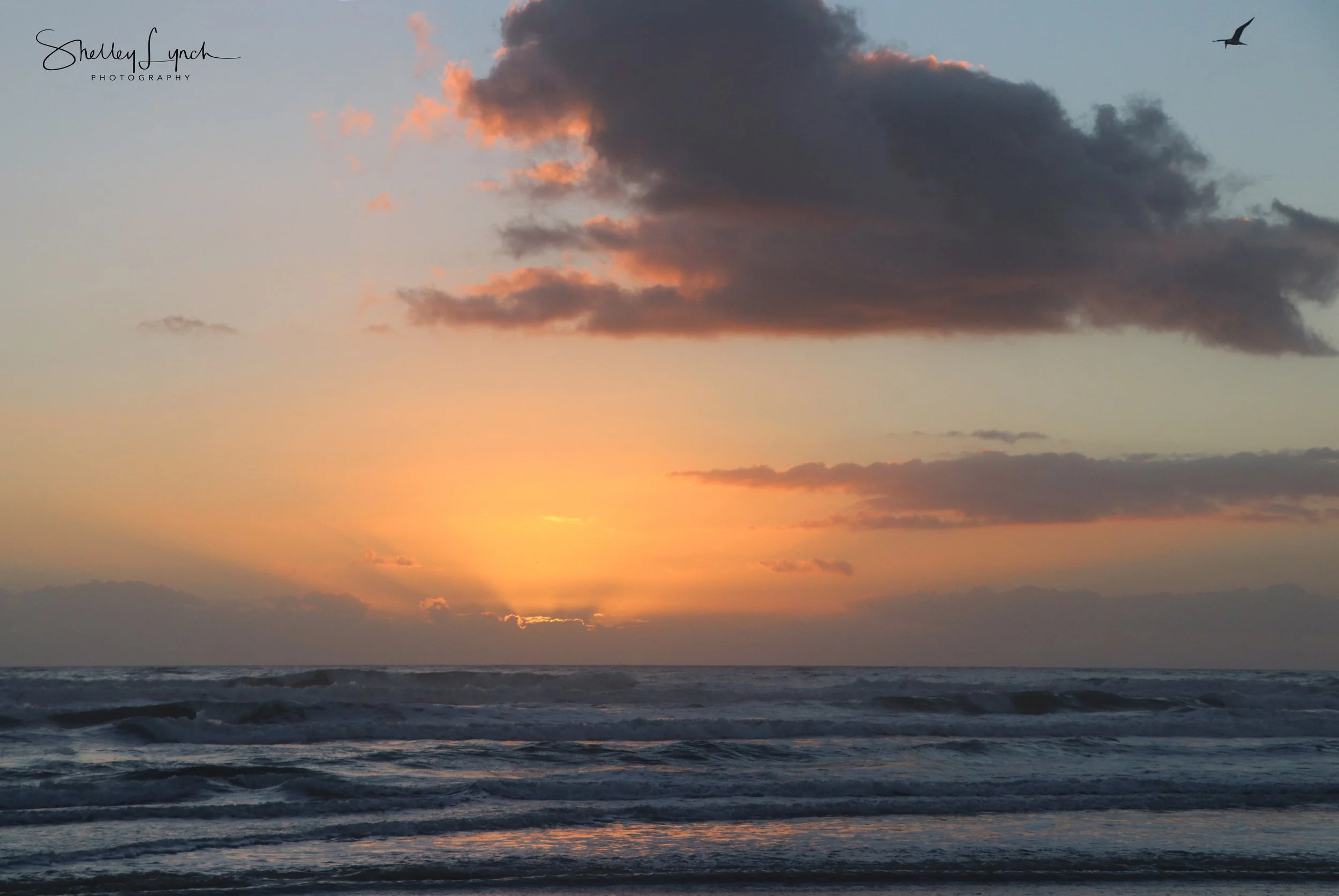 Penny the pelican was a a little further down the beach taking in the sunrise. She said, “A moment of quiet is a great way to reboot my nervous system. Time away from Pelican Highway gives me time to let go of stress and just be, enjoying the beauty all around.”