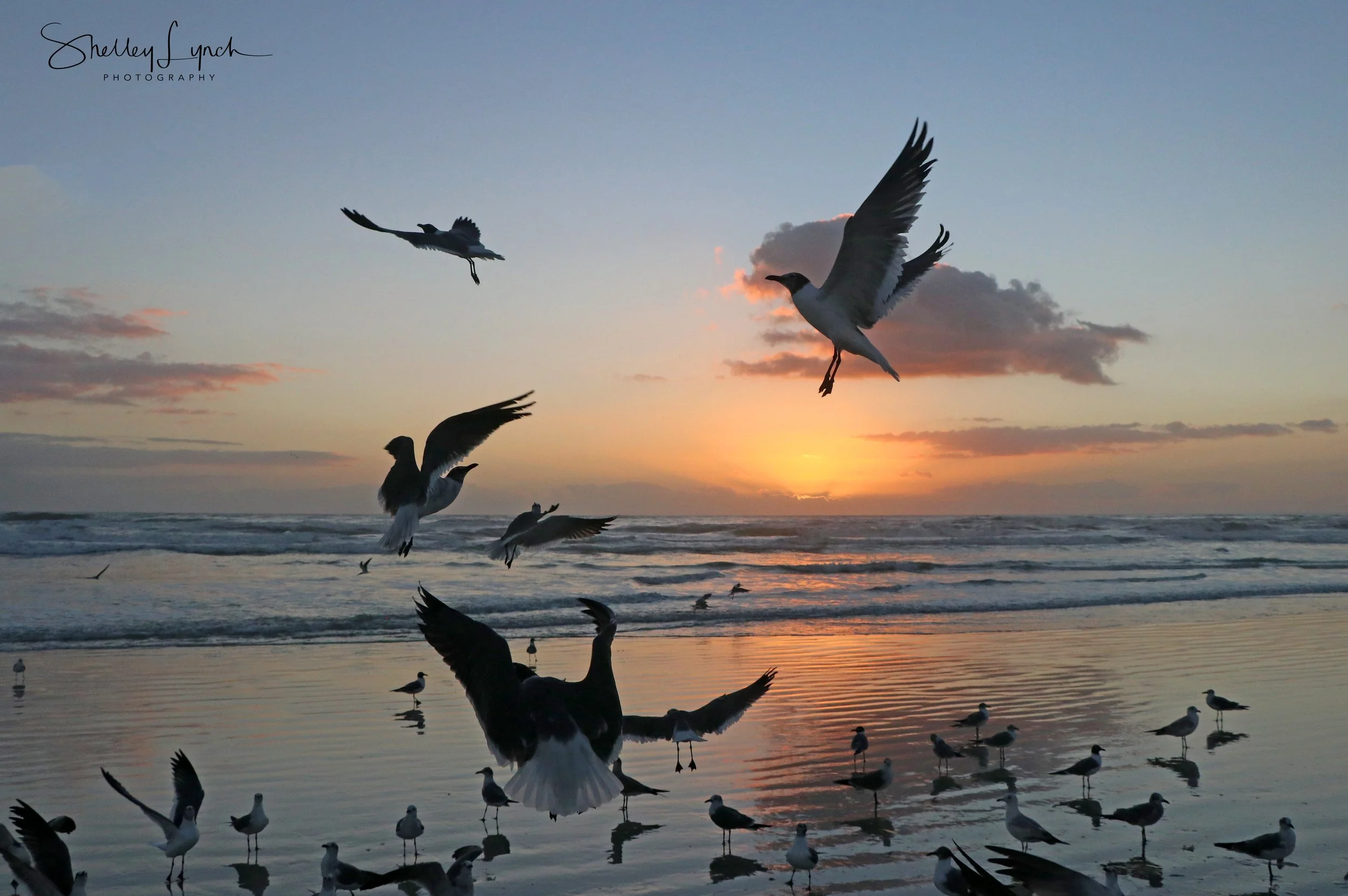 One Legger and a small flock of seagulls flew in before the sunrise with a few ruddy turnstones and sandpipers. One Legger stopped mid air to say hello and sow off her strength.