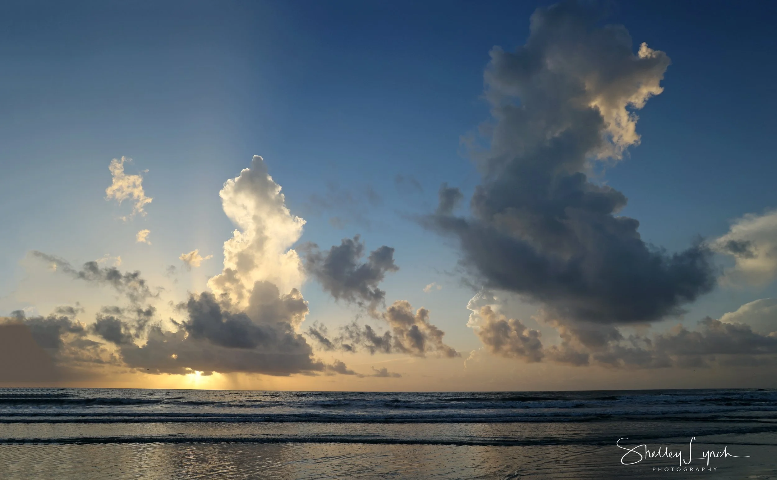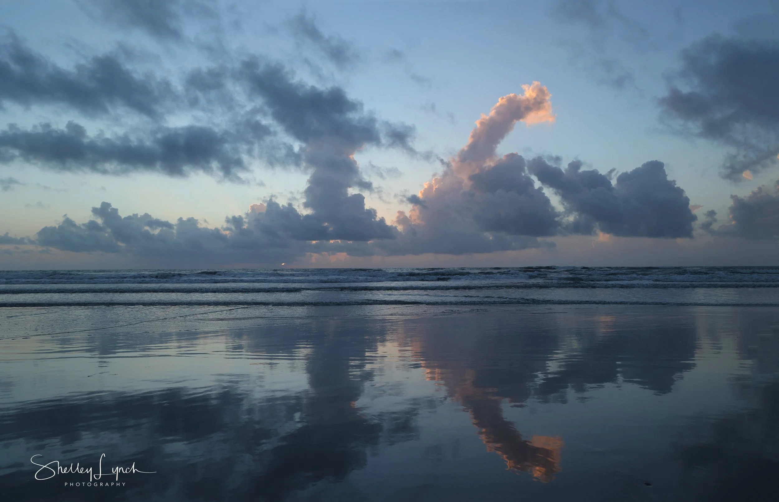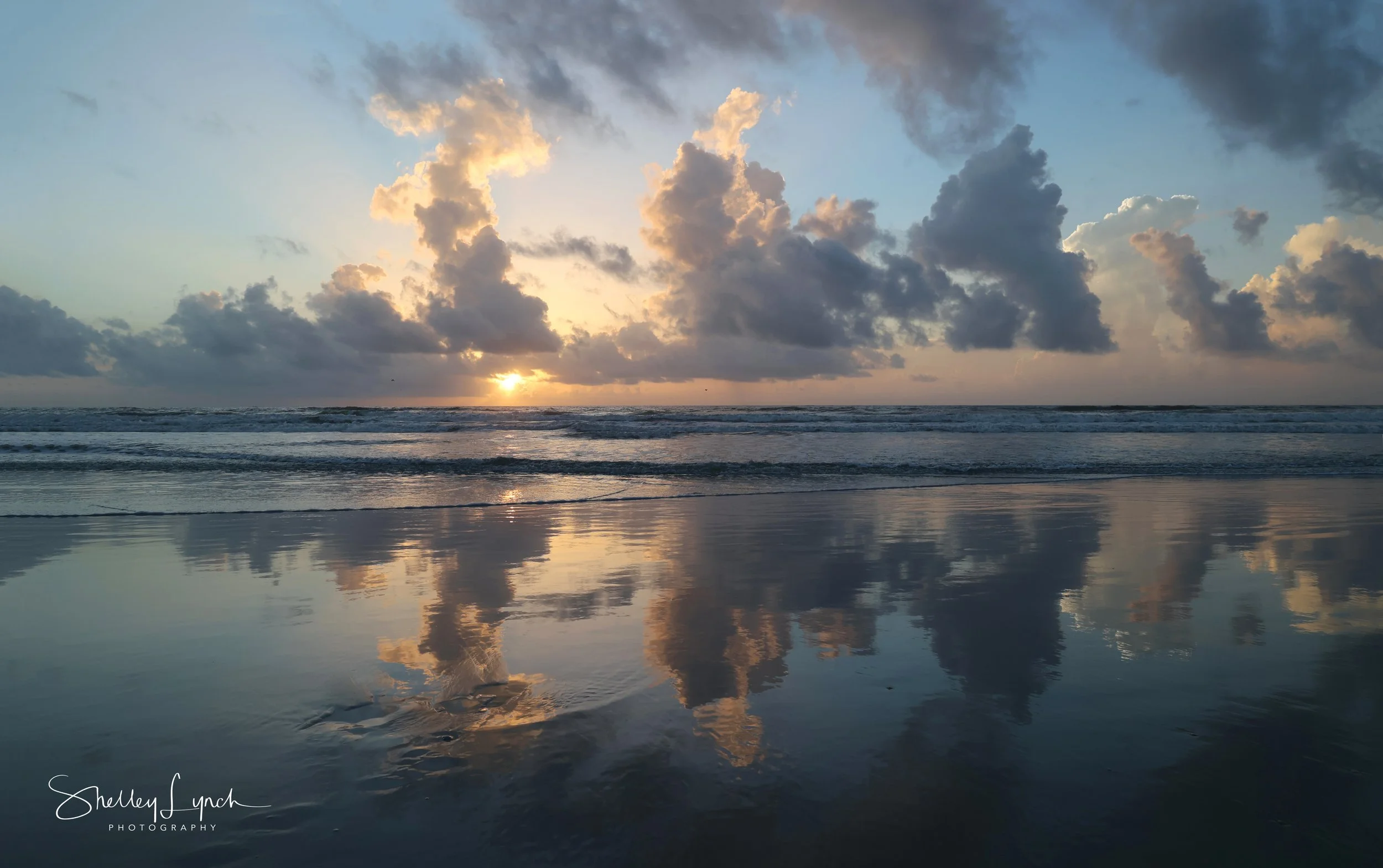 WOW! Mother Nature brought us another dramatic sunrise with fluffy clouds, rain on the horizon and heart expanding reflections on the wet sand. The almost new moon and Venus together in the sky added to the powerful vibe.