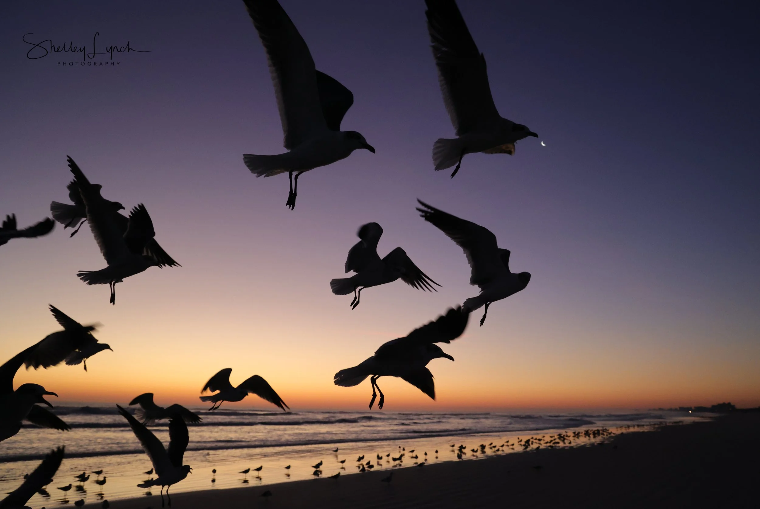 All the snowbirds are here! There were birds as far as the eye could see. When I arrived, they flew up in front of the moon bringing us the message for today.