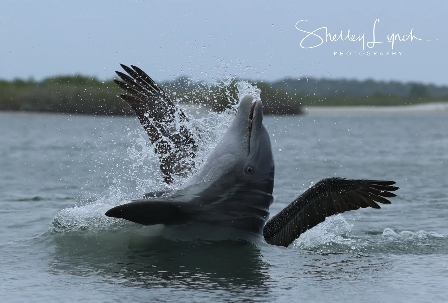 After sunrise, the dolphin, Momma Jade, along with several dolphins friends and 3 pelicans came in to enjoy the breakfast buffet. They said, "Go ahead and take a time out to hug. It will boost your immune system."