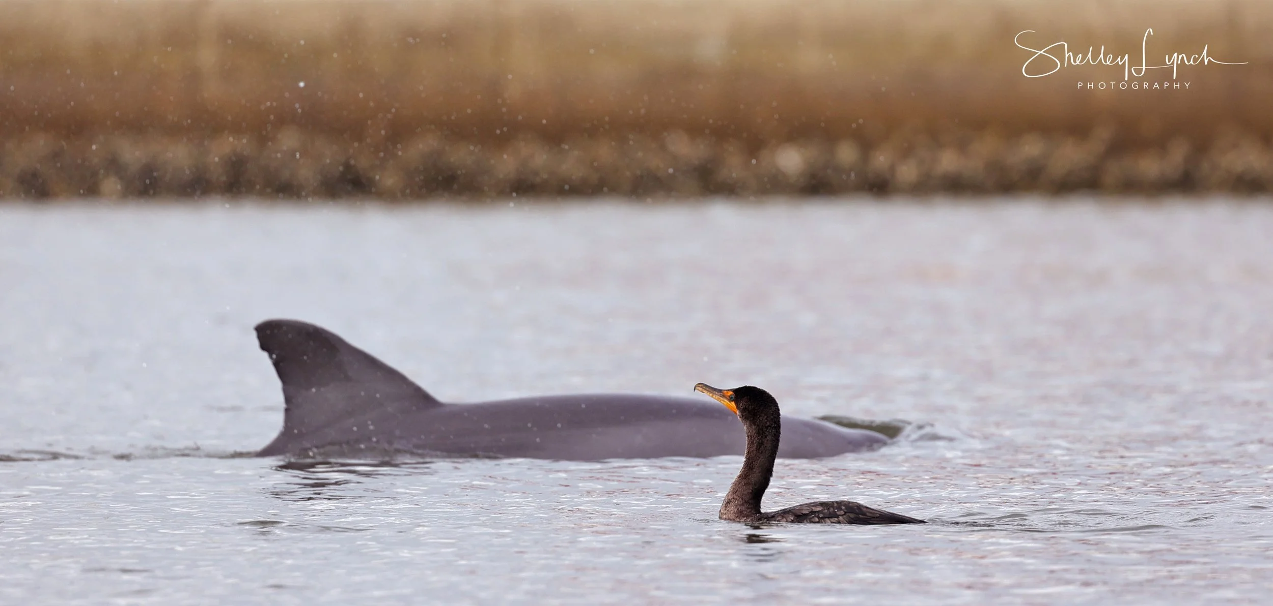 Pelican Highway was gorgeous flying southbound over the waves. After sunrise I saw Danika the dolphin and a cormorant grabbing snacks together. They bring us an interesting combo message.