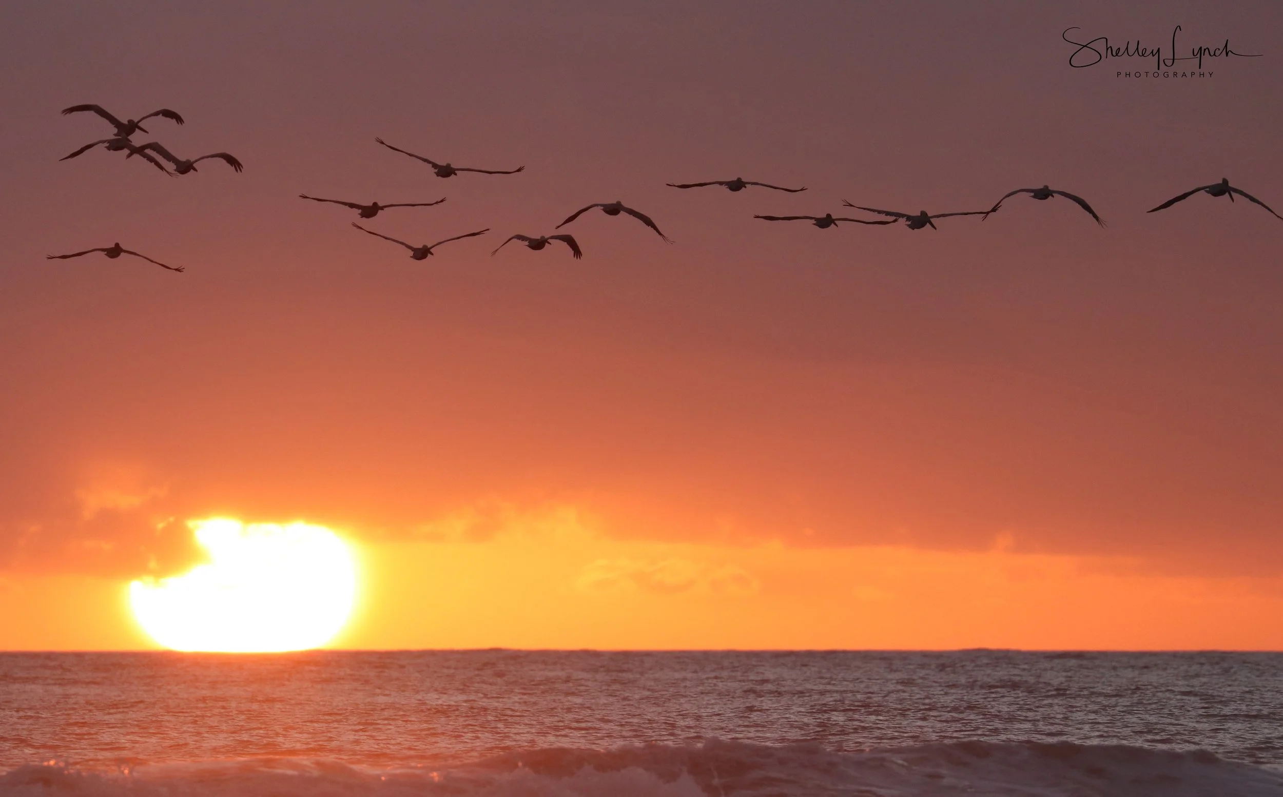 The floc of seagulls flew in at their usual time for some close connection, chat and bath time. Pelican Highway was flying on the horizon in front he of the big sun that looked like it was getting squeezed between the clouds and ocean.