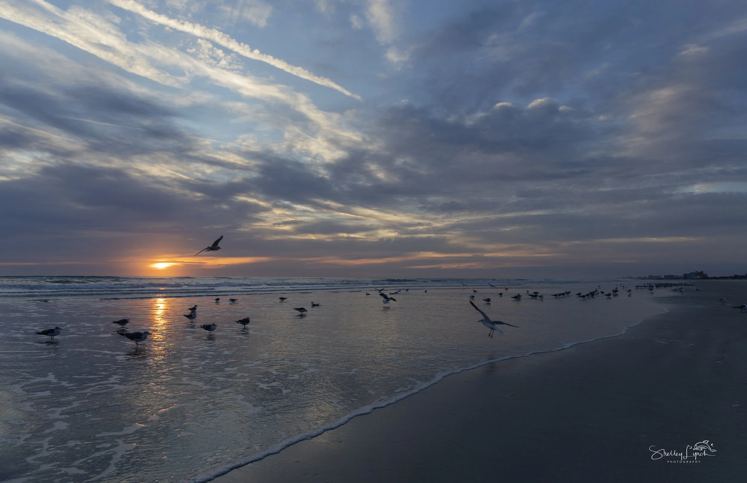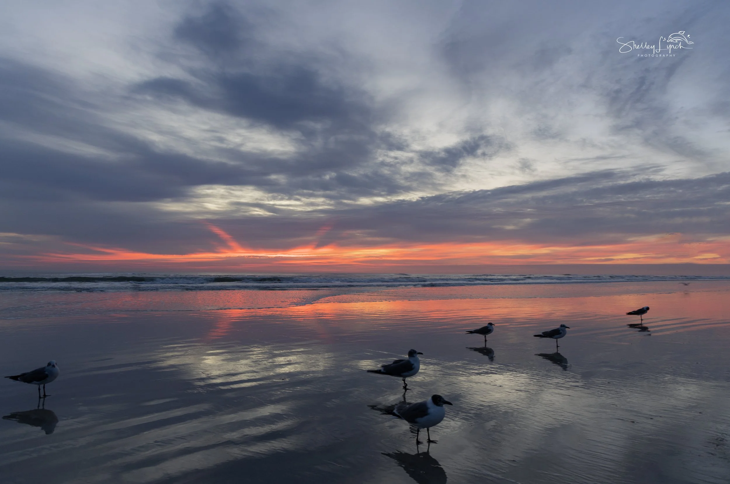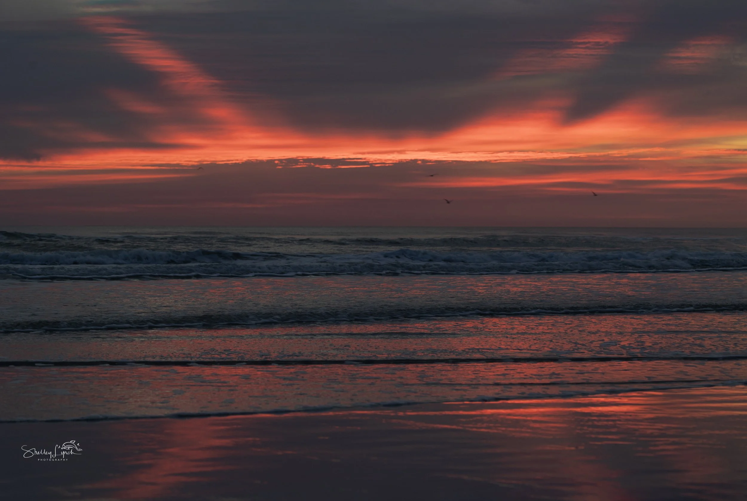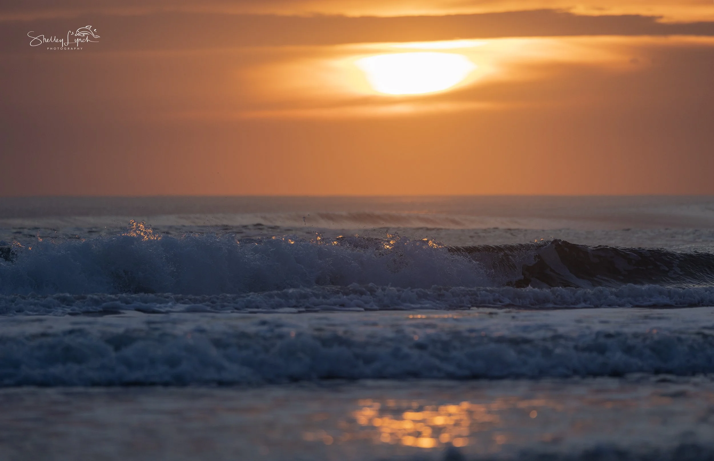 Two sets of waves rolled toward shore — one further out, one closer in —calling to the dolphins and surfers to come play. The soft light shimmered across the textured ocean- the wind creating art on the water.