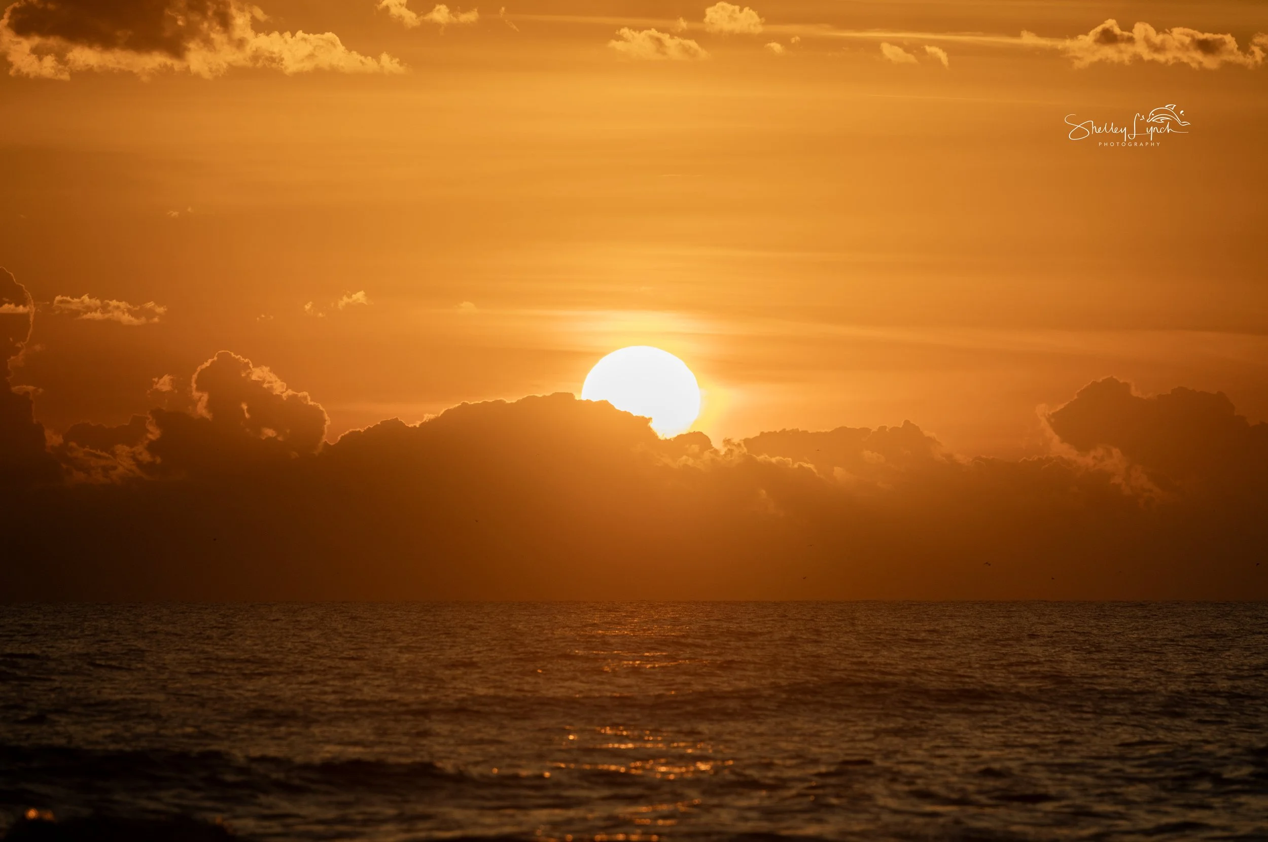 As the sun rose from behind the clouds, the sky glowed orange before settling into a warm golden light. The calm ocean soaked it all in, quietly inviting a solo surfer to come out and play.