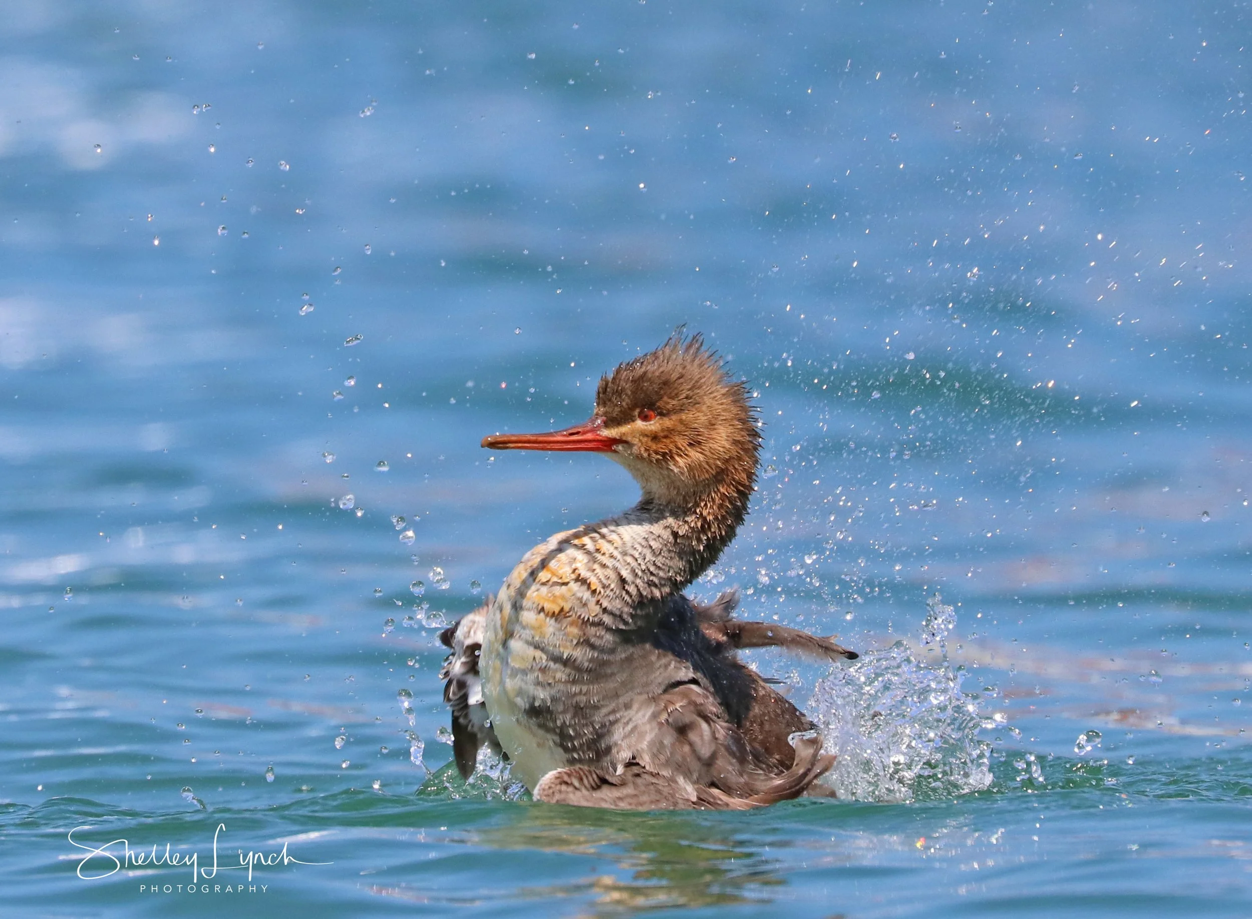 With rain at sunrise this romping I thought what a good day to be a duck. Mergansers are small ducks with adorable personalities. They are shy little birds who come to the lagoon in the winter months.