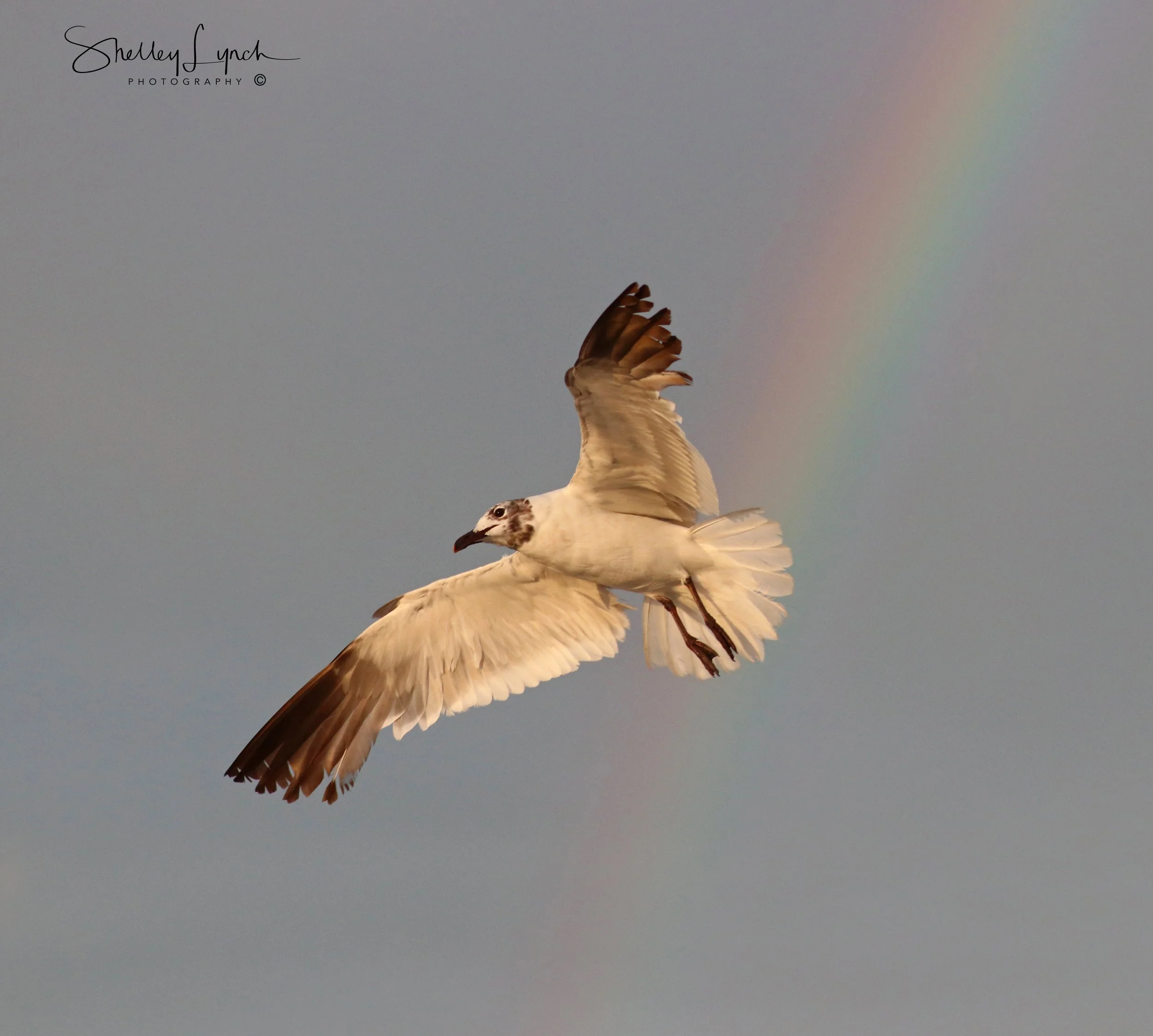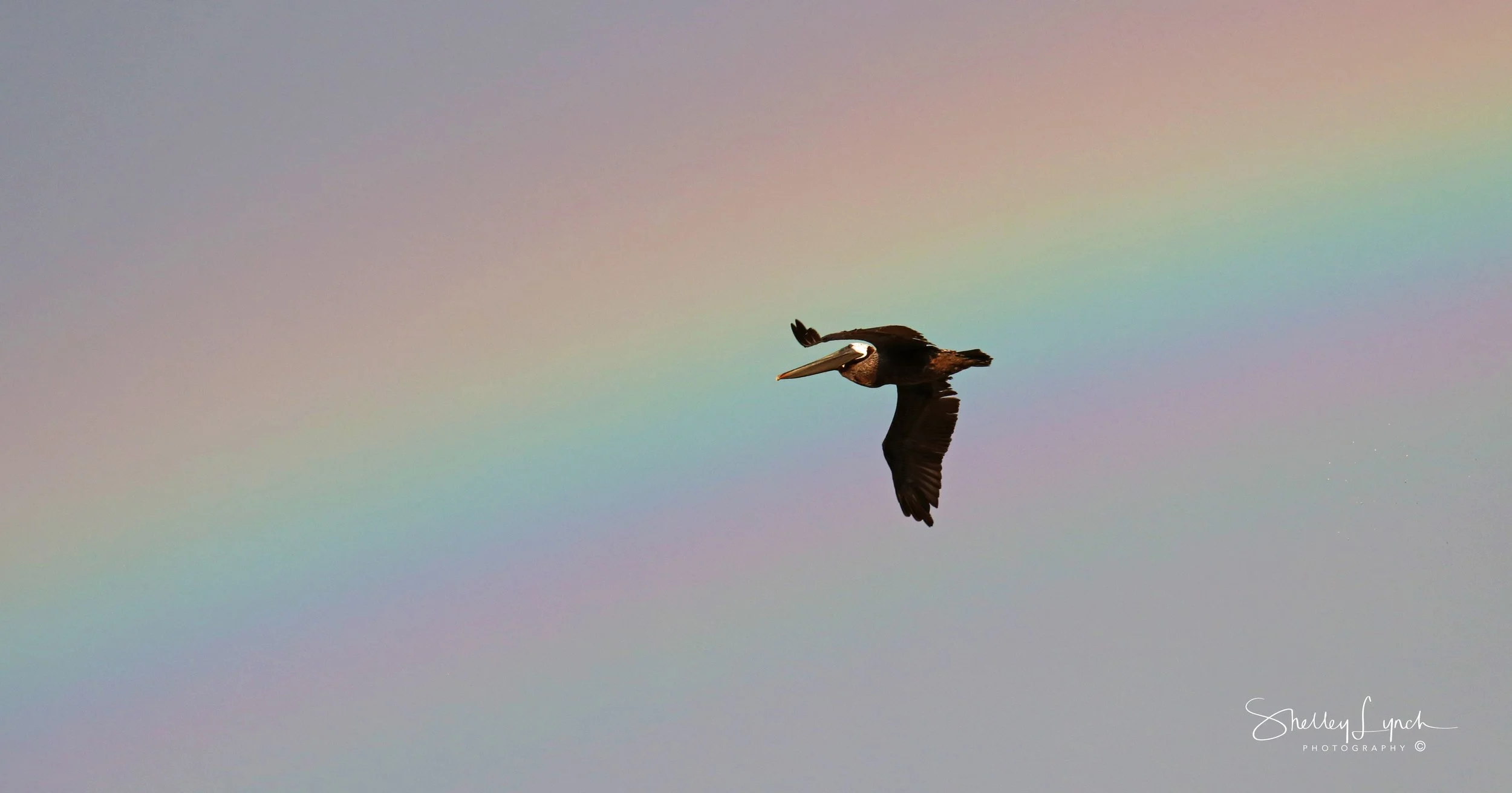 Pelican riding the rainbow