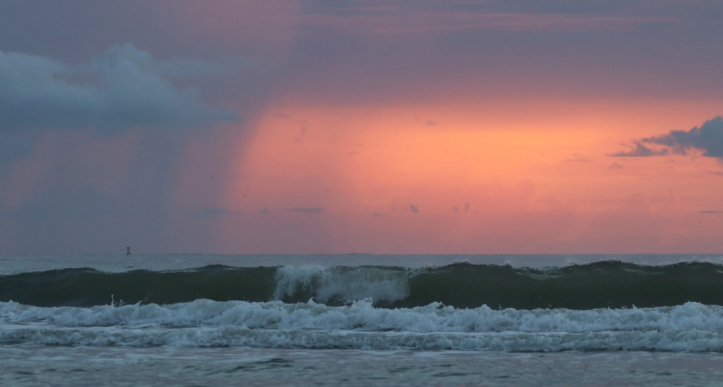 Mother Nature brought us another dramatic cloud and color show. A calm ocean, rain on the horizon and absence of a breeze made the morning extra peaceful. The flock of seagulls came in for bath time and our usual connection time.
