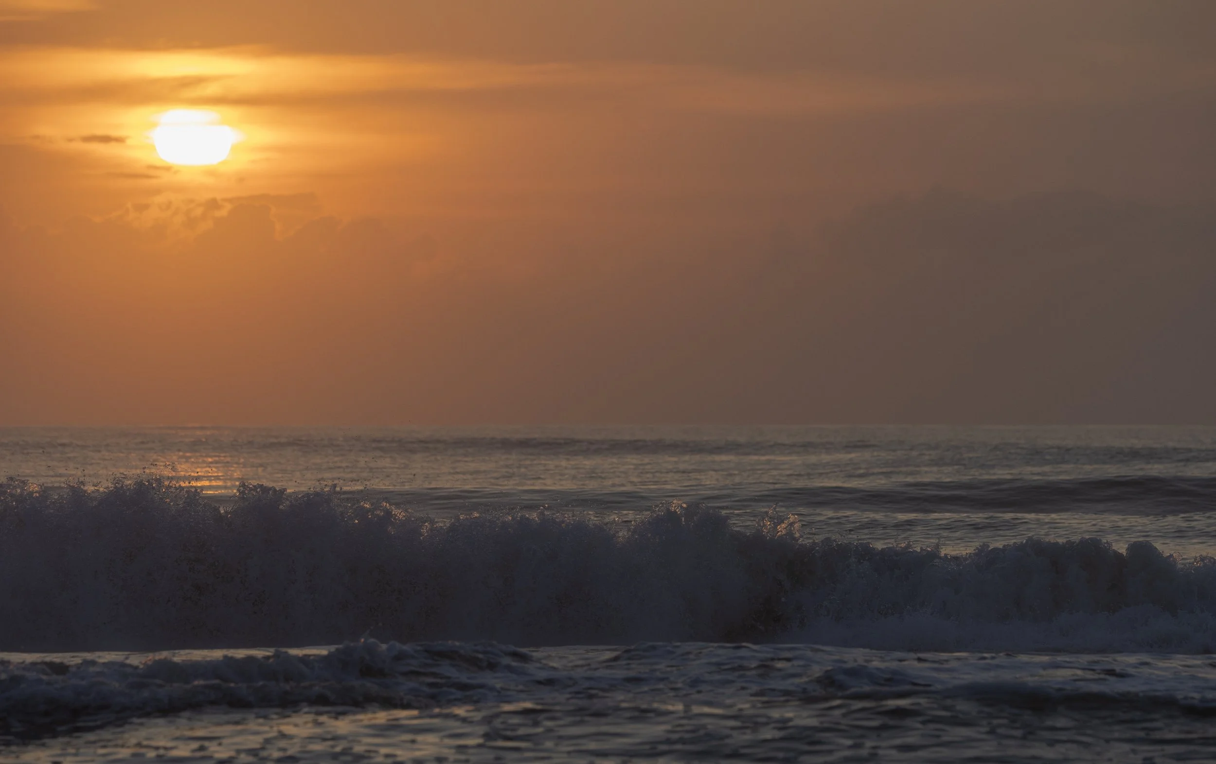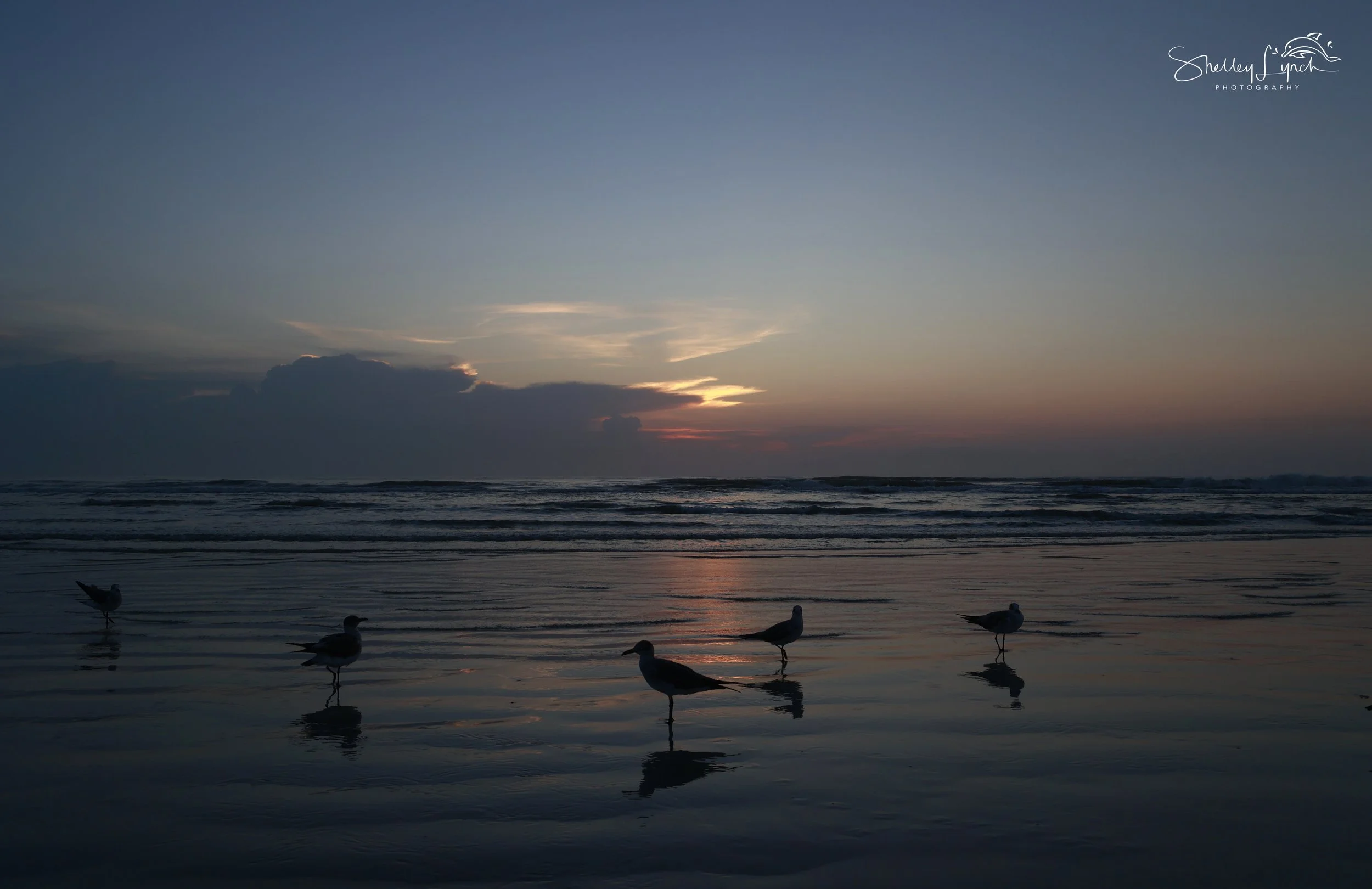 With the absence of a breeze, the morning was still and serene. The ocean lay calm, except for perfect waves rolling gently toward the shore. A chatty flock of gulls flew in, bringing lively energy to the quiet morning.
