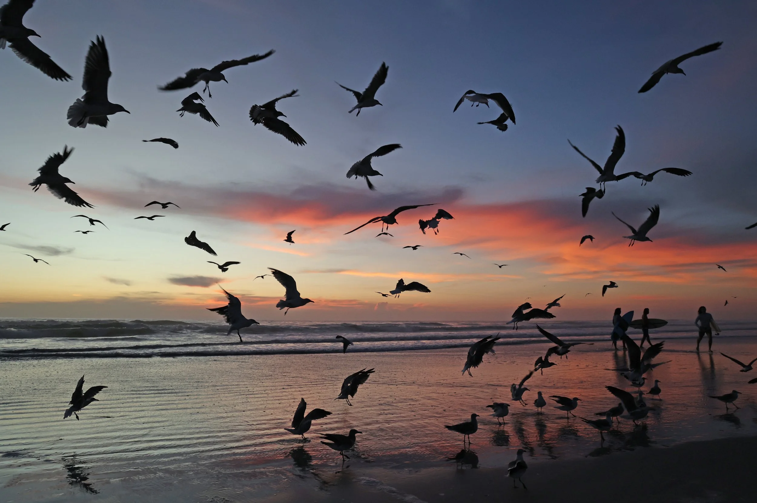 The flock of seagulls flew in loud and ready to bathe. While we were getting squeaky clean, a few surfers walked by and sent the flock flying reminding us to be ready for action. They said, We know flocking together is a great way to feel safe and keeps us from feeling alone."