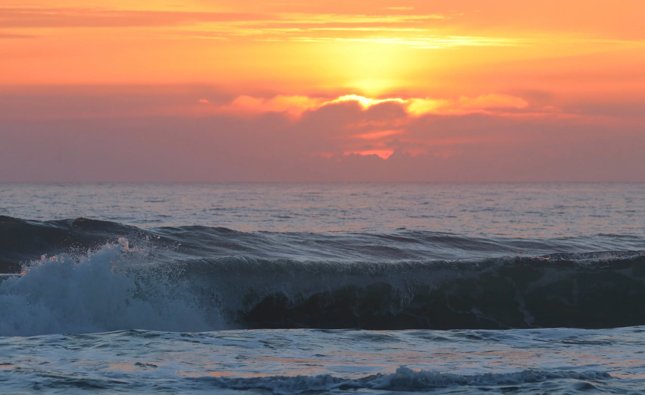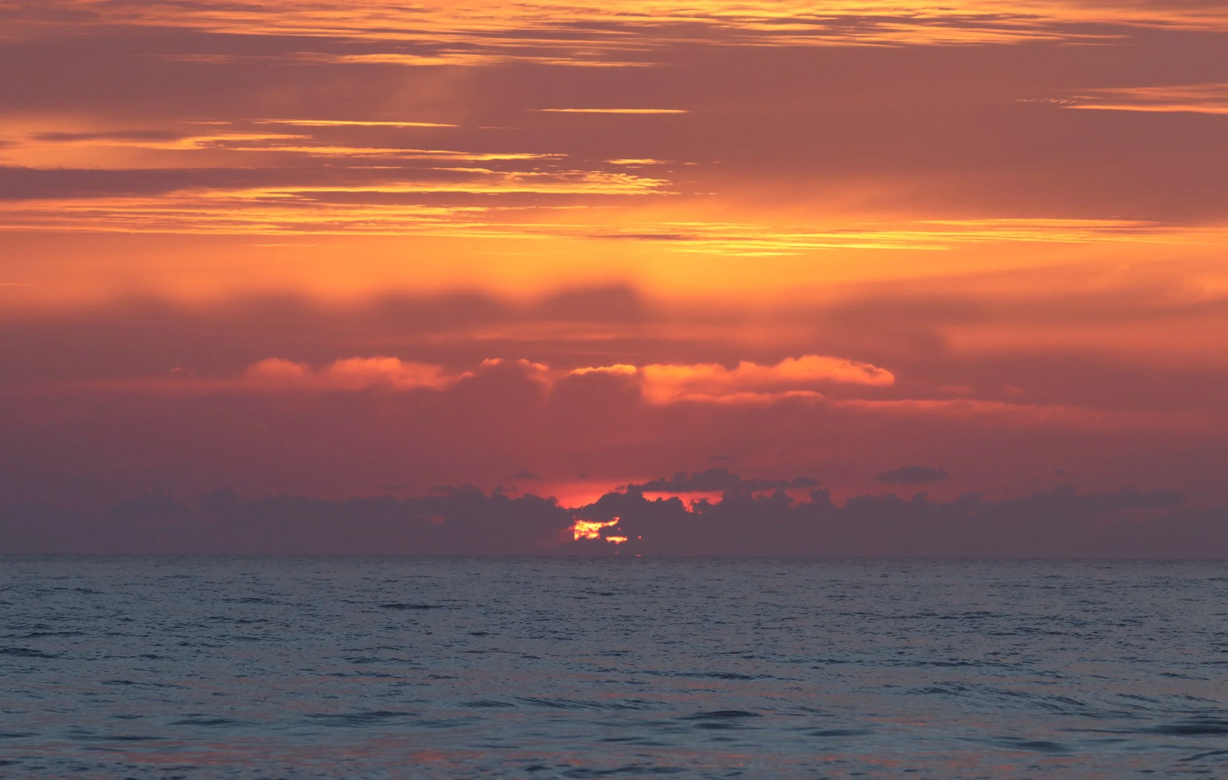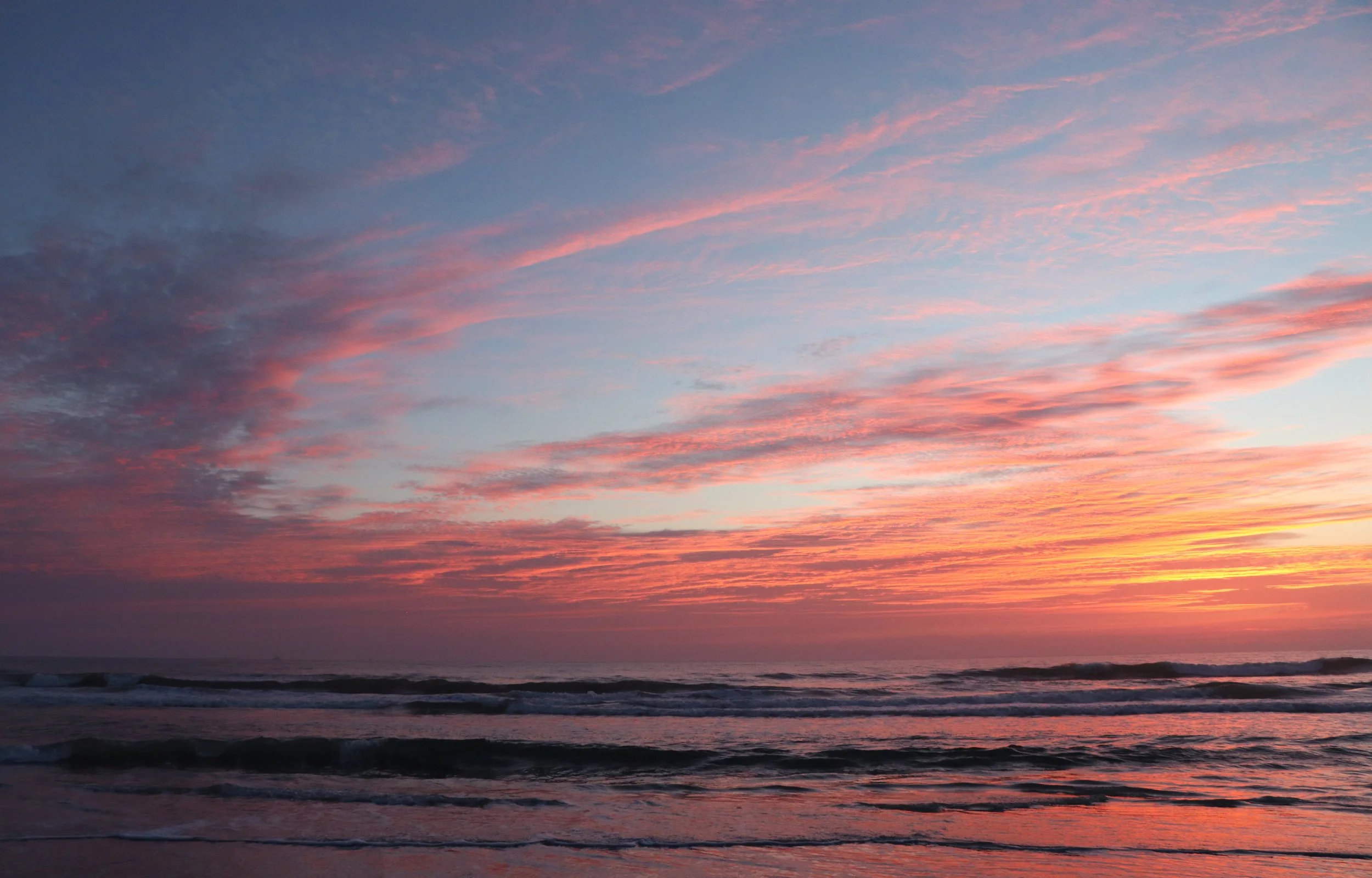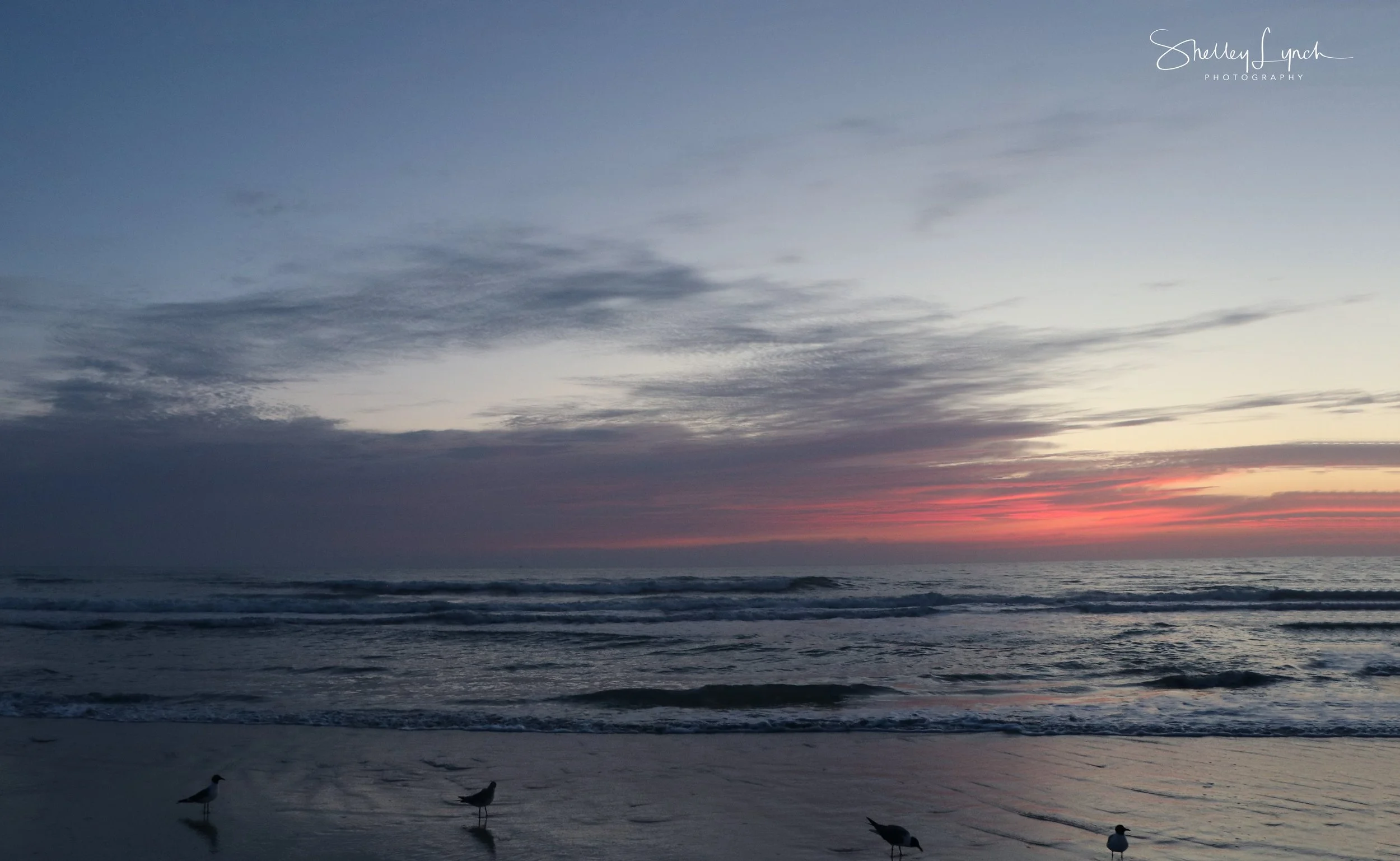 Fluffy pink and purple clouds filled the pre sunrise sky. The pink eventually became a powerful golden glow as the sun came up from behind a heart shaped cloud.