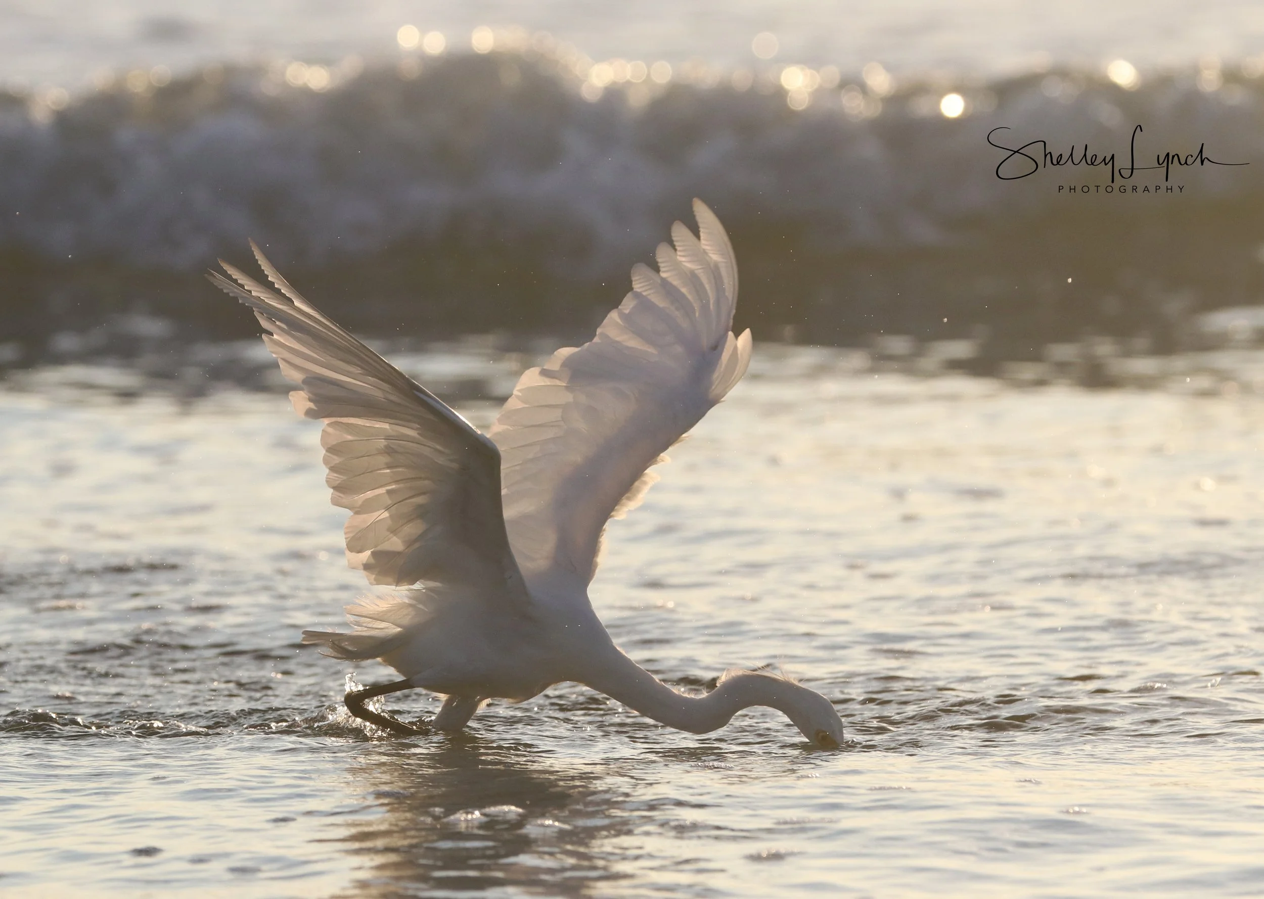 An egret dancing in the waves grabbing breakfast added to the message saying, “Waiting is part of the journey. Not to worry, you will know when to leap froward and take action.”
