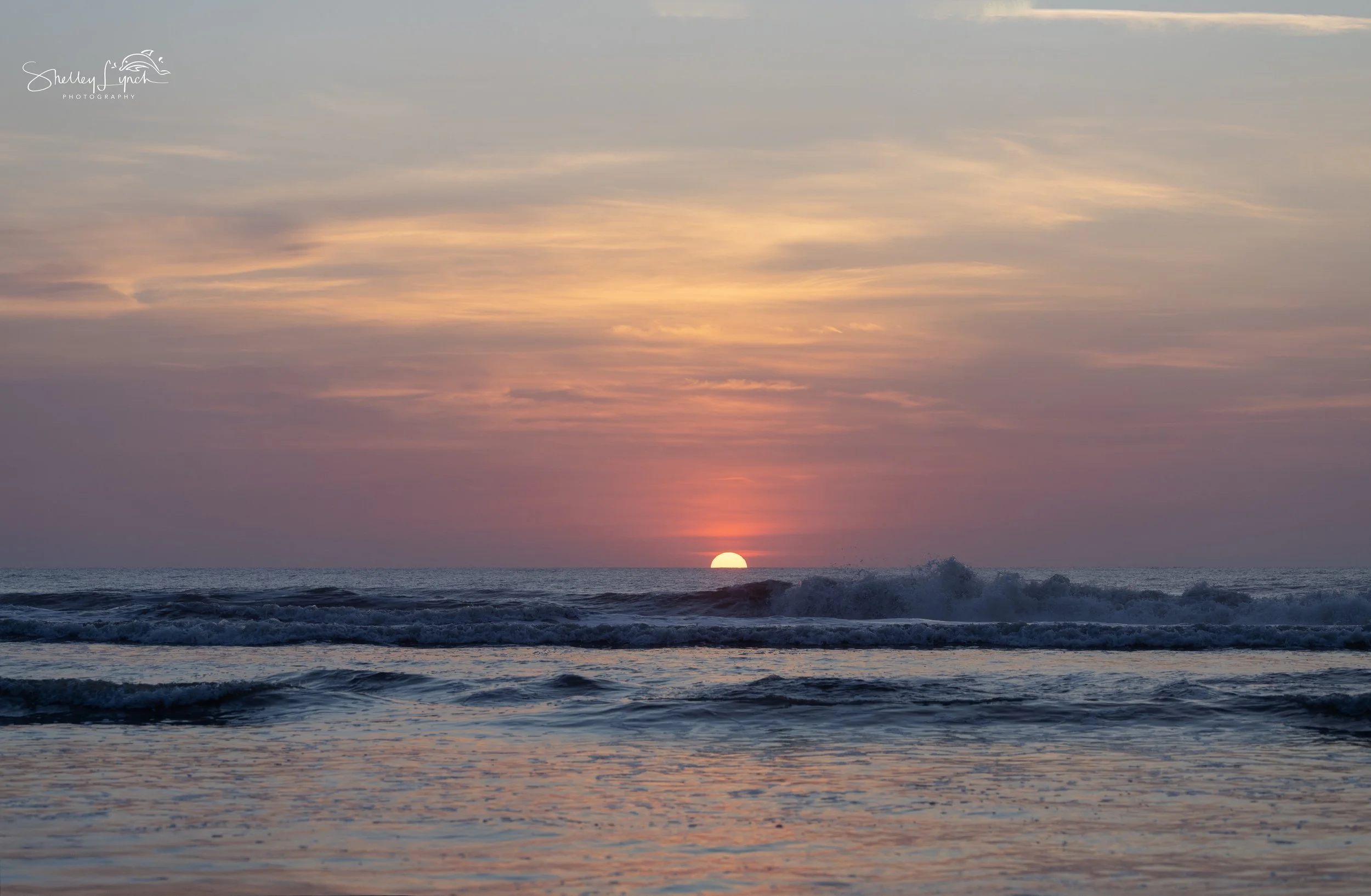 A chatty flock of laughing gulls flew in, chattering as they watched the sun rise. The pre-dawn sky glowed soft pink, shifting into a stunning blend of gold and rose as the big ball of light greeted the new day. Beautiful waves called the surfers out to play.