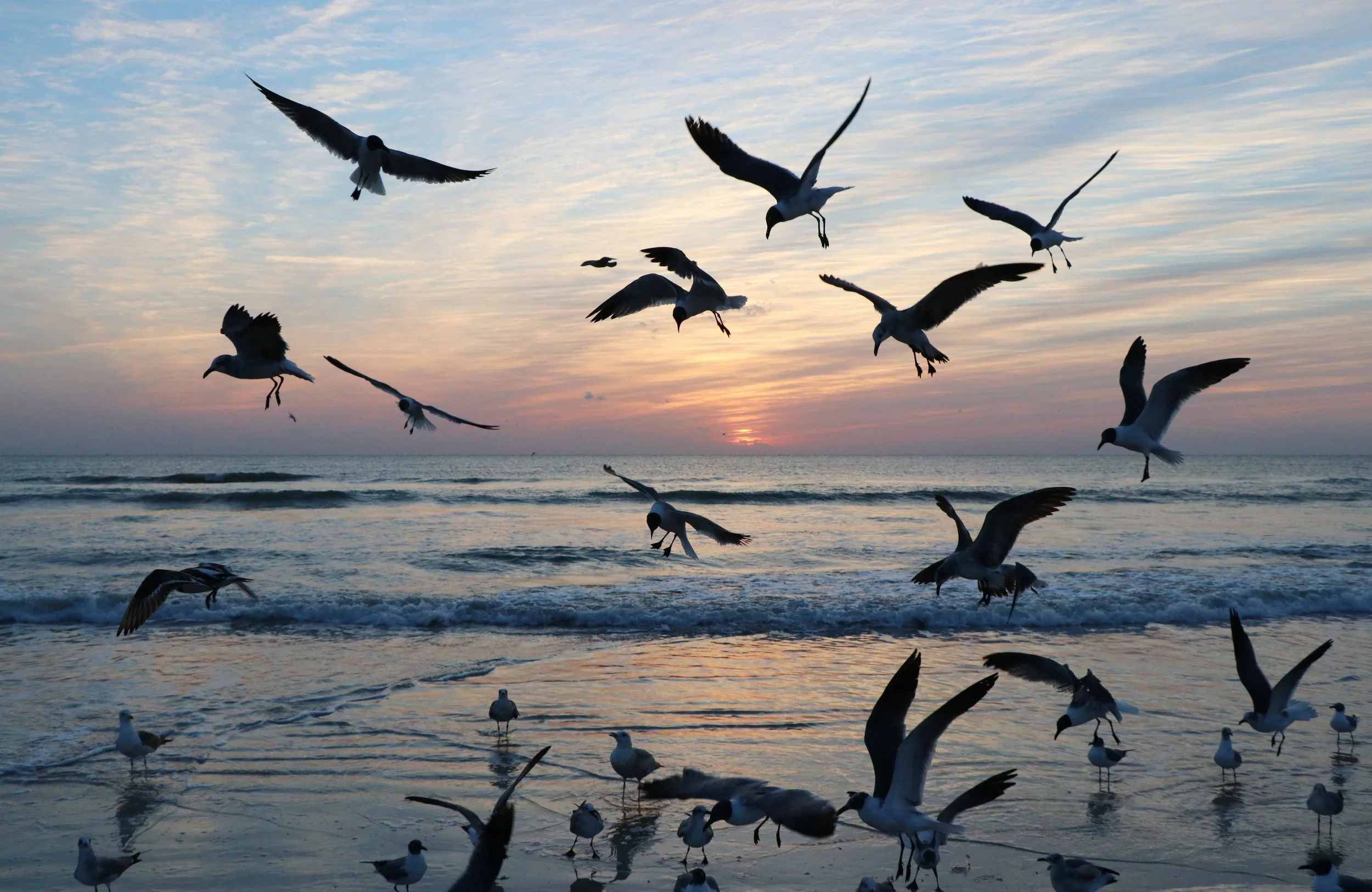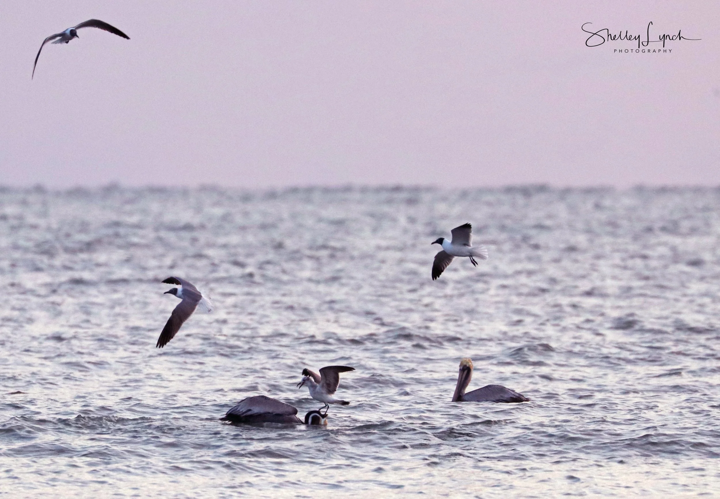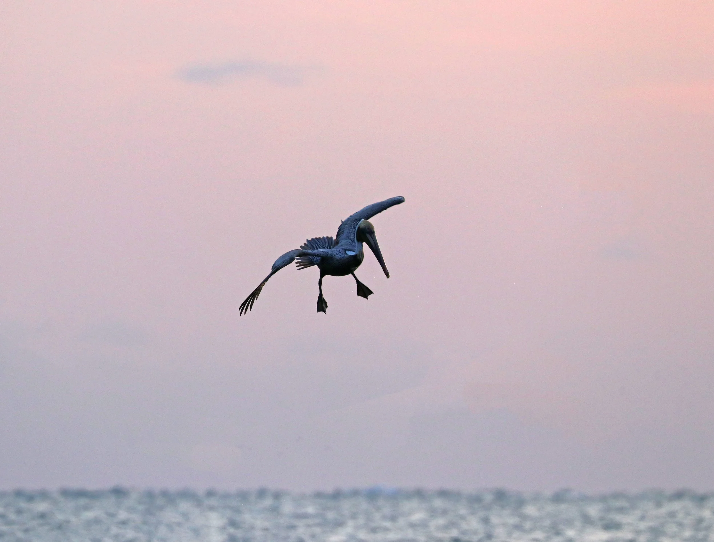 Mother Nature used her wispy paint brush this morning filling the sky with sweet and soft brush strokes. The clouds soaked up the pastel colors adding to the heart opening vibe. At first there was a distinct absence of wildlife but then it was as if a doorway opened and the flock of seagulls, sandpipers and Pelican Highway showed up.