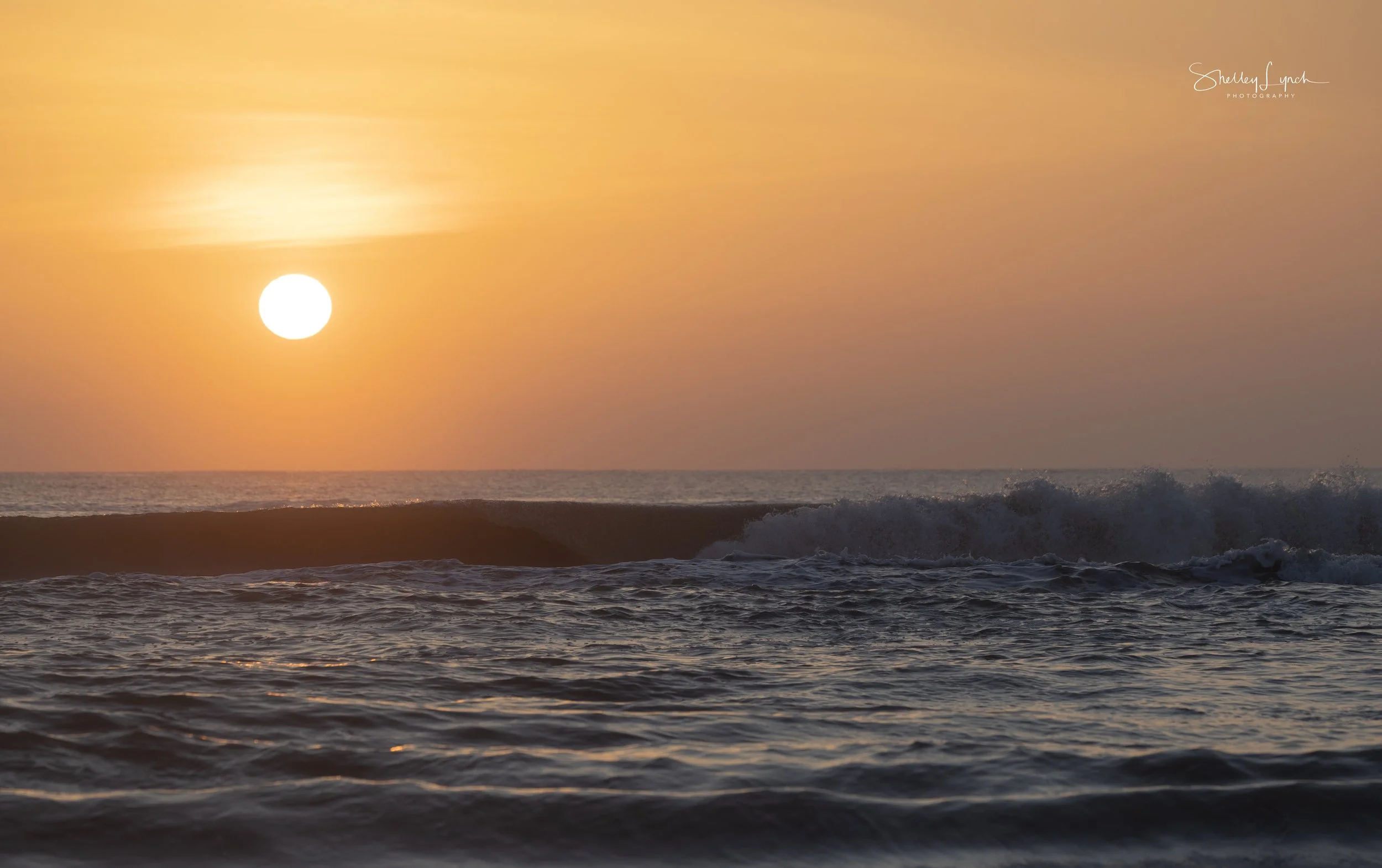 As the sun rose, it kissed the ocean on its way up, casting a golden glow to the pink glow ready to brighten the day. A few laughing gulls and herring gulls, still lingering in town, gathered for their morning bath.