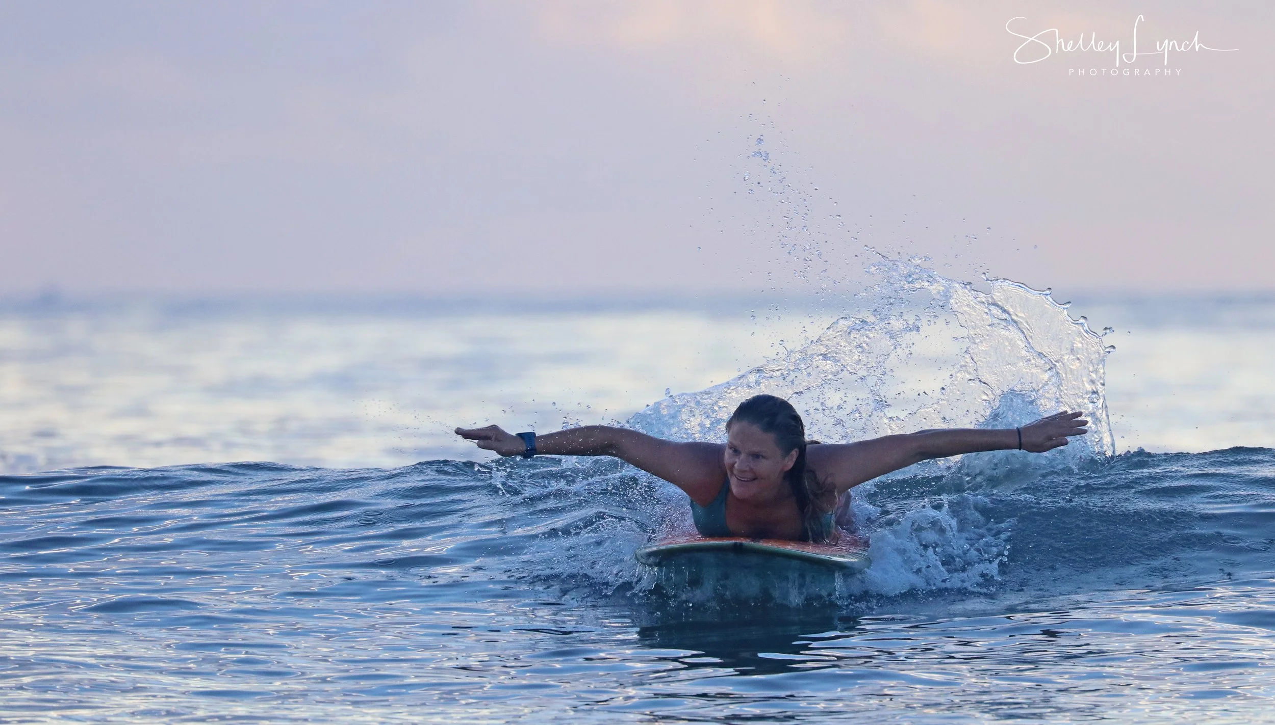 The ocean was calm except for perfect surfing waves. Two surfers were catching waves when I reached the shore. The expression on the girls face says it all, “Enjoy riding the waves! Paddling to get in front of the wave is half the fun! If you love what you do the effort is fun!"