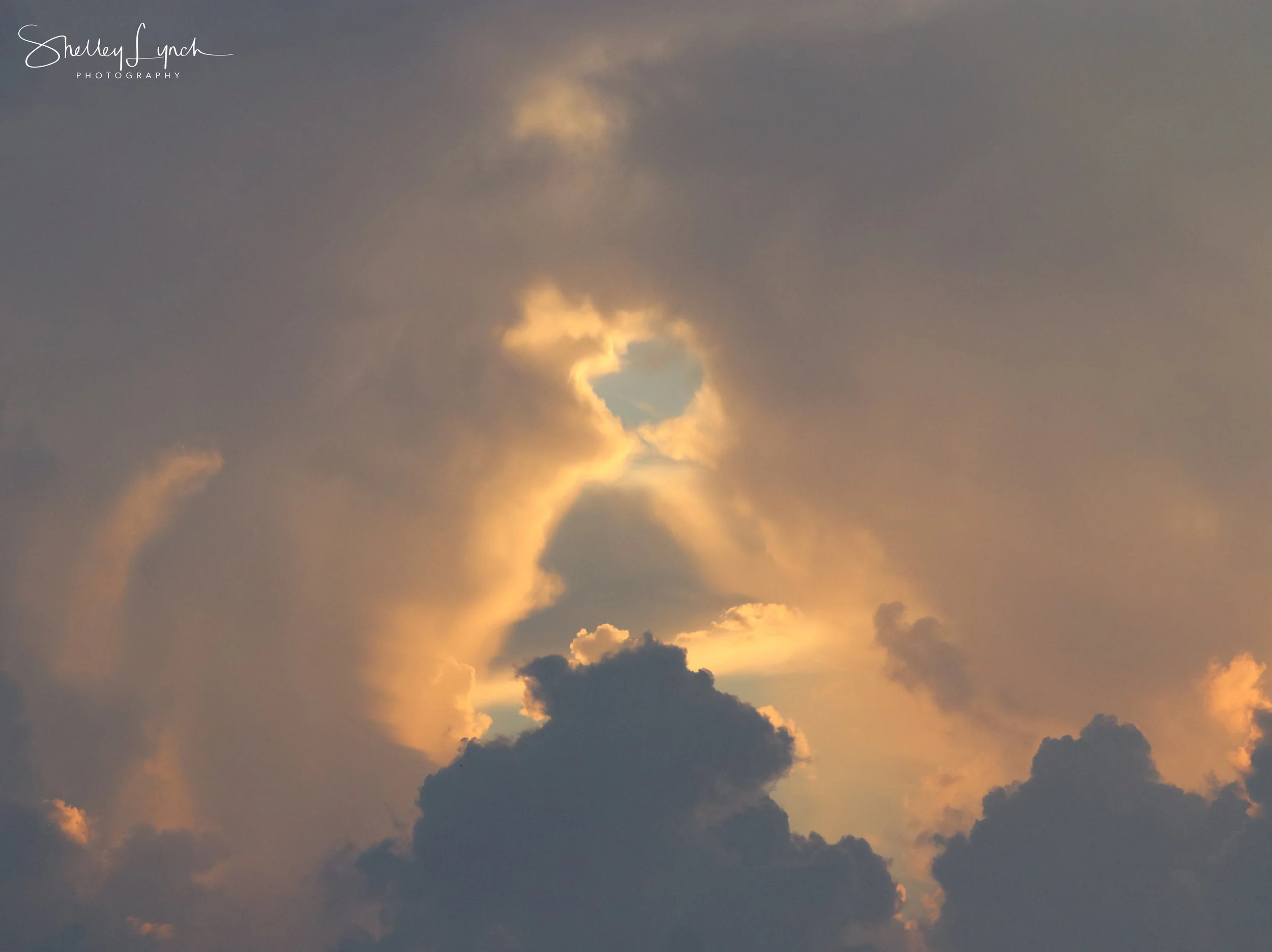 A person in the shape of the lotus position appeared in the clouds brining us a powerful message. The lotus roots in the ground then reaches for the sun, encouraging us to seek truth and enlightenment. The lotus position reminds us to sit tall and release what no longer serves you so we are able to hold our petals (Heart) high and open.