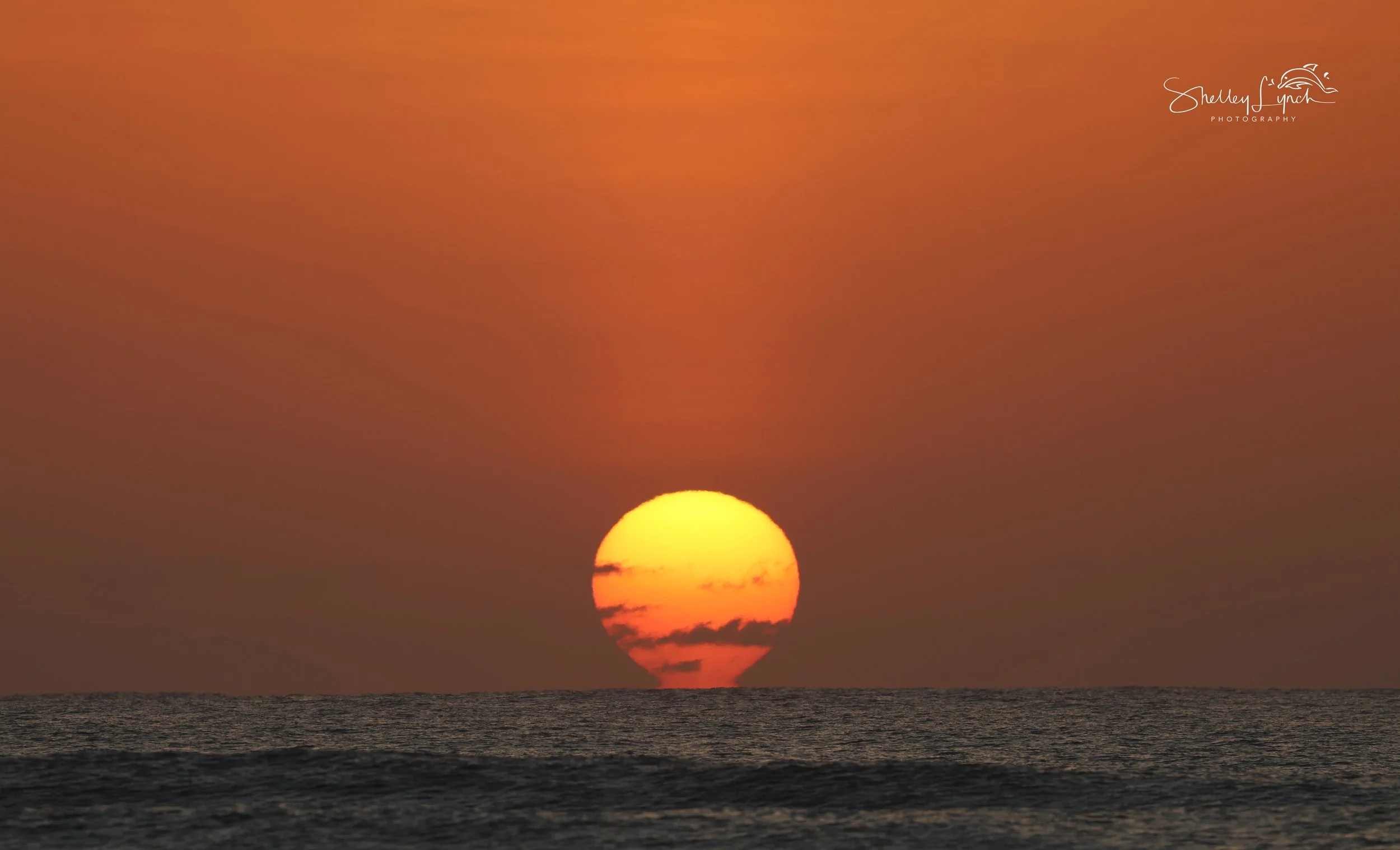 The waves rolled in like a velvety blanket, smoothing the sand with each graceful touch. When the sun finally appeared, it looked like a glowing hot air balloon, pausing just long enough to give the ocean a quick goodbye kiss before rising higher into the sky.