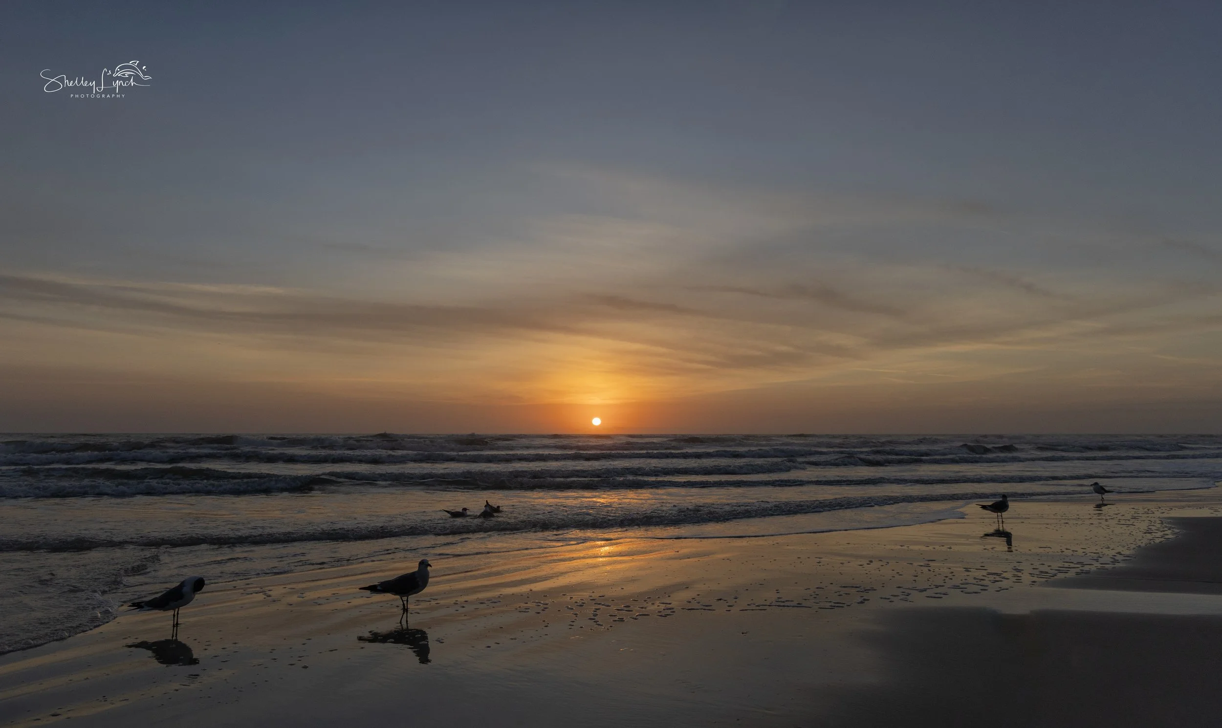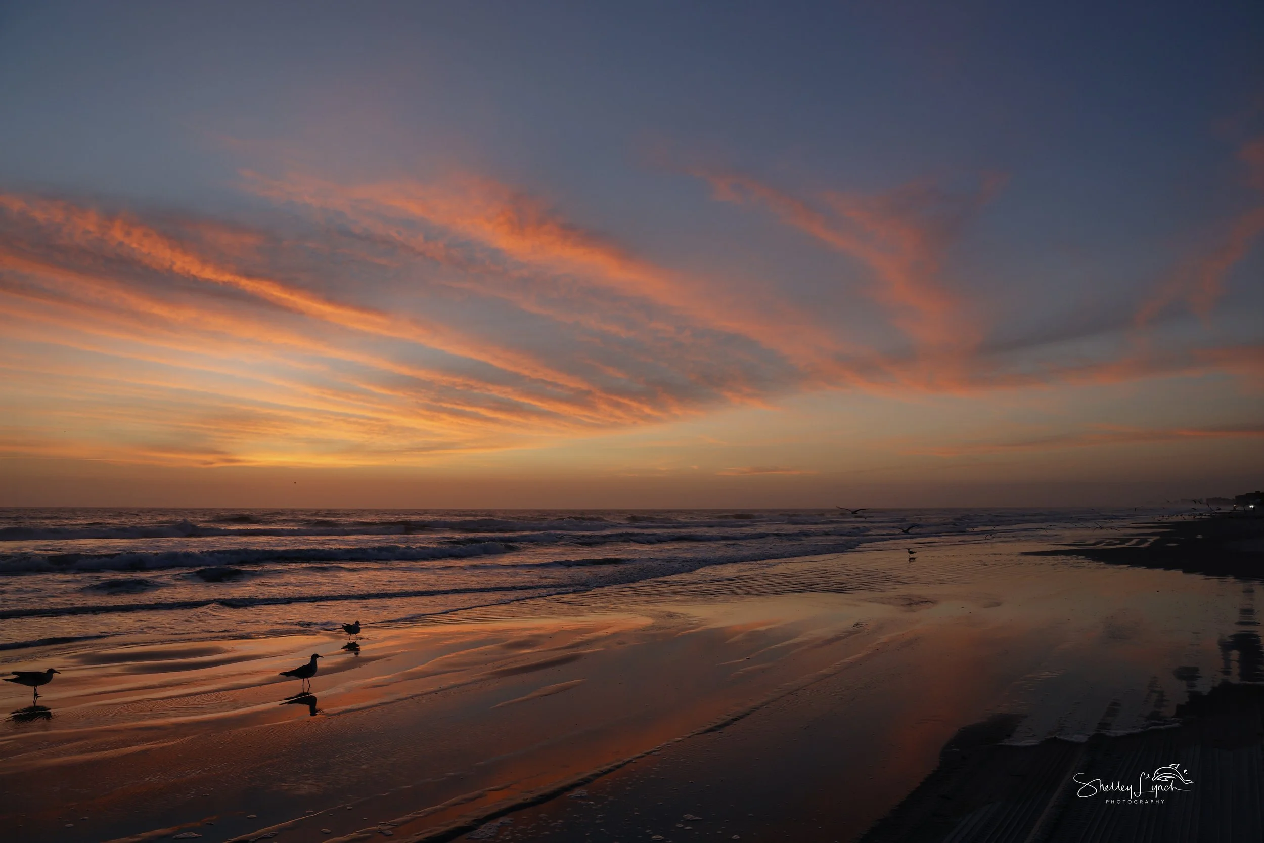 With wispy clouds mirrored in the wet sand, the morning was instantly heart-opening and peaceful. The waning moon glowed brightly in the sky, surrounded by a soft pastel color show.