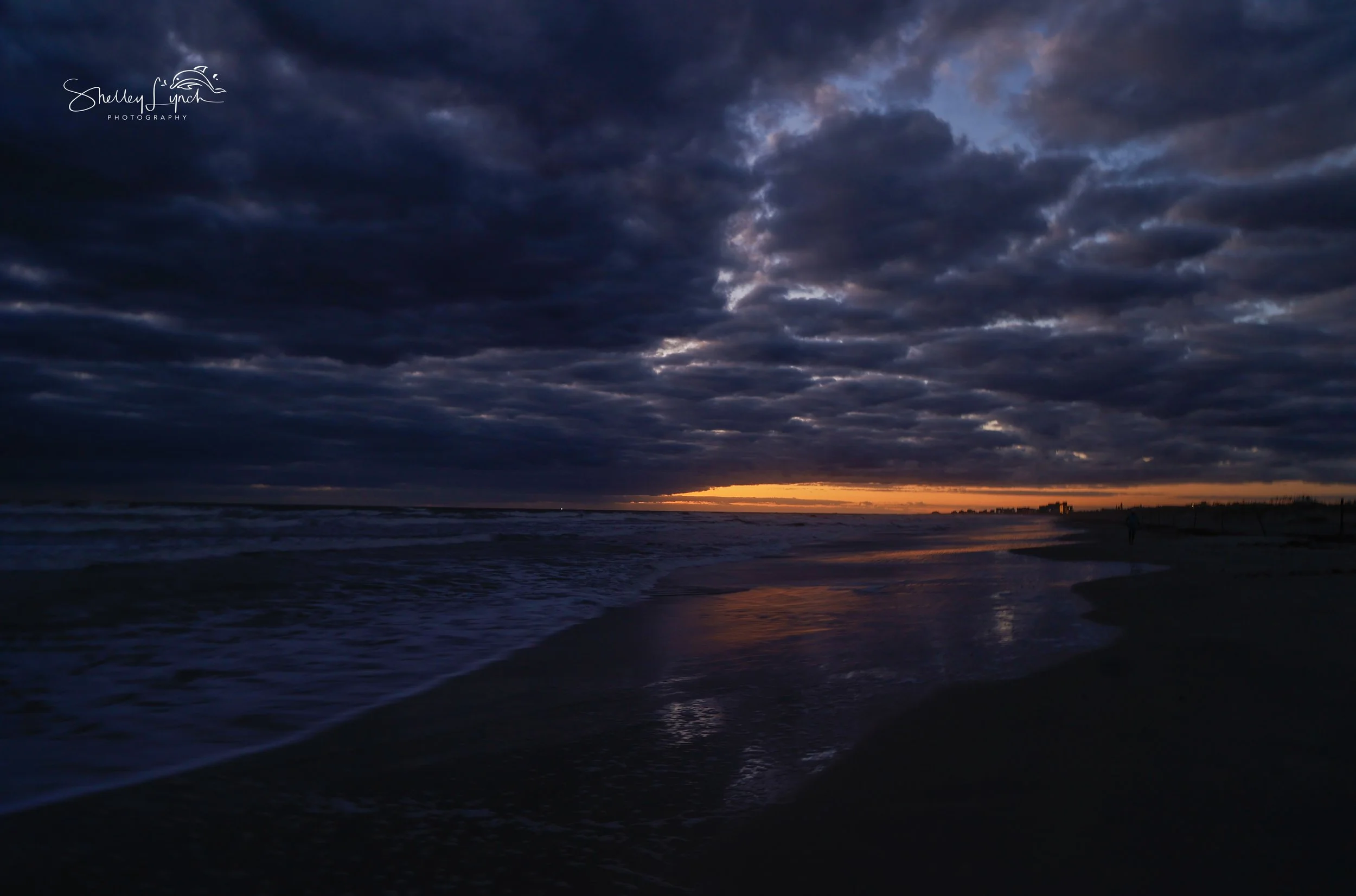 The sky wore a wintery dramatic blanket of clouds, layered in shades of slate blue and silver, letting only a sliver of golden light peek through along the horizon.