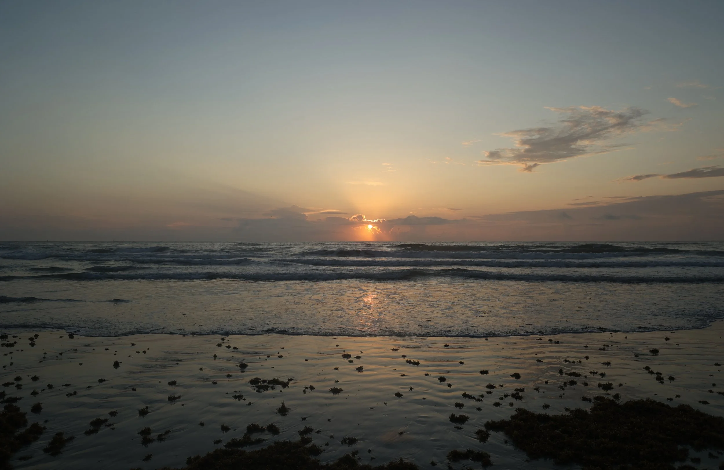 It was a stunner of a sunrise with clouds formations on the horizon that looked like a city from another world. The pre sunrise colors were a lovely pink and purple that quickly turned to a vibrant golden and orange glow as the came up in the middle of an door in the clouds.