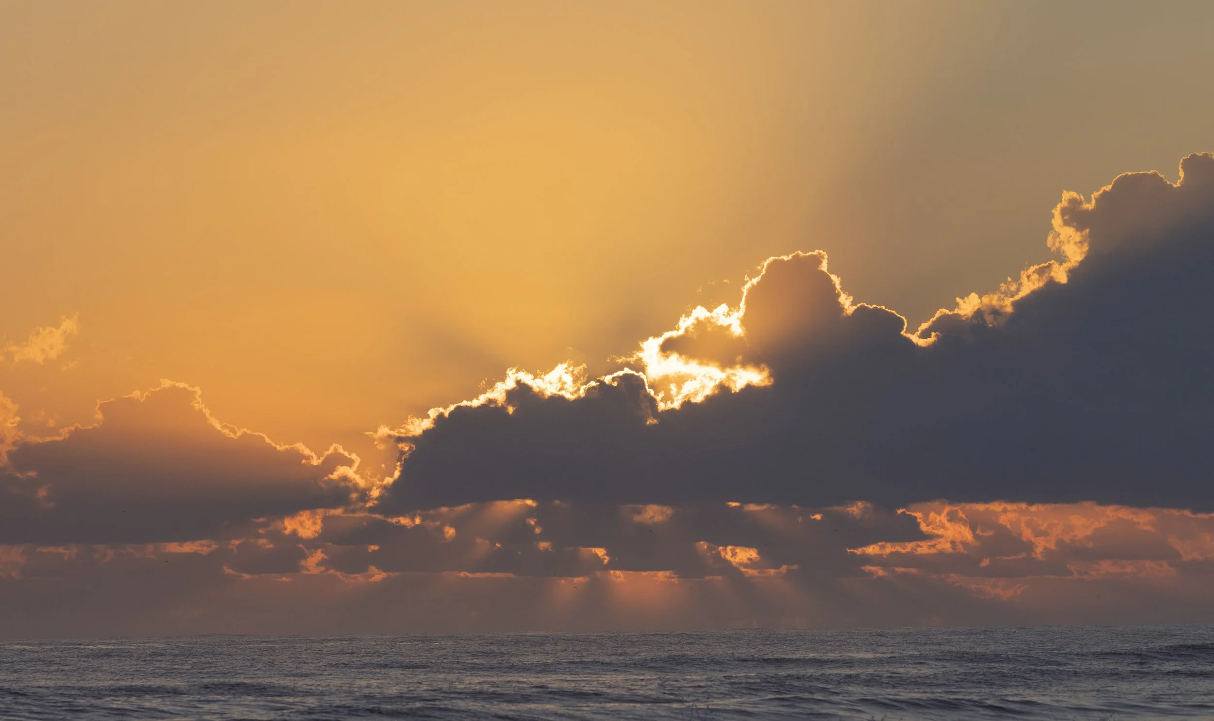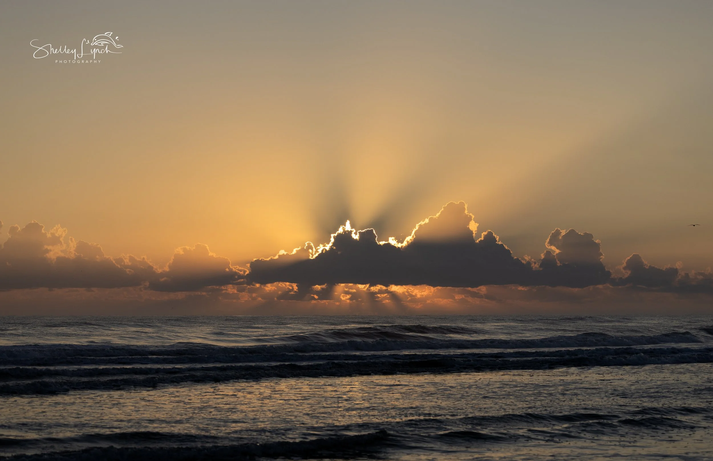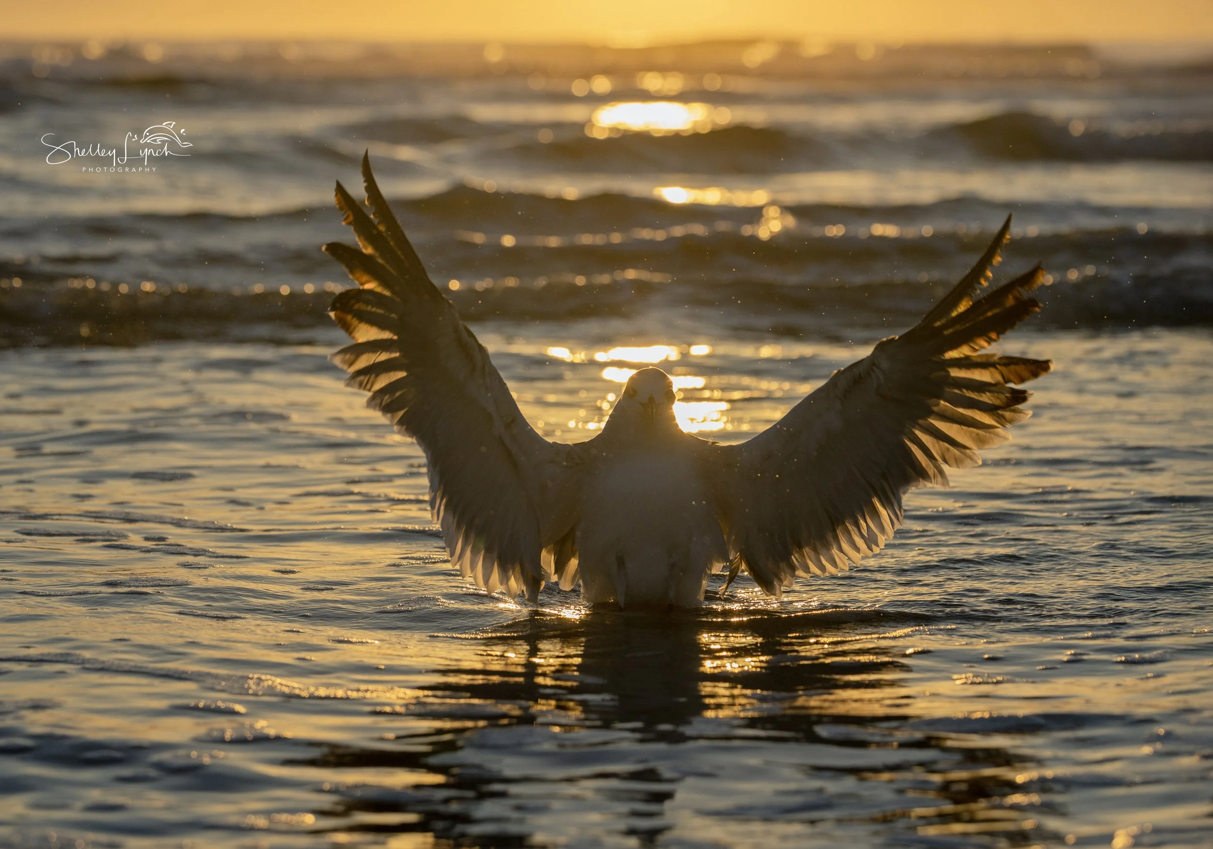 As the sun climbed higher, gold poured across the water like liquid light. Waves rolled toward shore calling the surfers to come play and the gulls to splash in the shallow water.