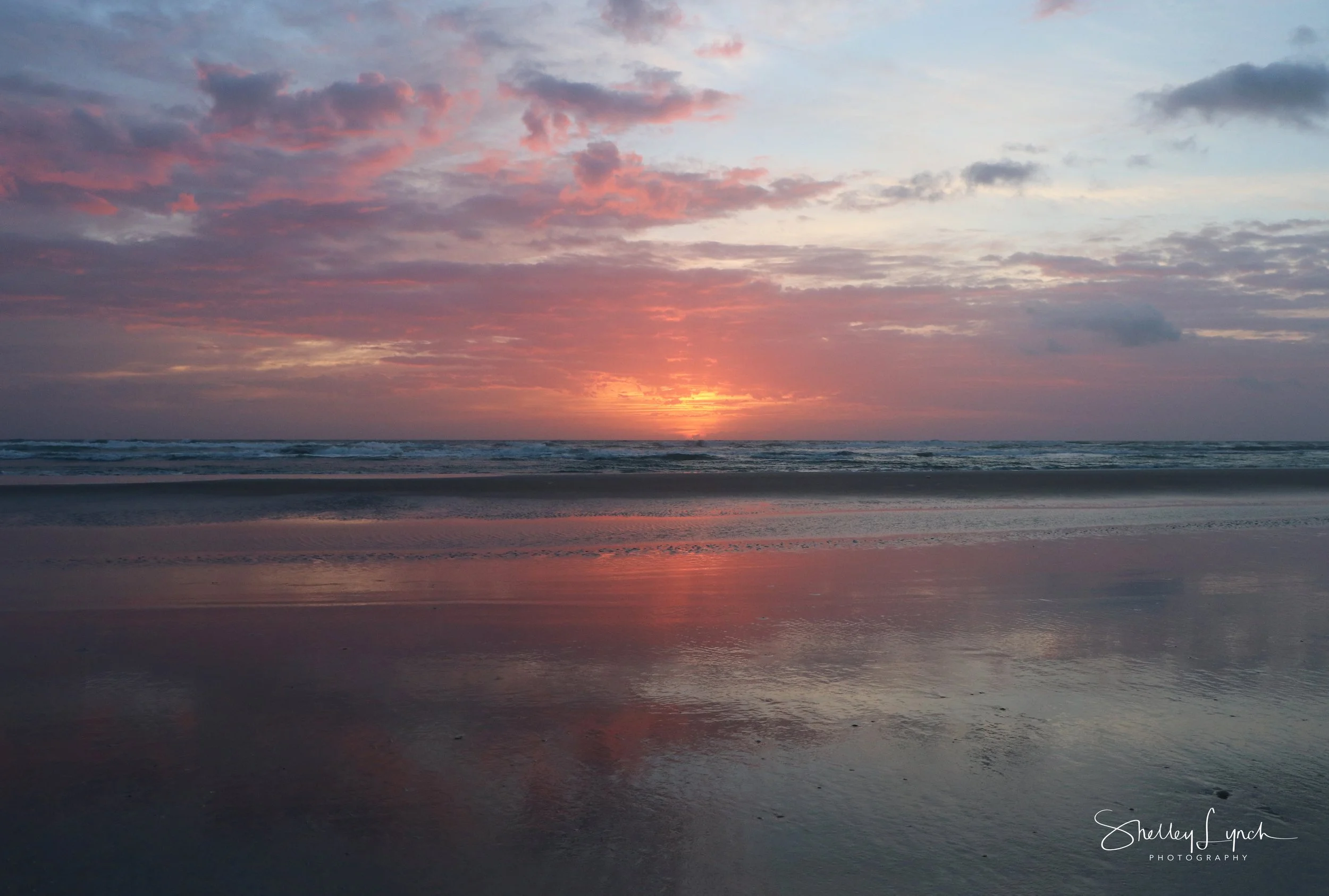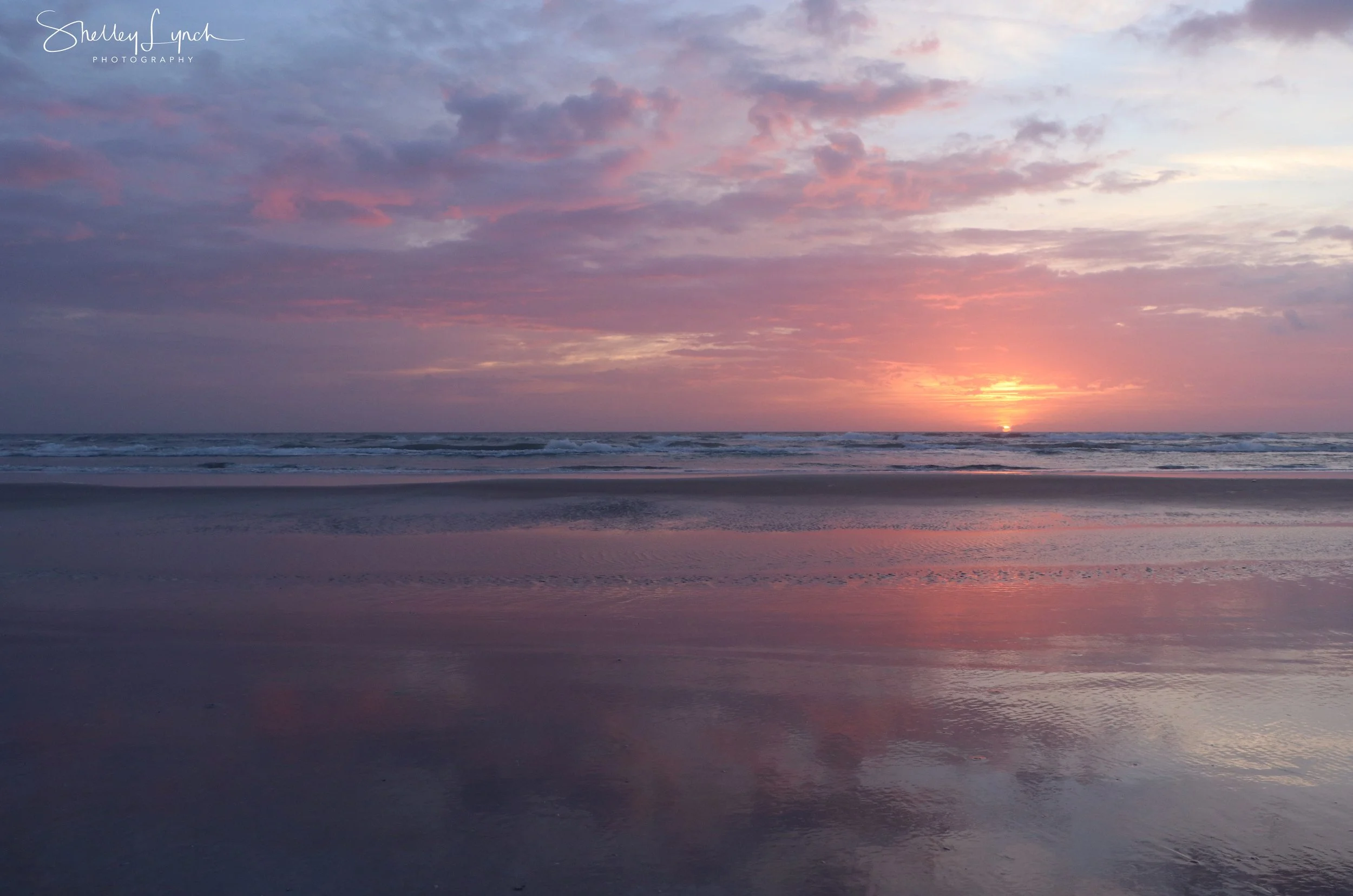 Another stunning sunrise with a pretty in pink color scheme. After the sun started to come up about 10 seagulls, a flock of sandpipers, ruddy turnstones and a solo willet flew in to hang out.