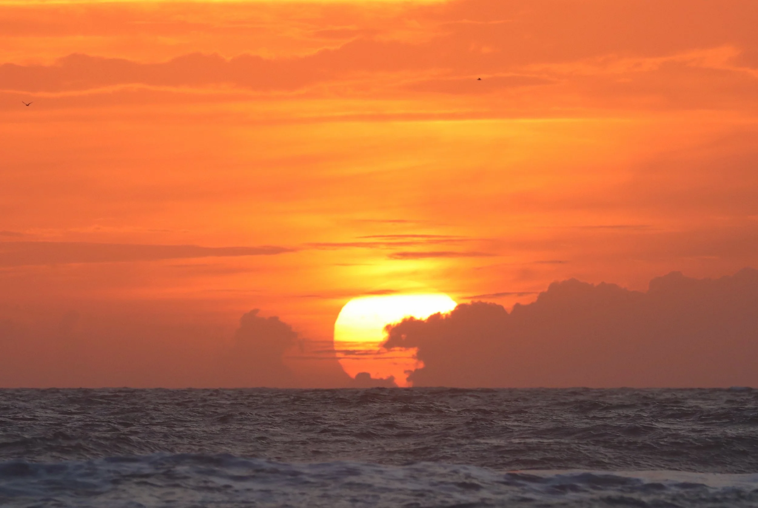 The breeze and churning ocean gas us an invigorating vibe to the morning. As the sun came up, I saw a puppy dog walk across the Sun from right to left.