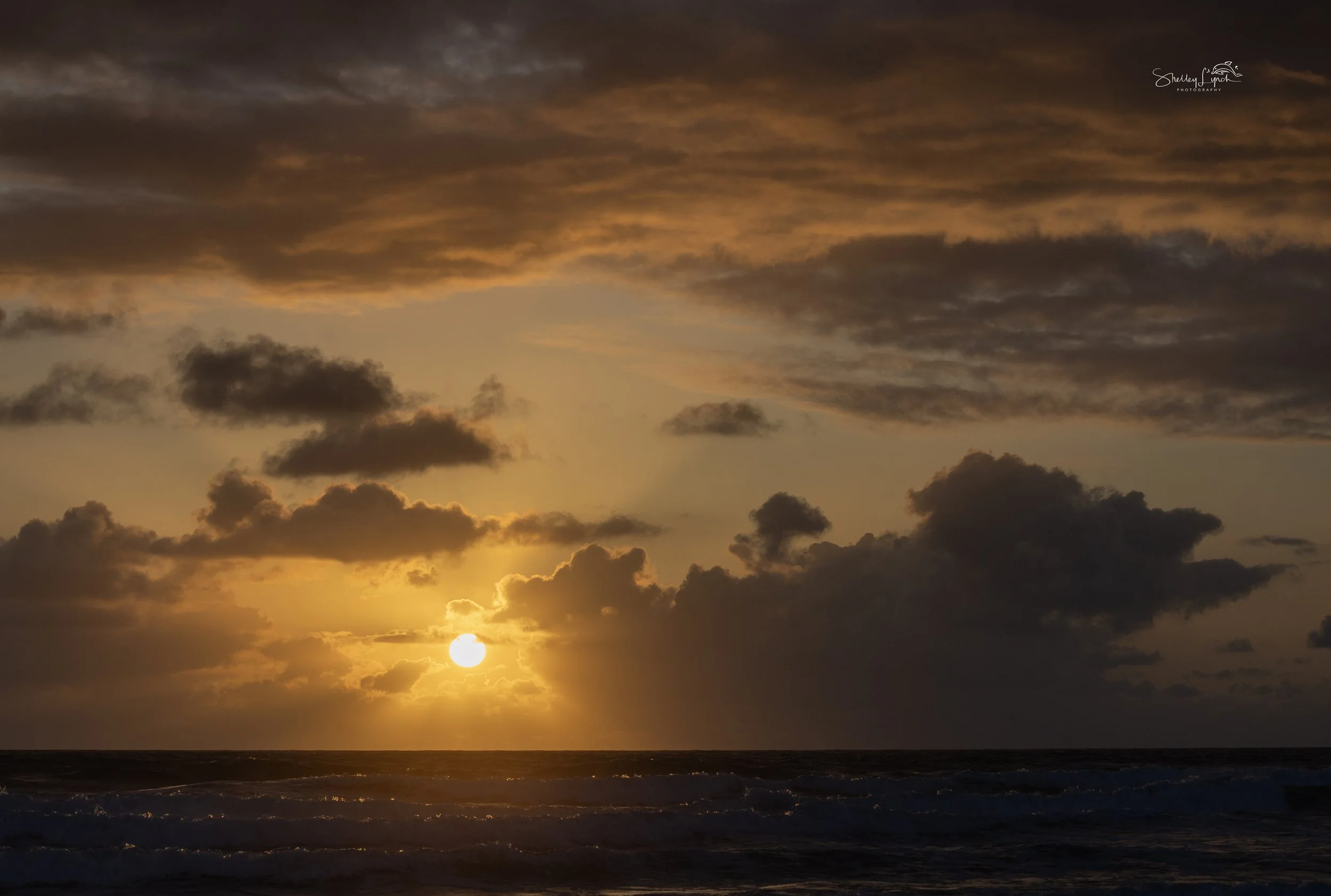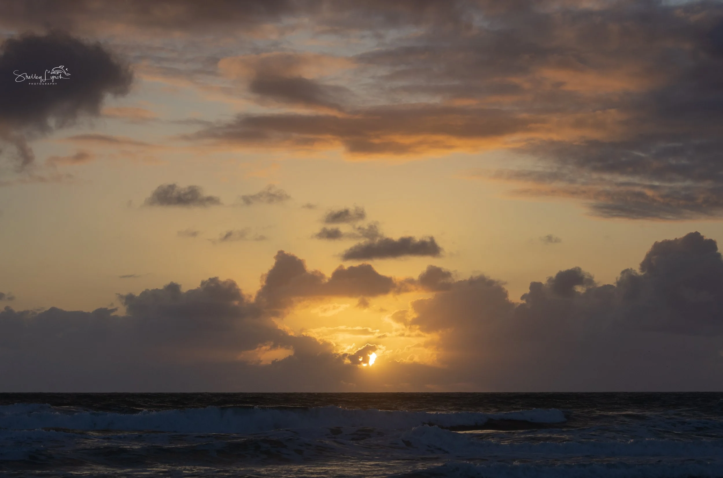Clouds gathered along the horizon, wrapping themselves around the rising sun as it made its way into the day.