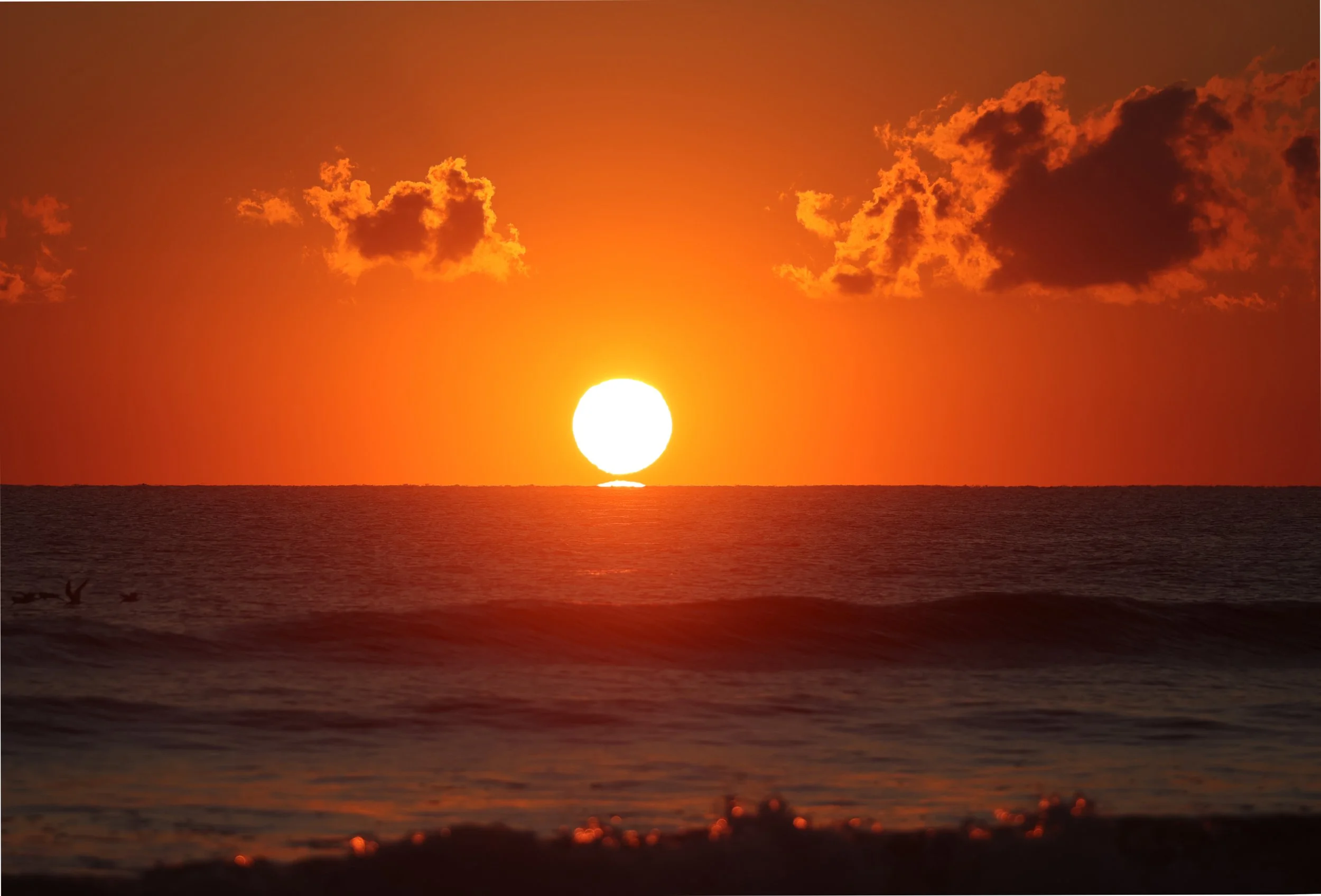 An orange glow filled the sky as I walked to the beach. A refreshing breeze and calm ocean added to the beauty of the morning.