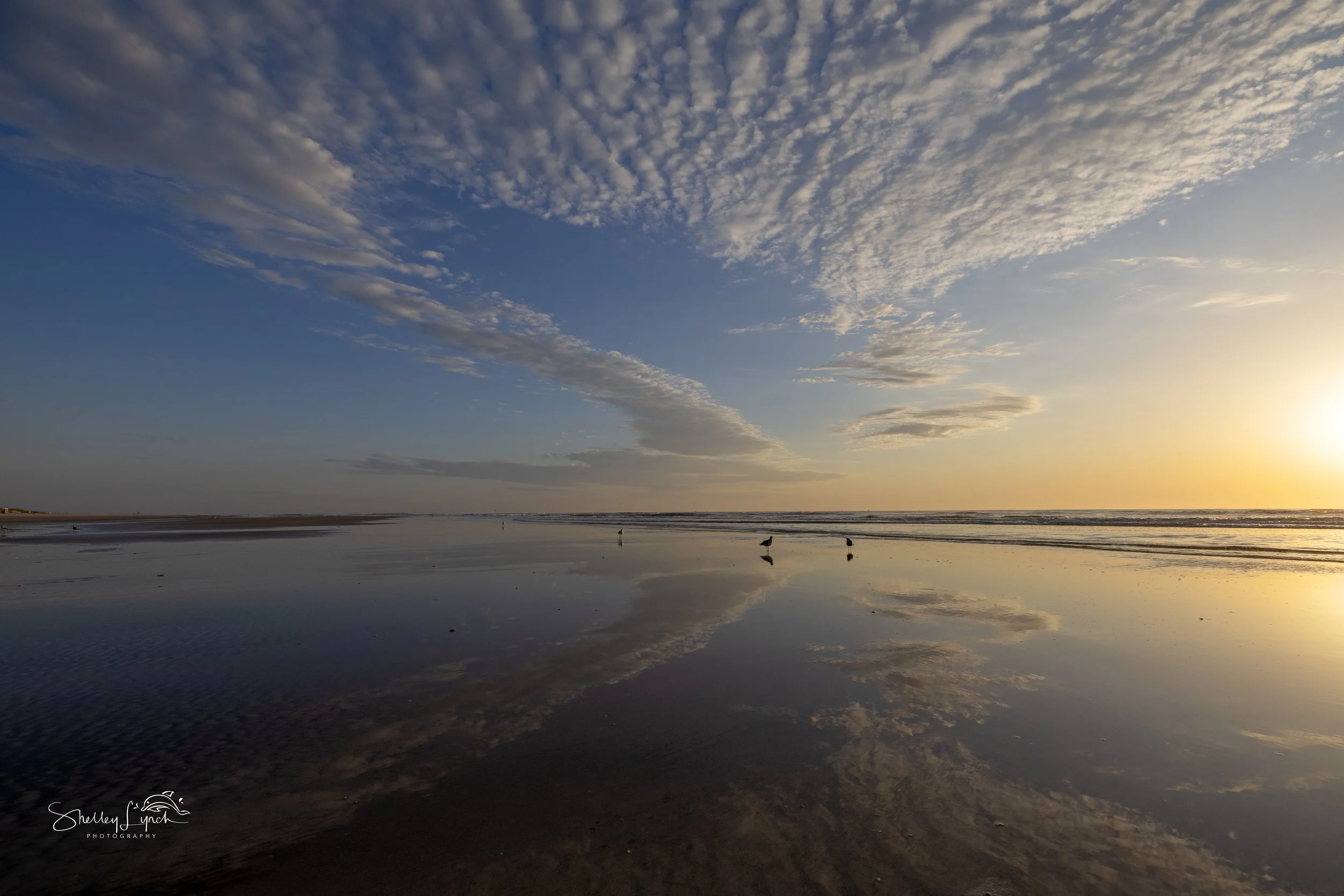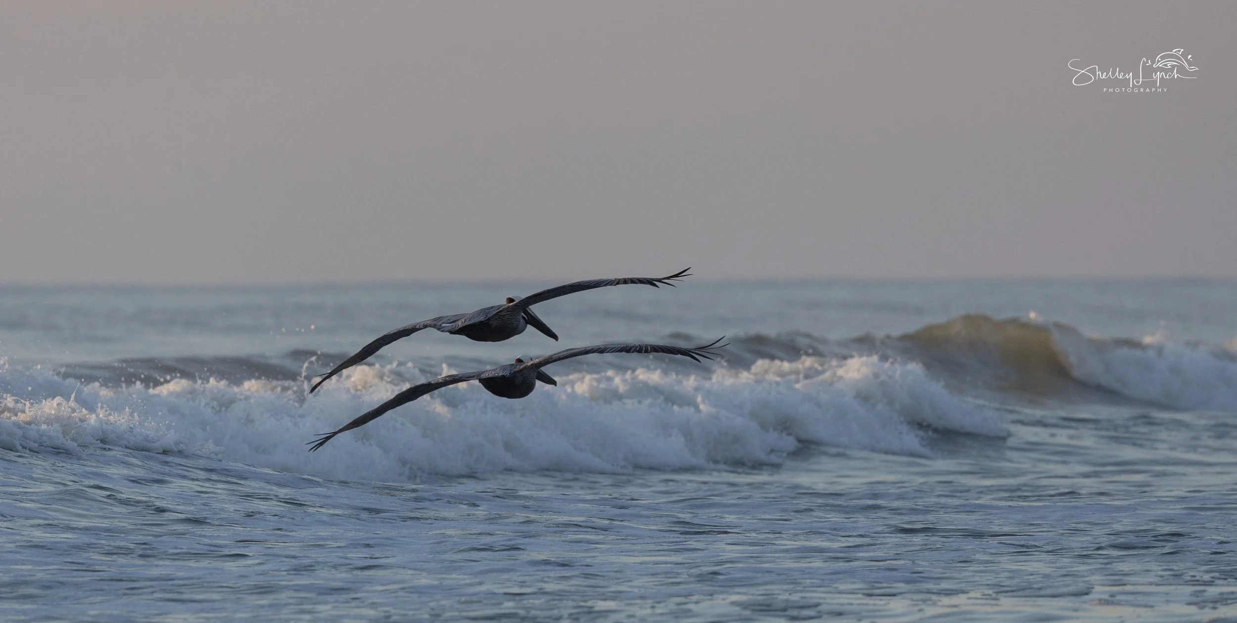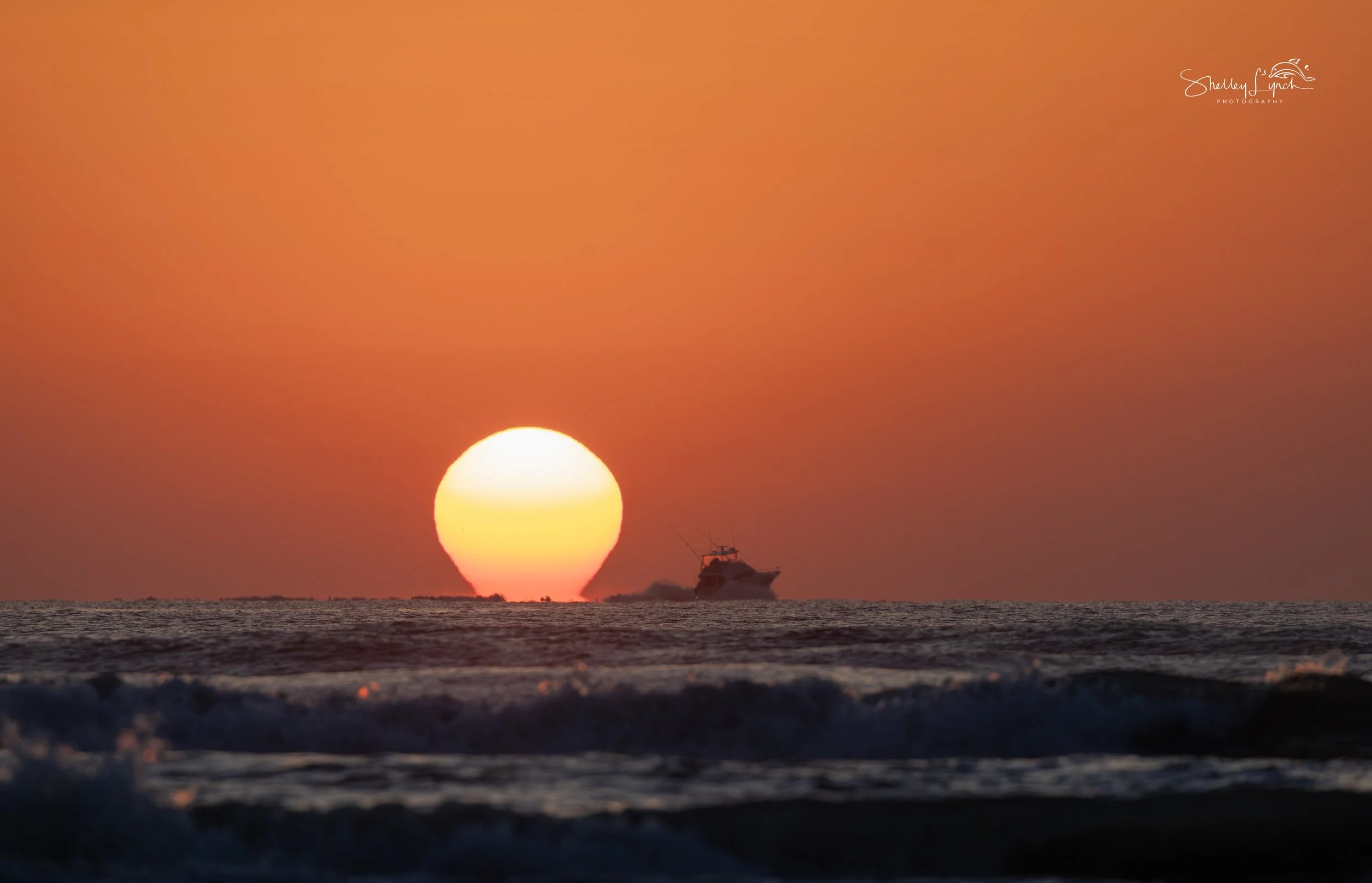As the sun rose, it looked like a colorful hot air balloon lifting into the sky, filling the world with golden orange glow. Pelican Highway joined the surfers using the waves to travel down the beach.