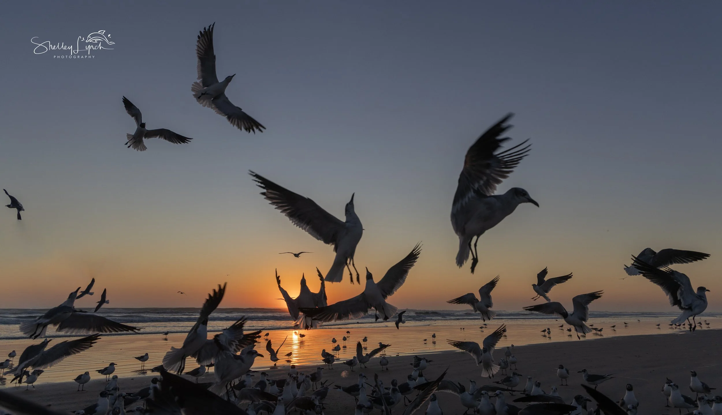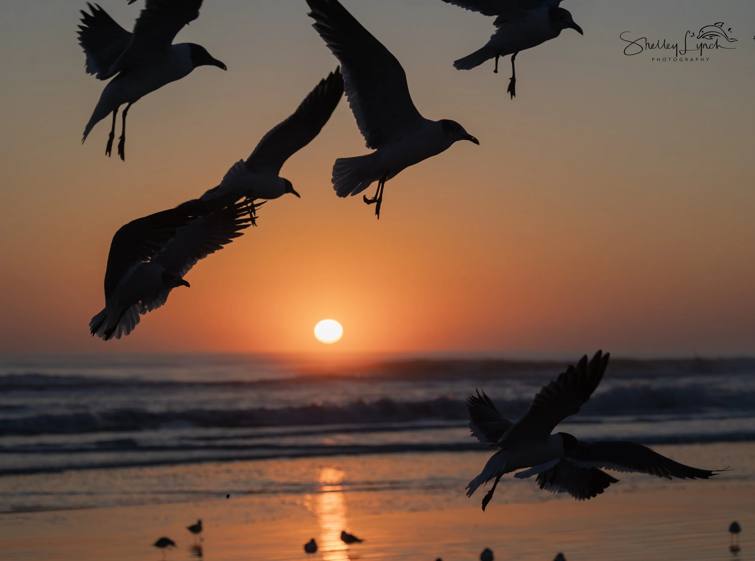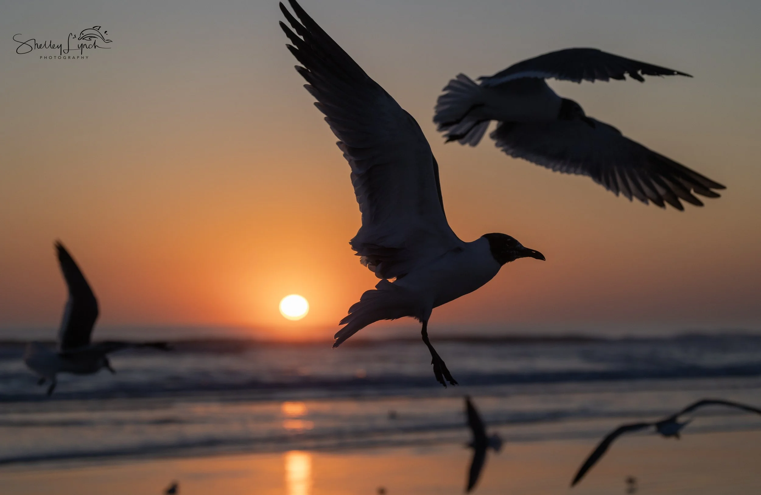 So many birds are in town, soaking up the Sunshine State glow. Peg and hook, two laughing gulls hung in place over the sun showing off their uniqueness. Pelicans gliding effortlessly over the waves remind us what happens when we surrender to the flow.