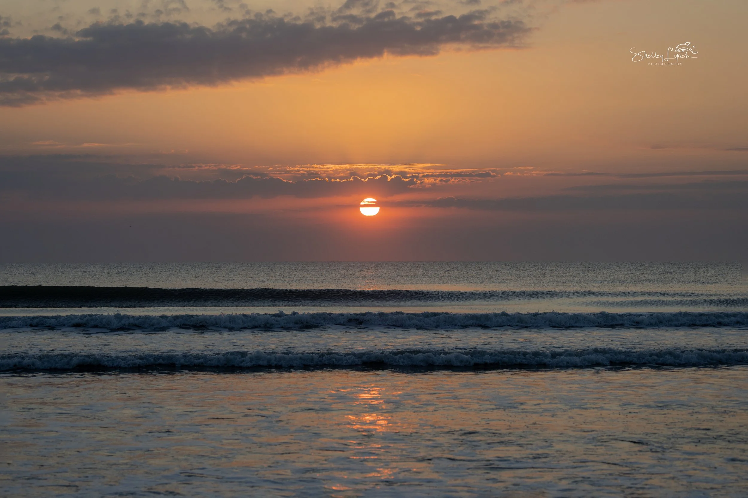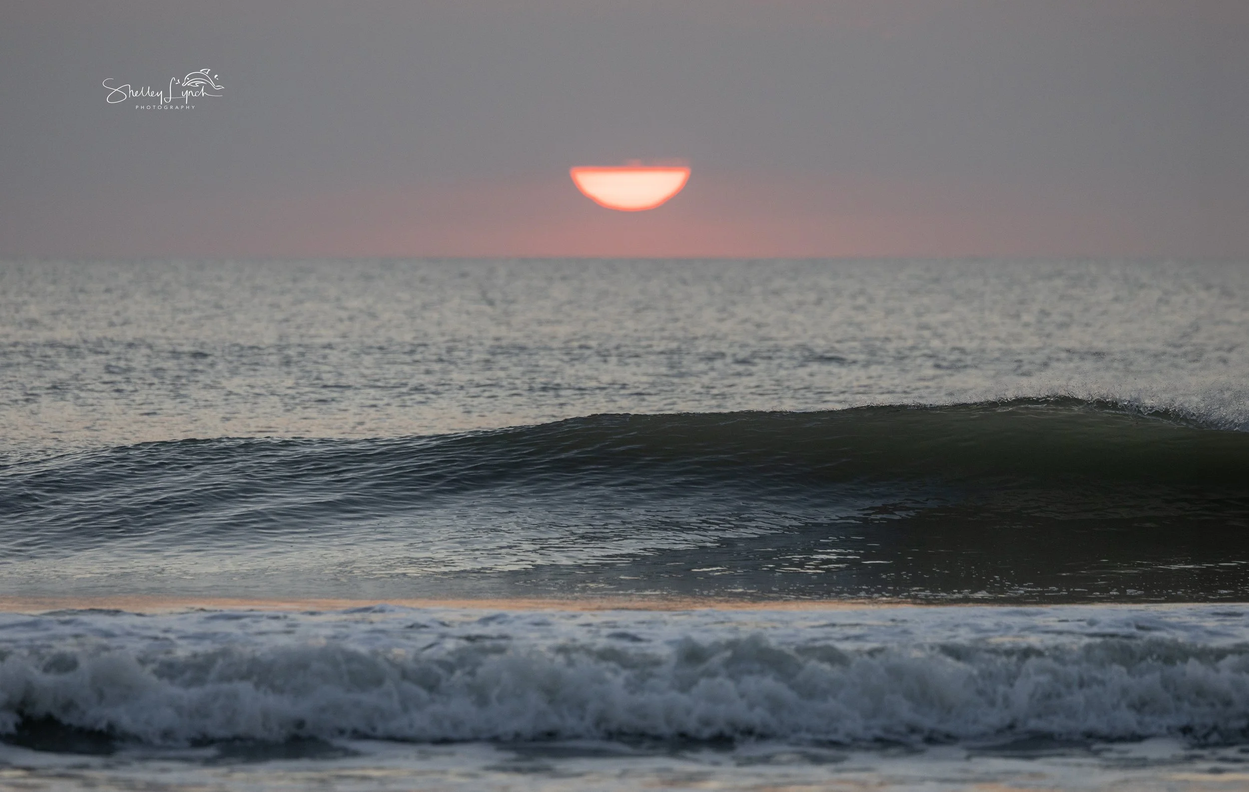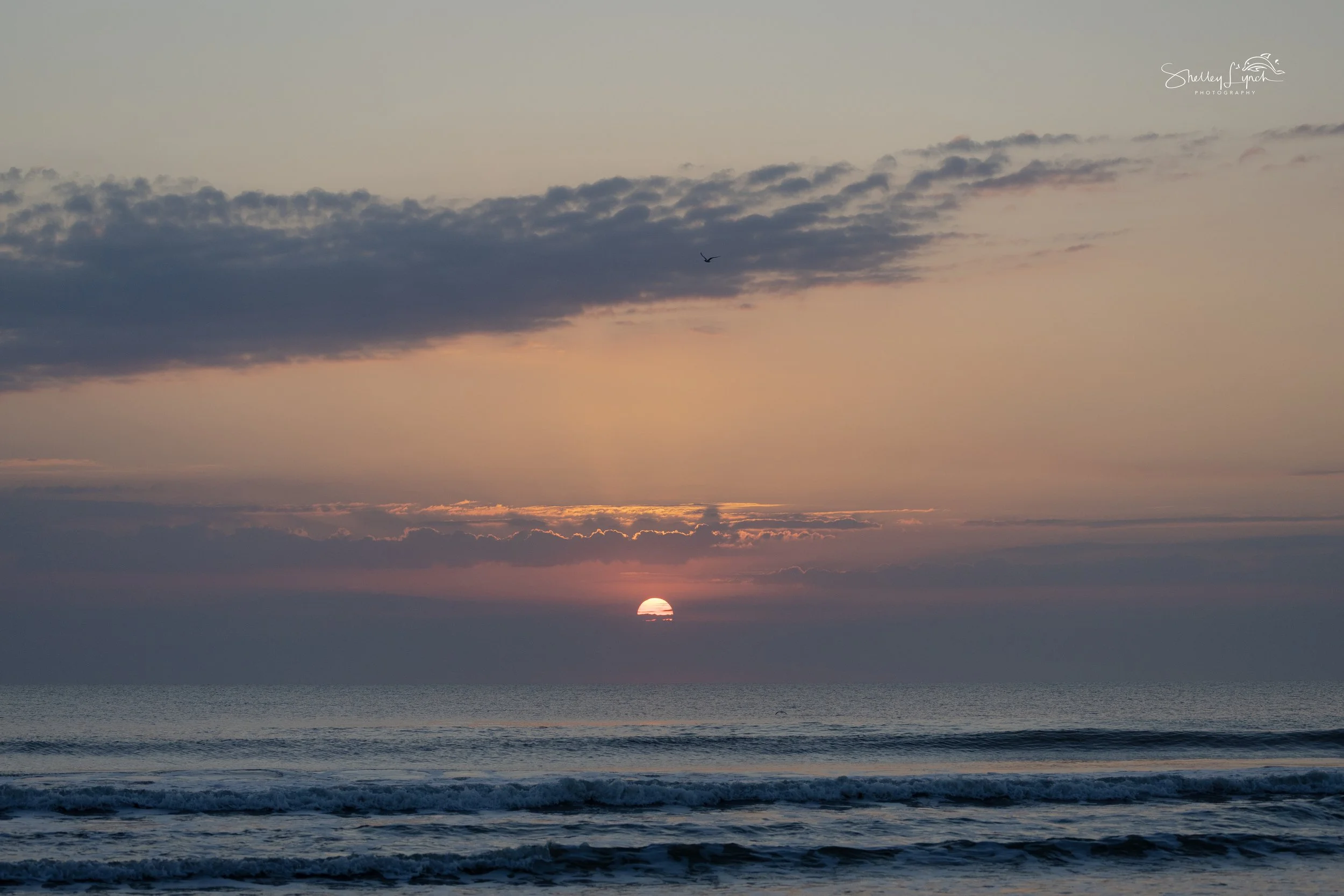 Before the sun rose, a few dolphins moved quietly southbound in the distance, while the flock arrived with the zoomies — darting off and circling back in playful bursts of energy.
