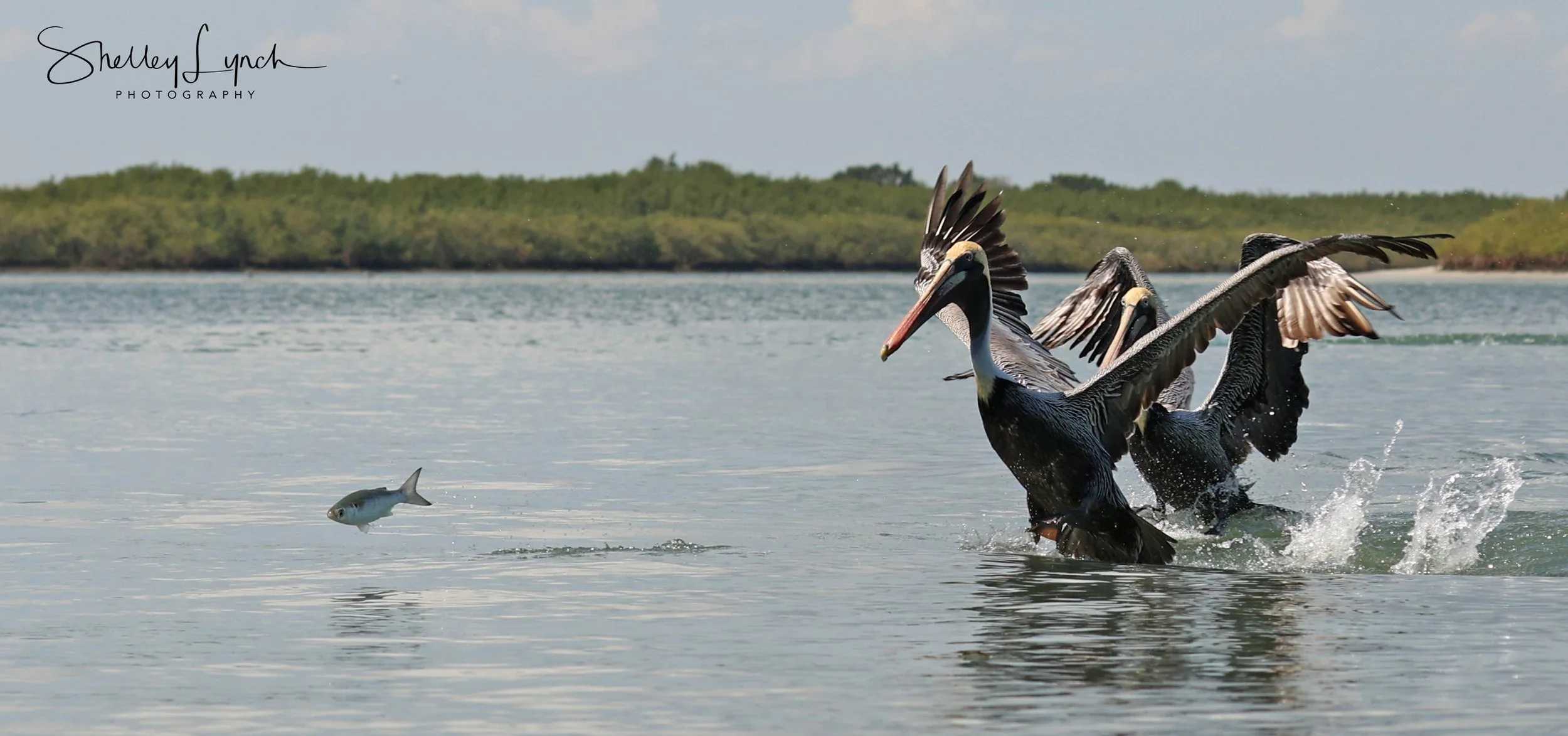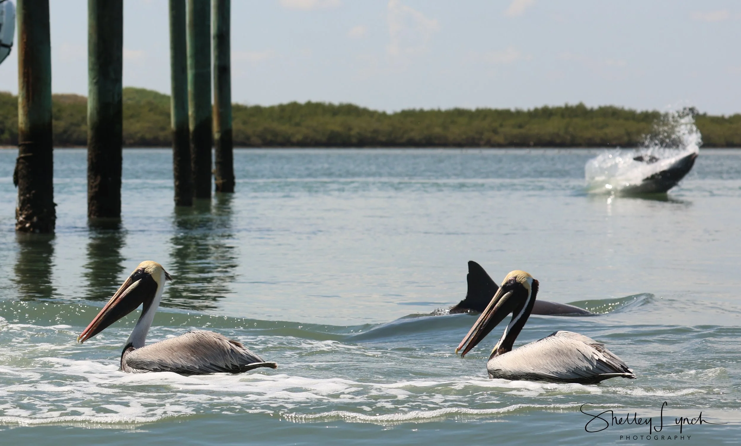 Momma jade grabbing a snack and swamping a pelican in her wake
