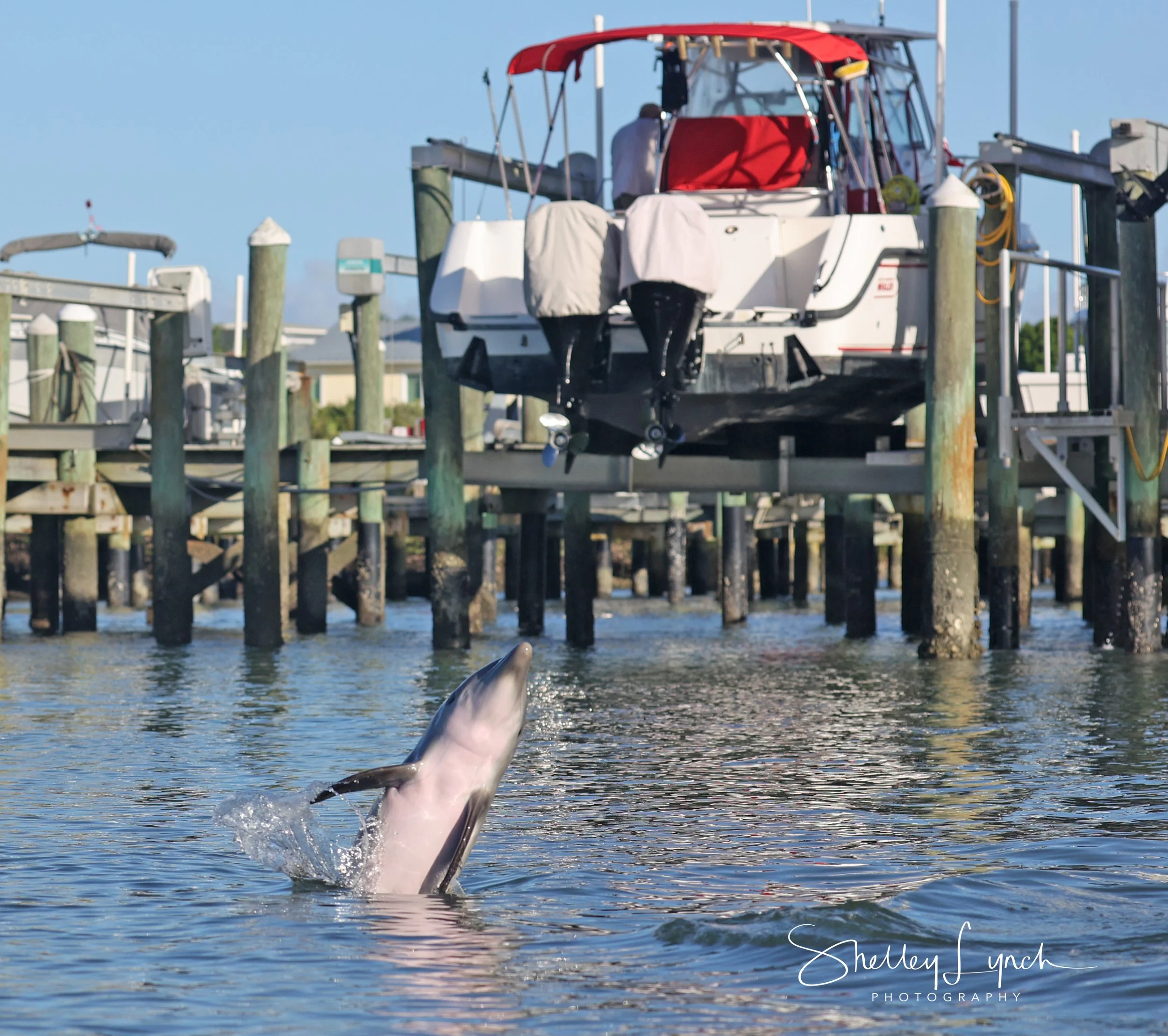 I have had the great honor of hanging out with this baby dolphin and momma all week. A couple days it was just two adults with this baby, while on another day they were joined by a large maternity pod with several moms and their calves came in to play.