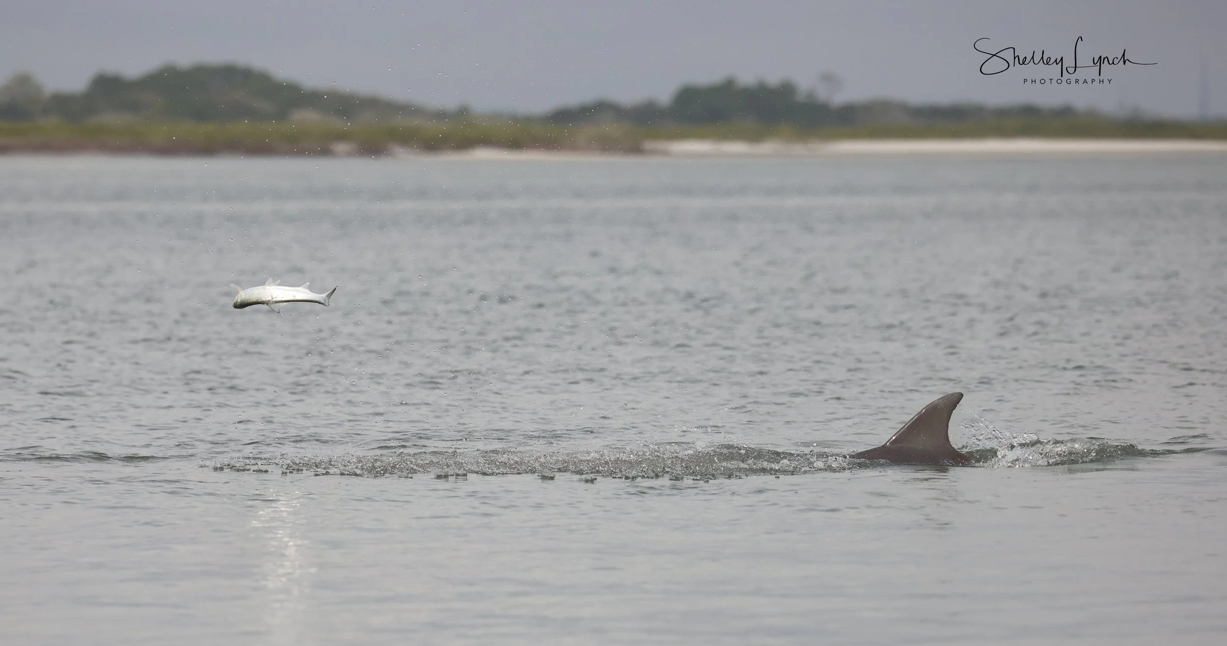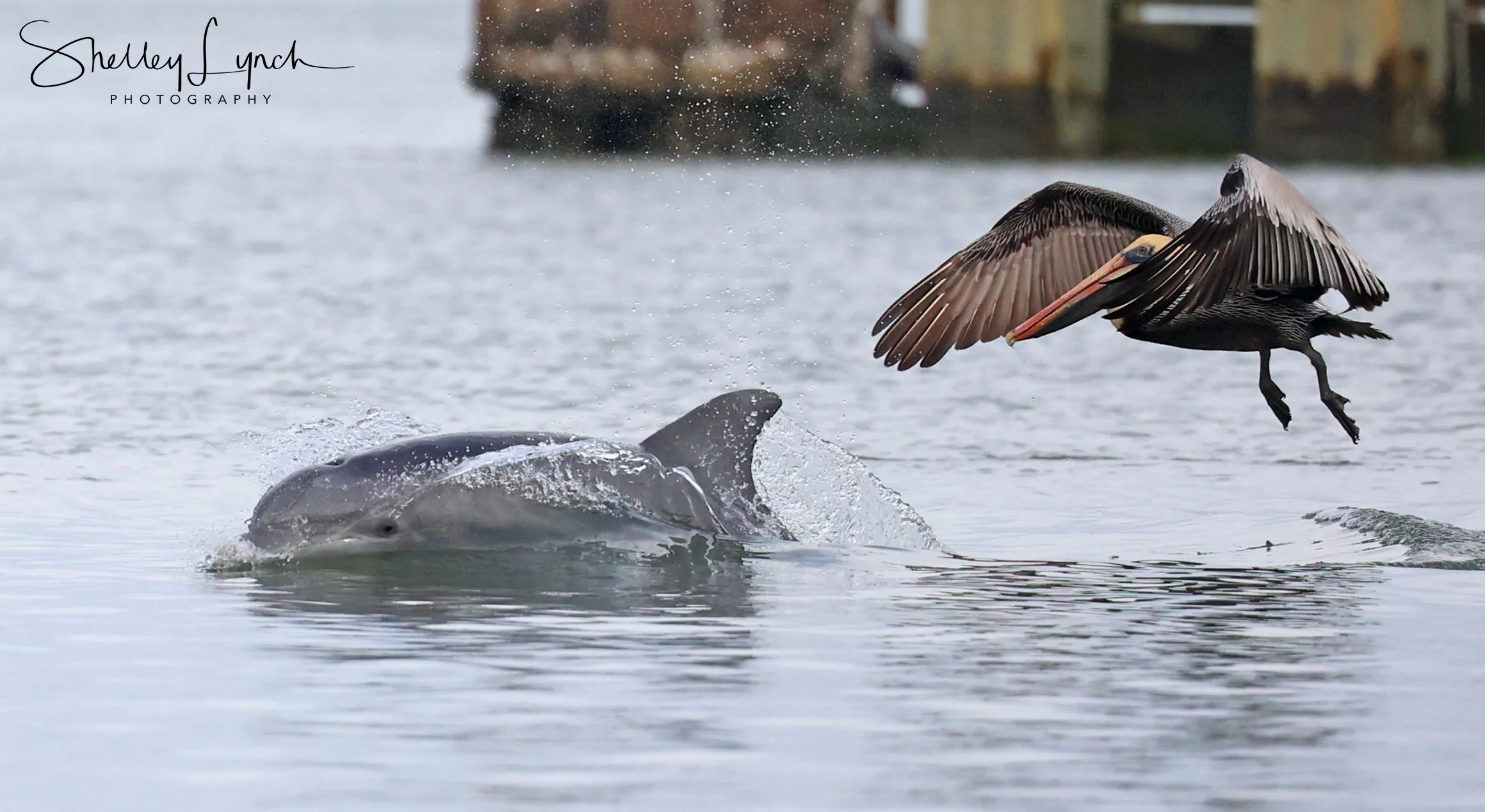 After sunrise a pod of dolphins and 4 pelicans came to grab snacks. The dolphin were in a very playful mood and happy to interact with the pelicans. The dolphins usually grab a fish then hang out and rest for a few minutes before going again.