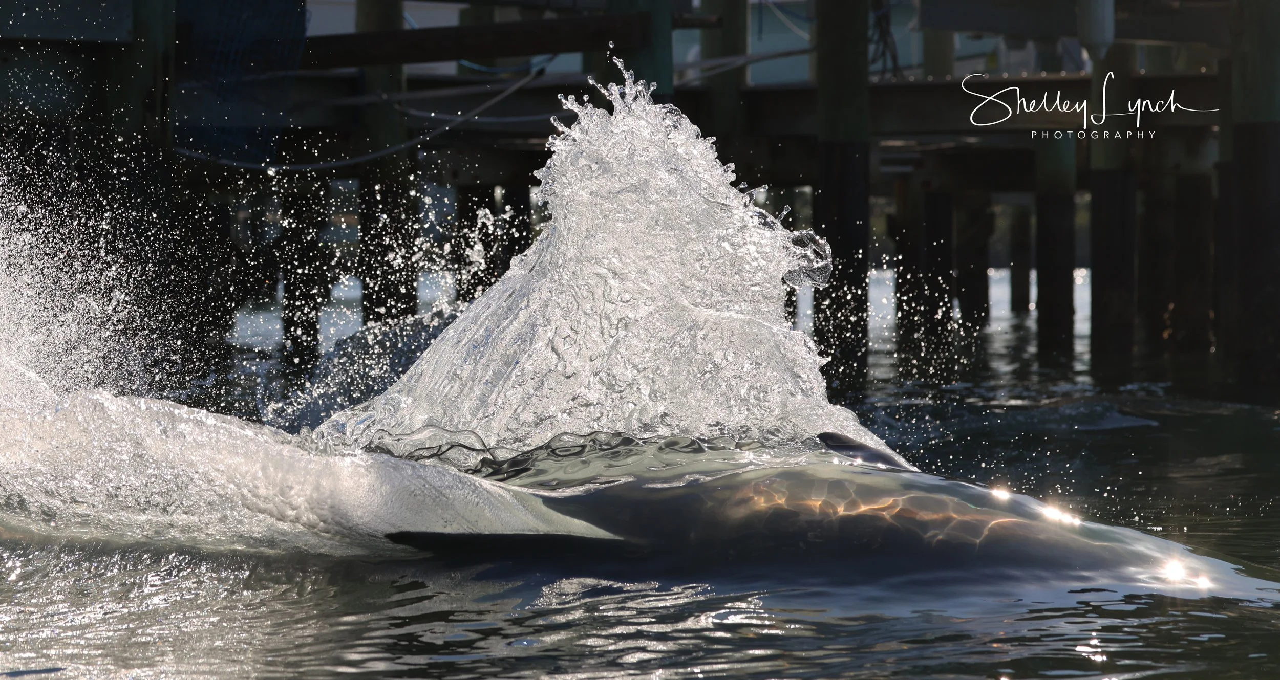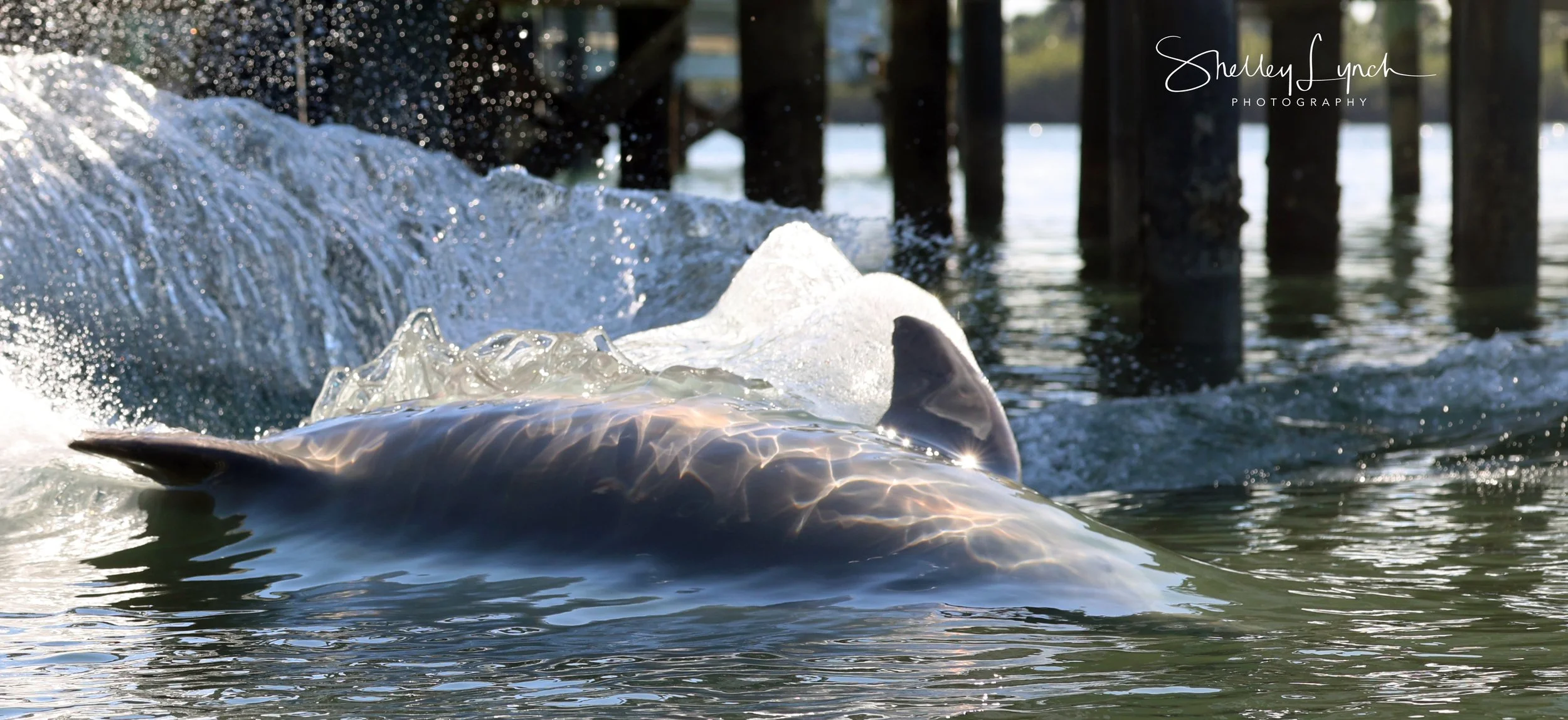 Since then, we have spent many hours together. Many of the dolphins love speed but he loves to be on top of water skimming at top speeds. He also is a great artist, creating shapes and sculptures with his splash.