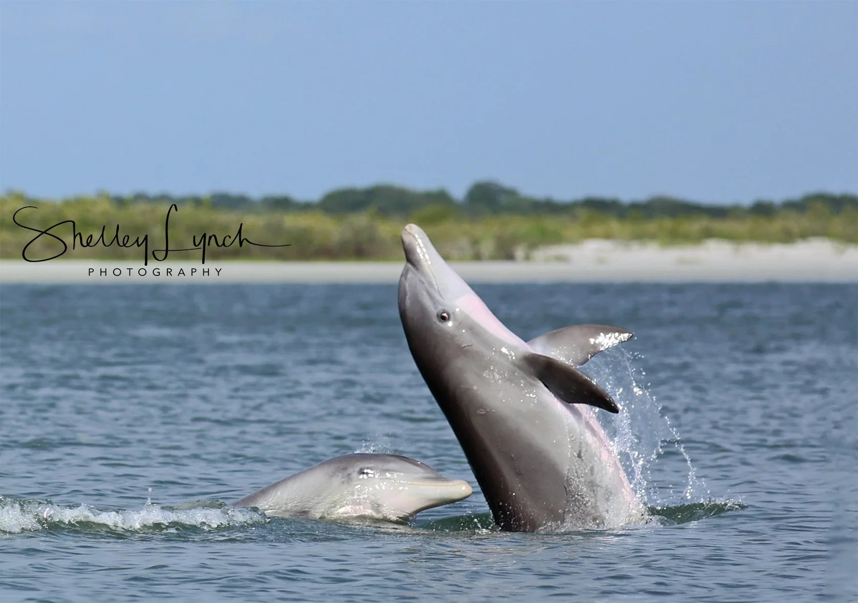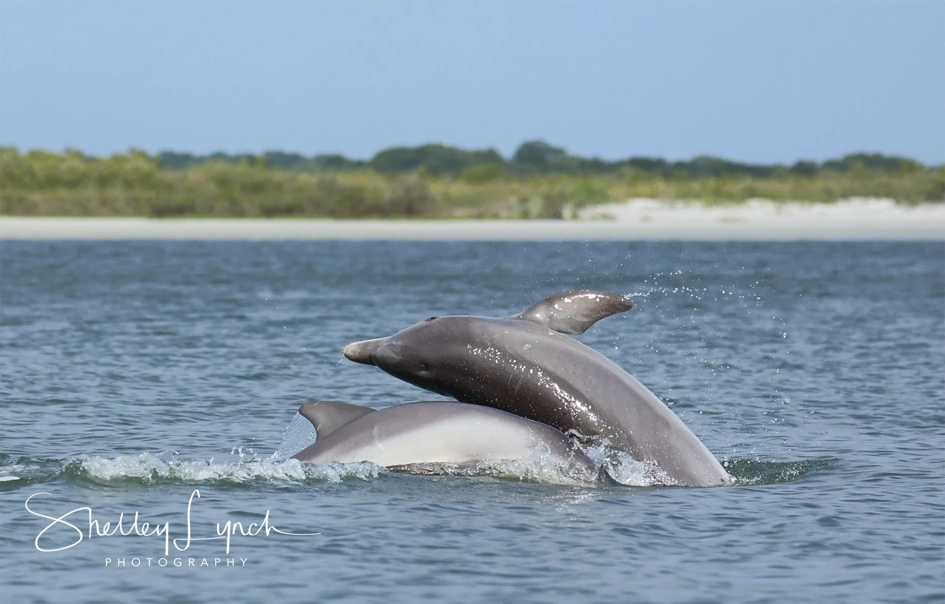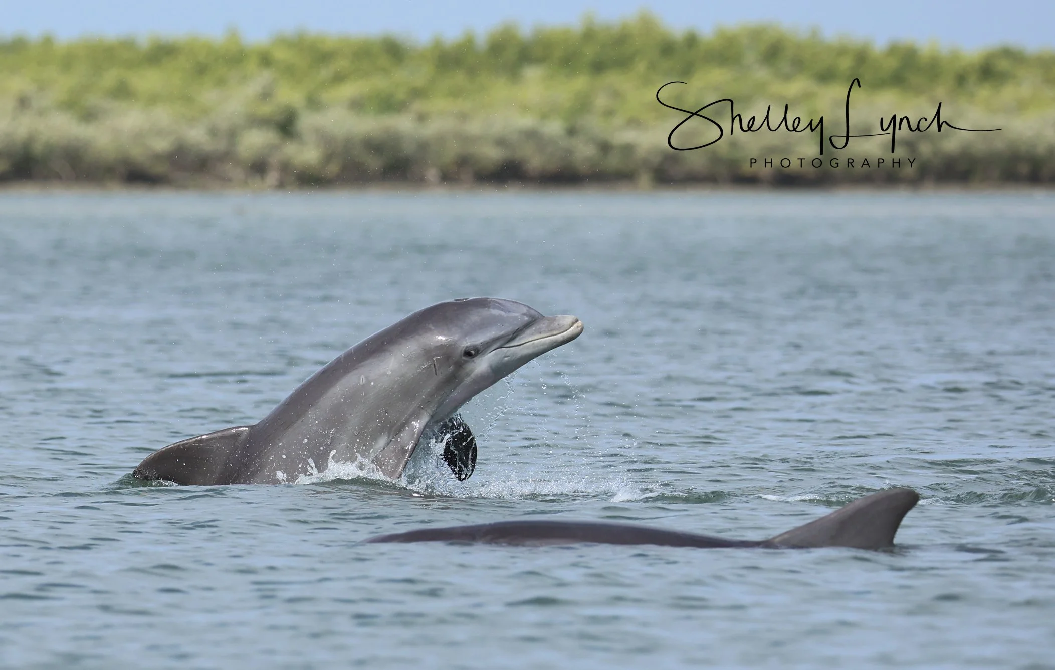 In the first photo, the young dolphin showed us her belly so we know she is a female. Females have openings in the shape of a division sign and males have an exclamation sign.