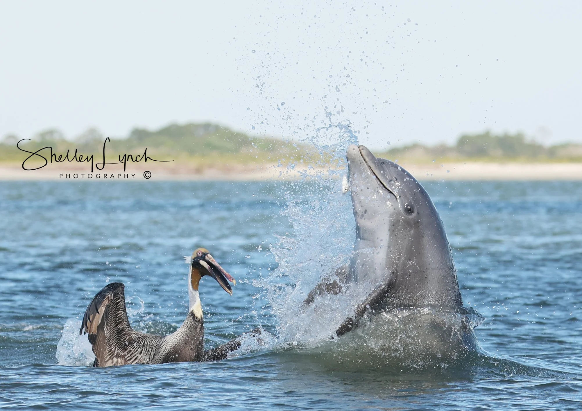 Yesterday the dolphin was well aware of his pelican friend and appeared patient and kind, like old friends grabbing breakfast together.
