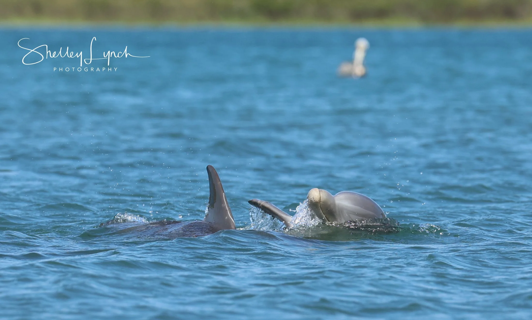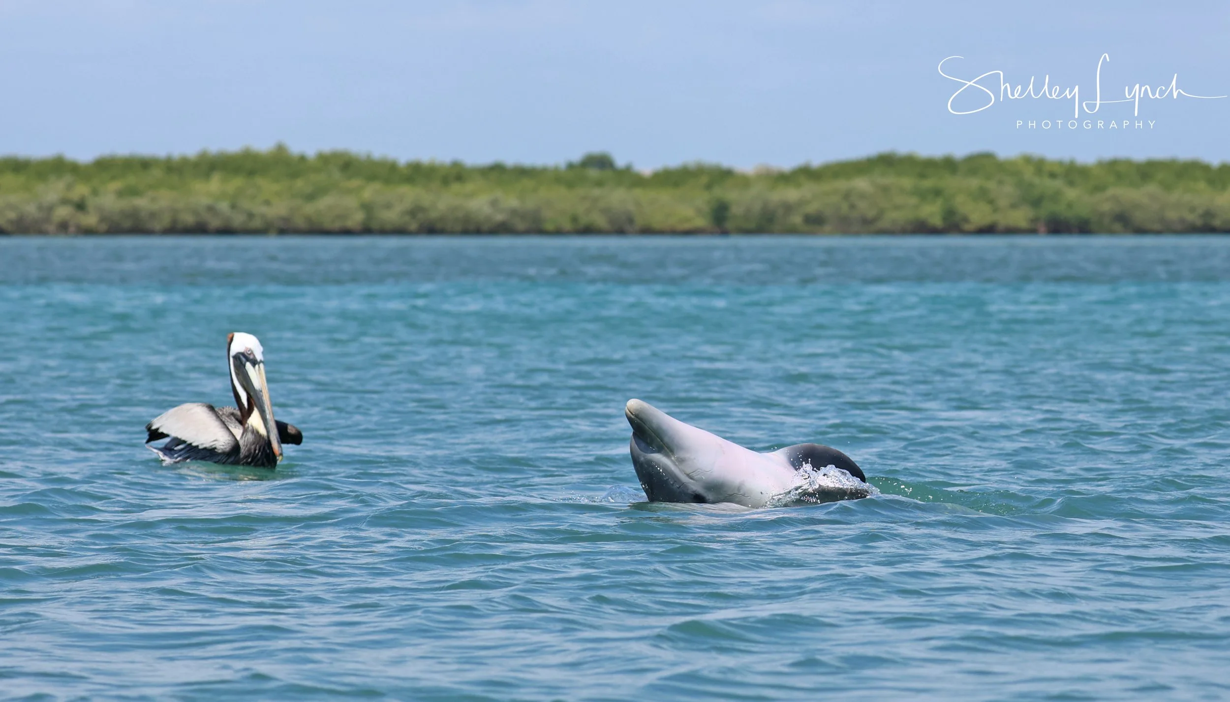 One of the things I enjoy the most is watching the dolphins relax with each other and the pelicans. Not only is the chill vibe is contagious, it is really fun to watch. They enjoy rolling over, snuggles, relaxing on their backs and sides.