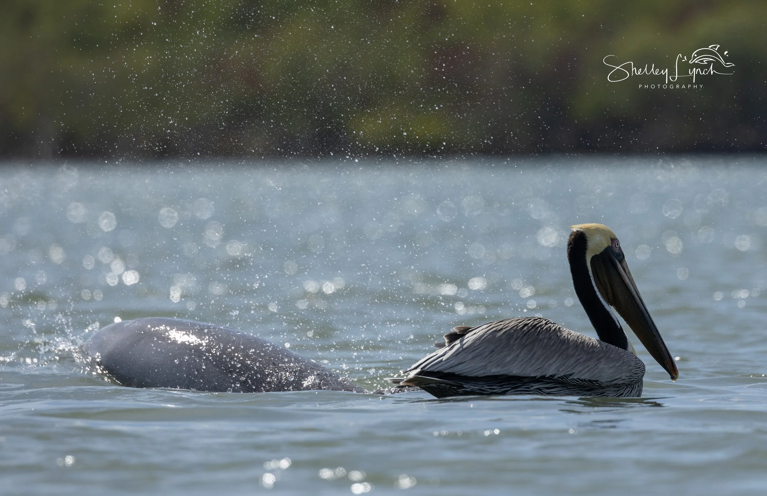 A solo mature pelican hovered in the mix, hanging close in hopes of snagging a snack, proving once again that the lagoon really is a revolving door for wildlife.